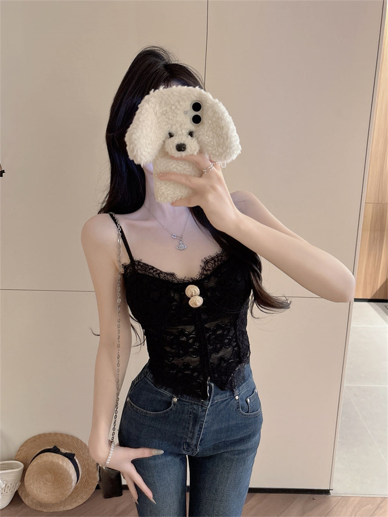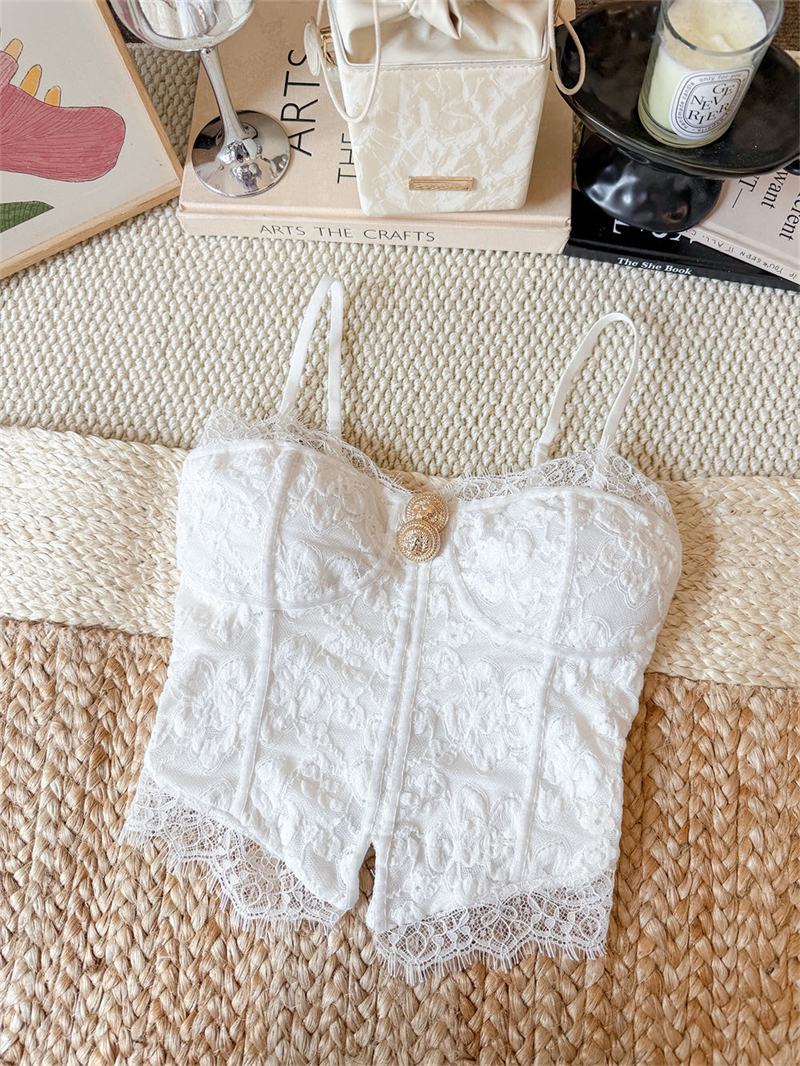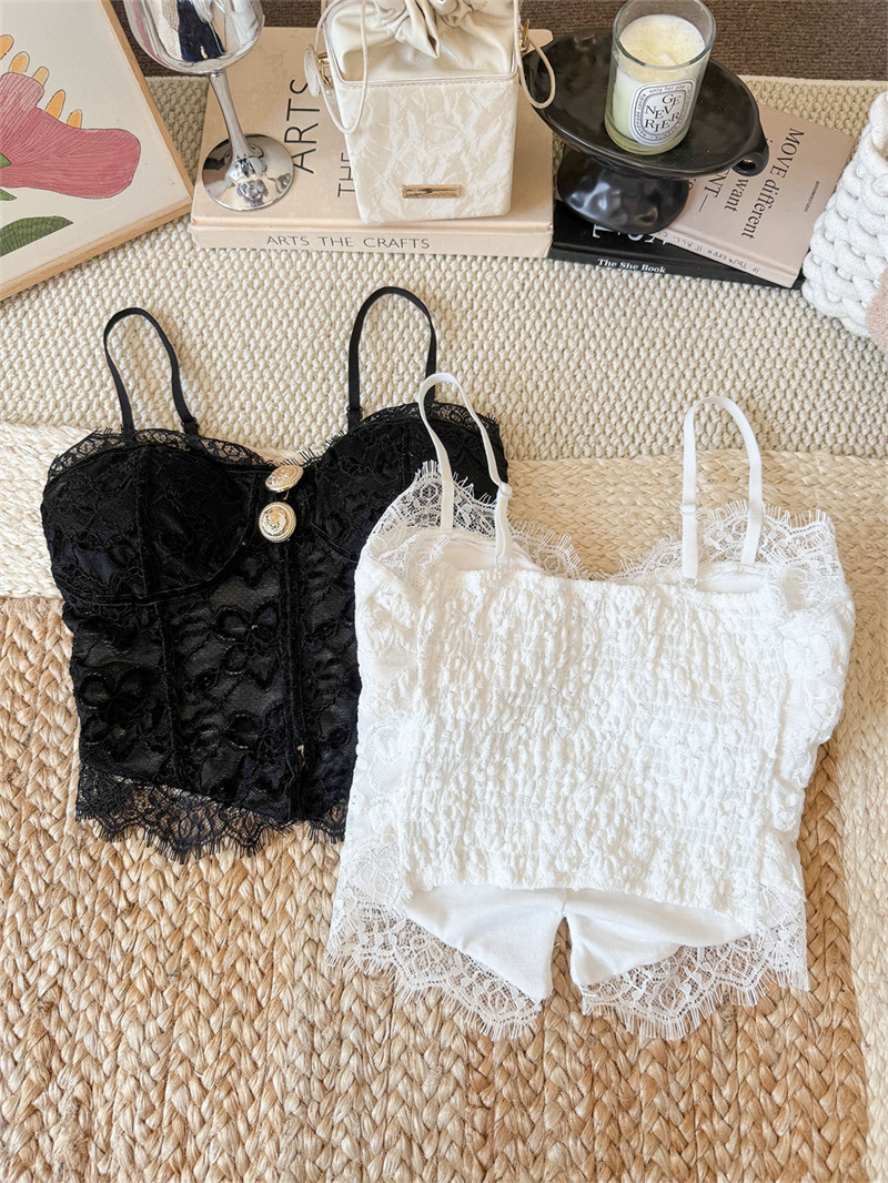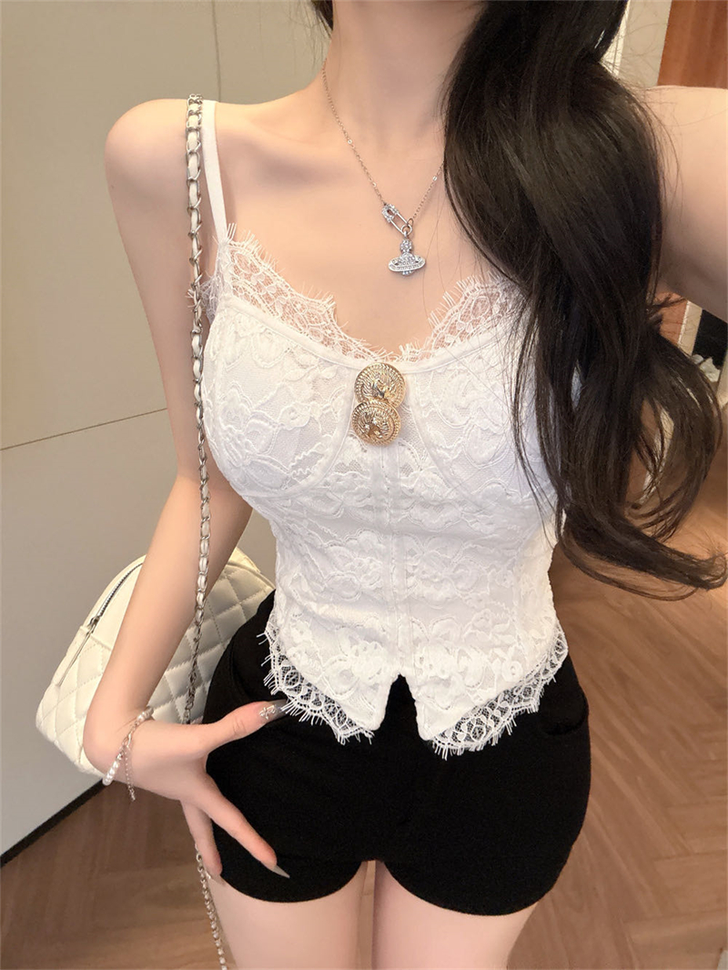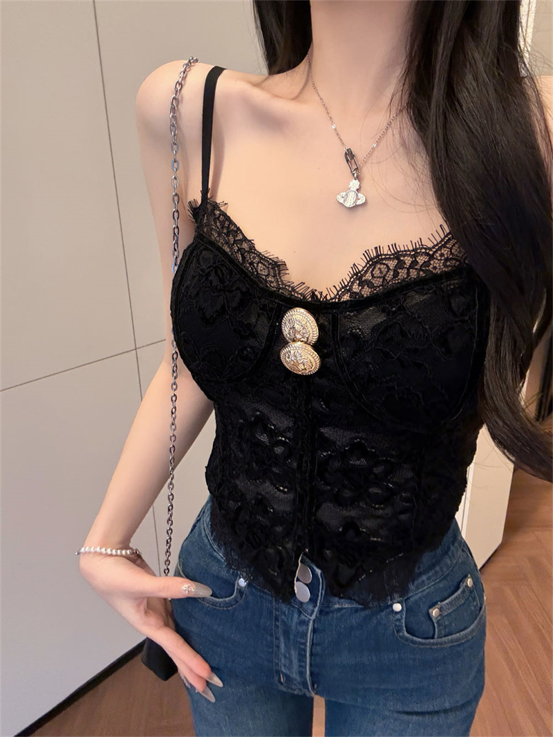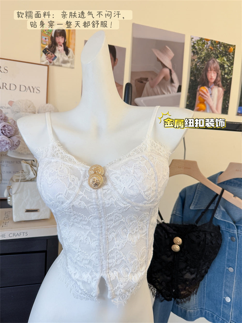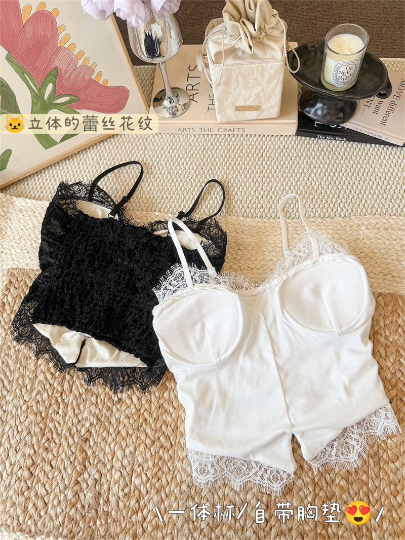 纯欲风蕾丝吊带背心女自带胸垫新款时尚春夏季内搭外穿打底短上衣