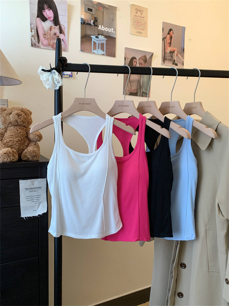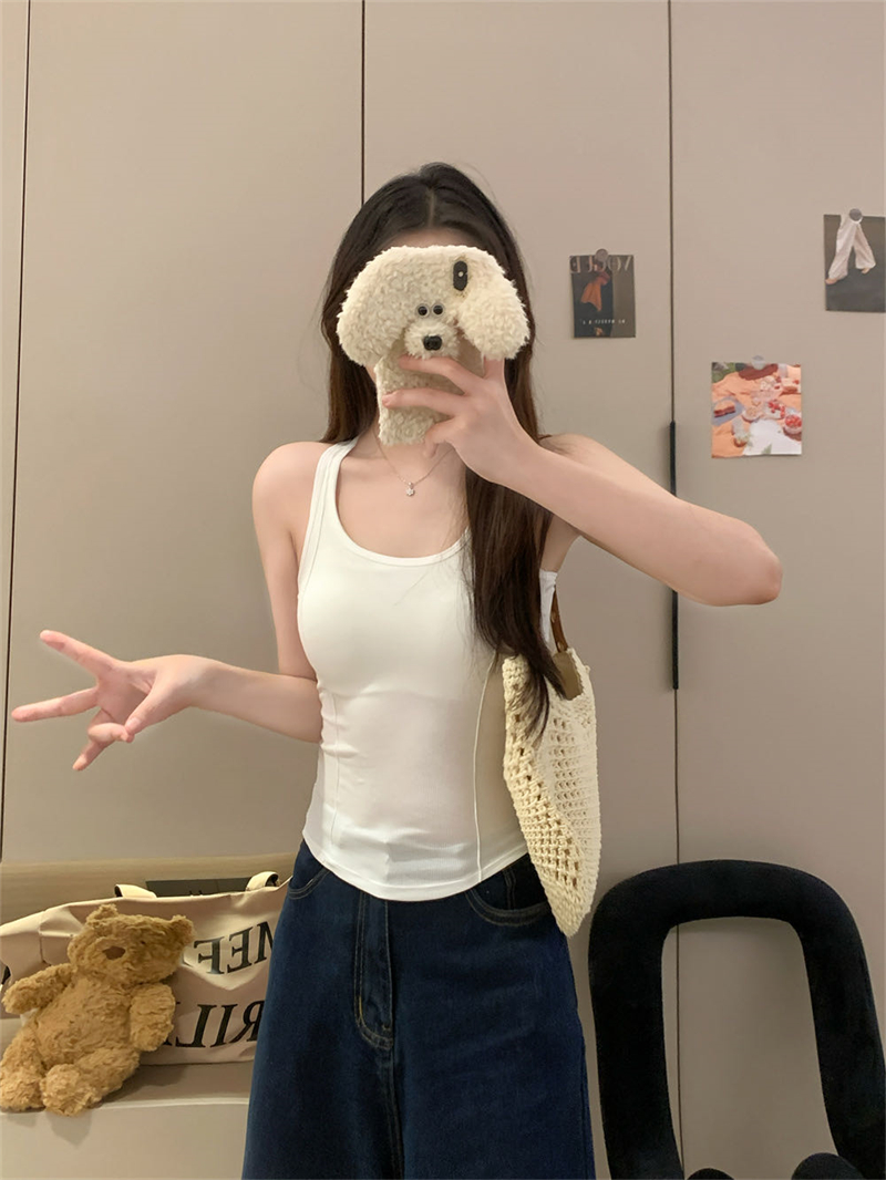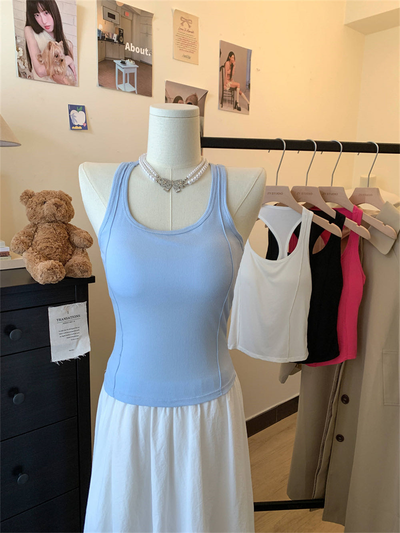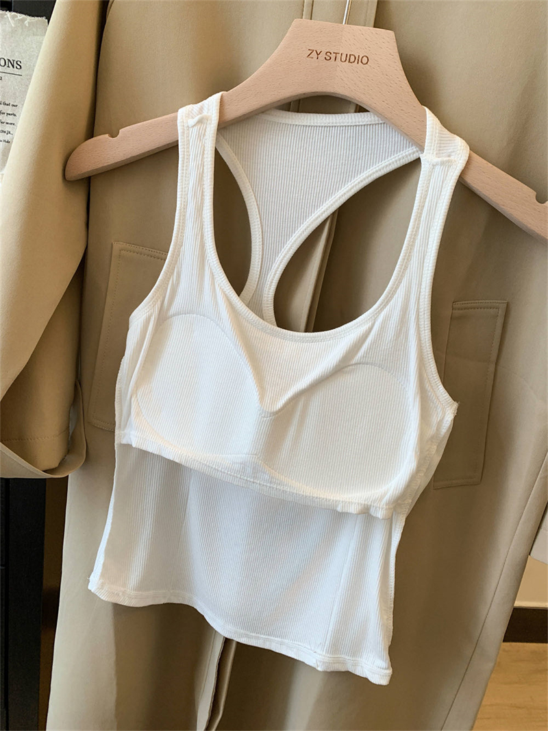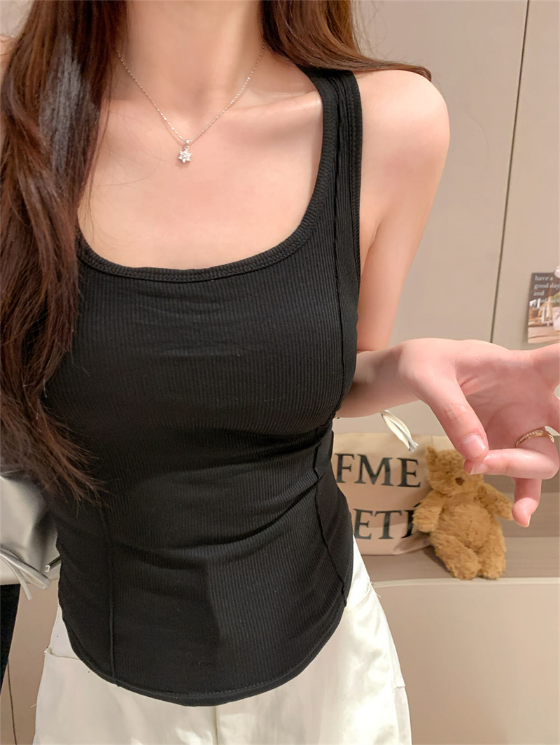 实拍夏季港风修身弹力外穿防走光遮副乳吊带带胸垫背心女内搭上衣