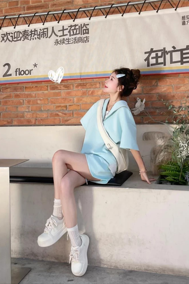 套装原版质量运动服套装女夏学生宽松假两件短袖短裤两件套跑步