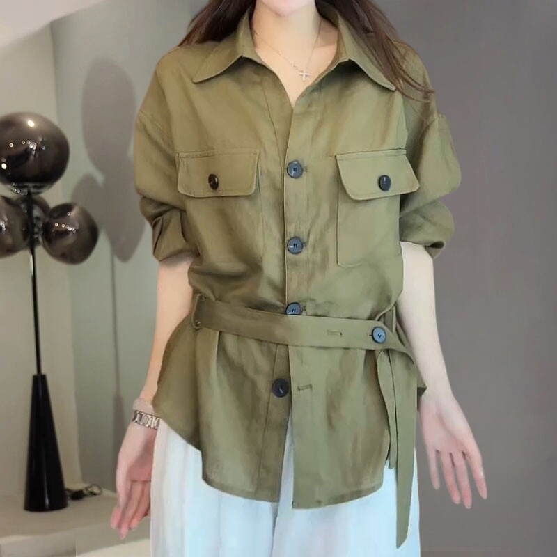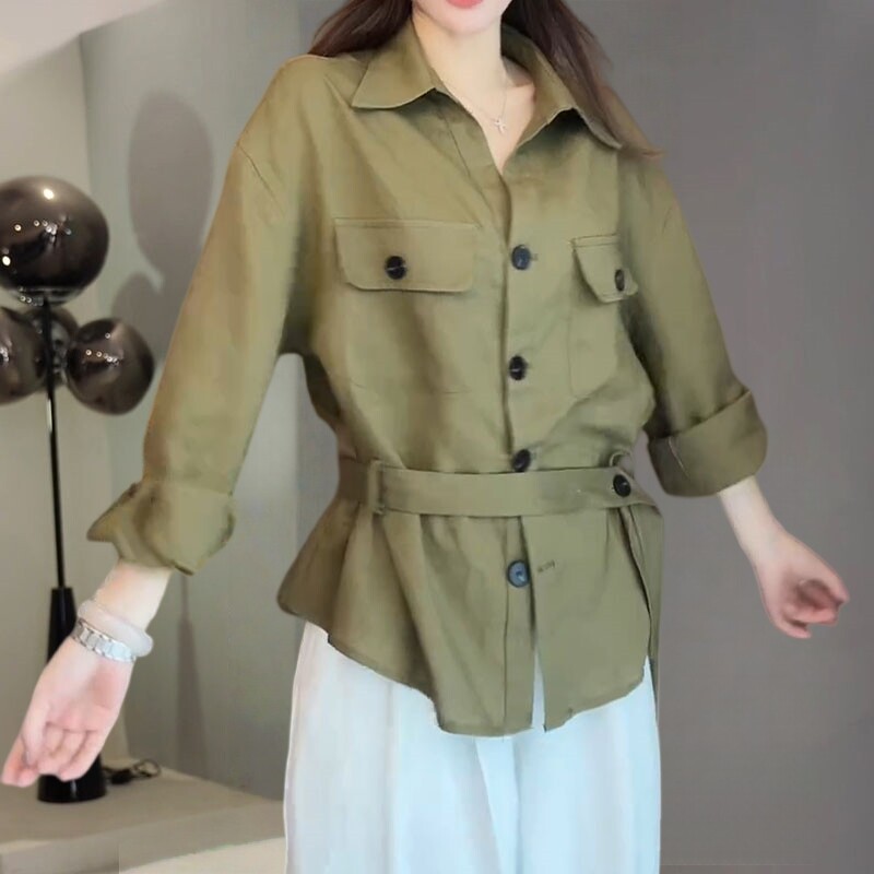 法式气质设计感长袖衬衫女春季收腰系带显瘦工装风通勤百搭上衣