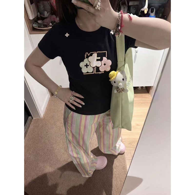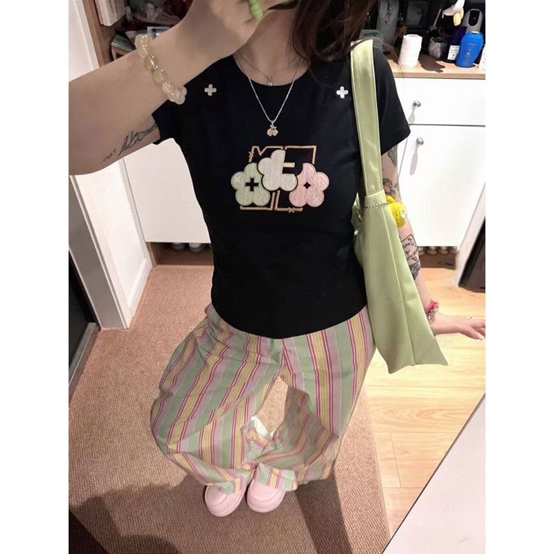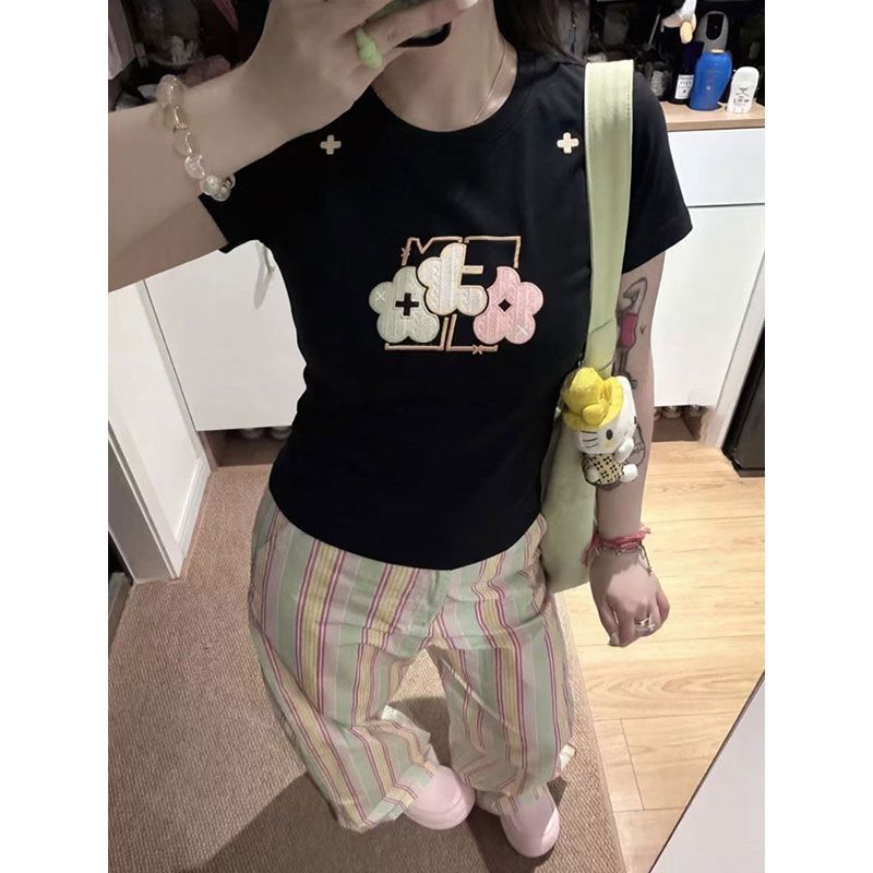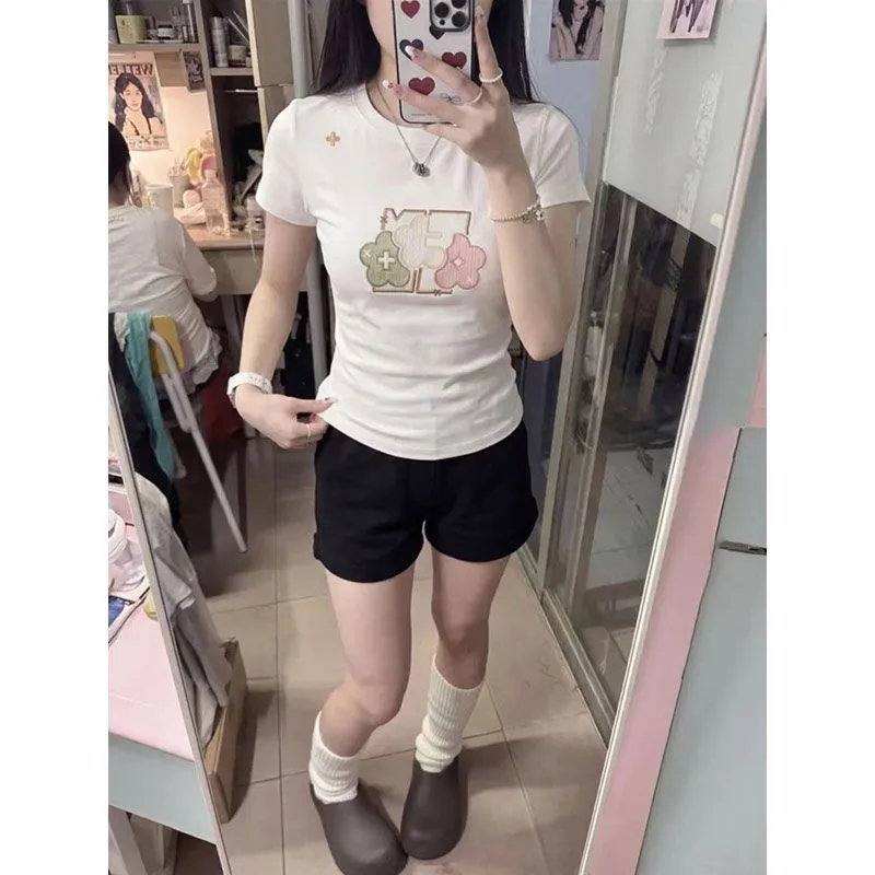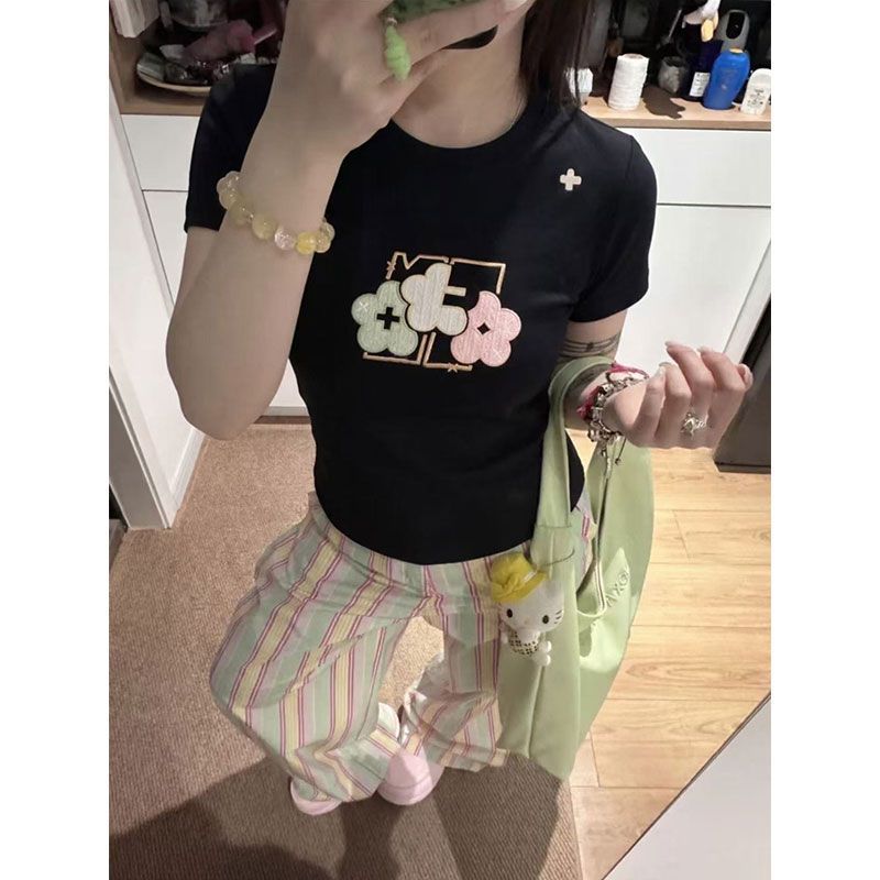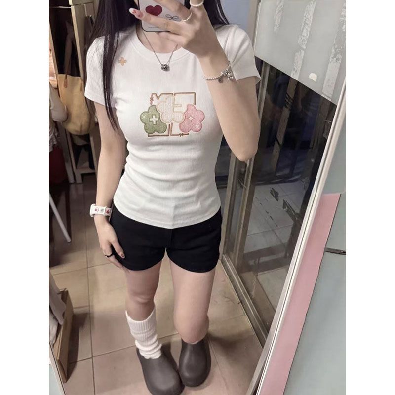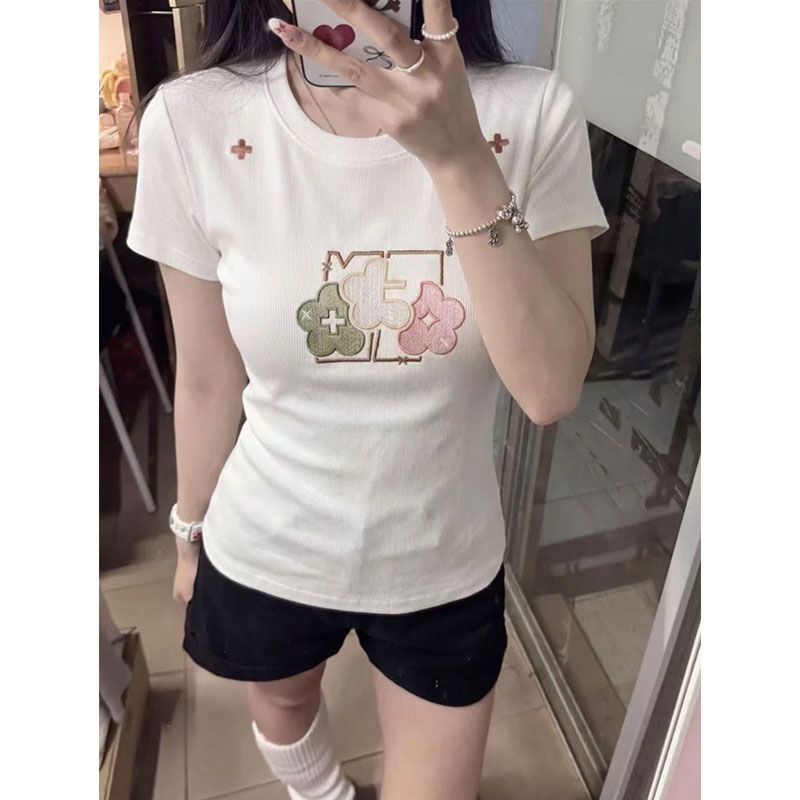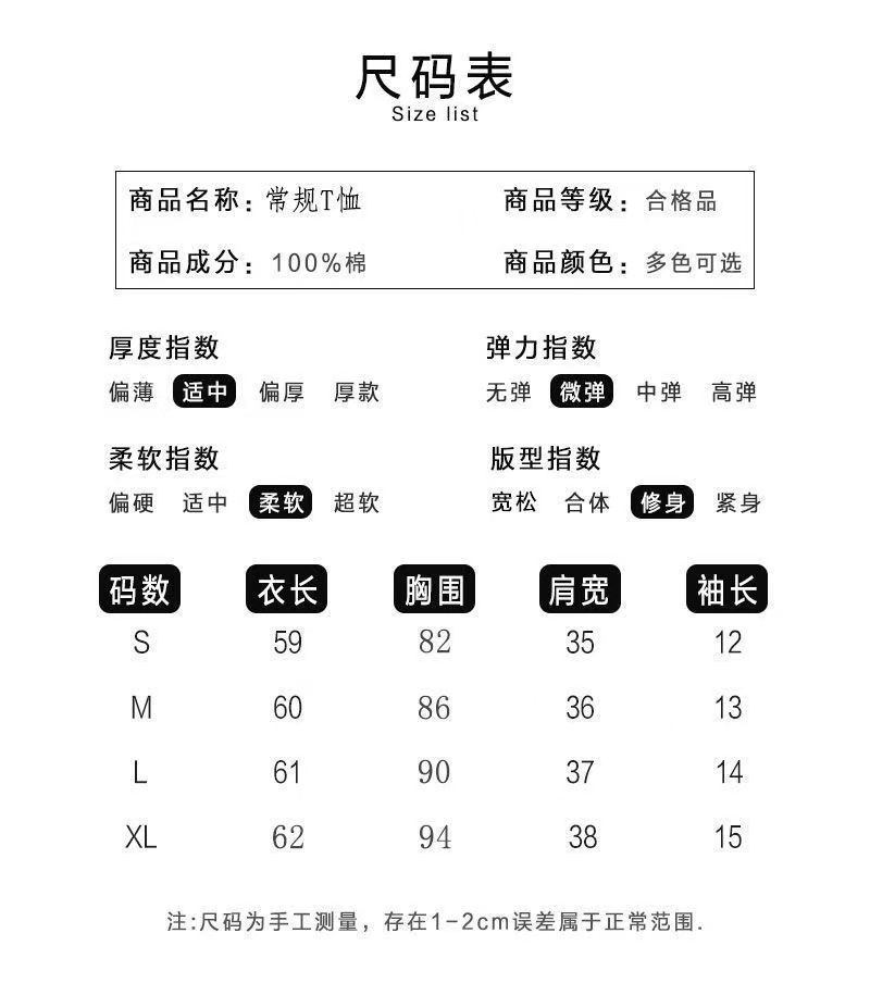 实价 40支220克92棉8氨纶 螺纹领口 +刺绣修身短T恤