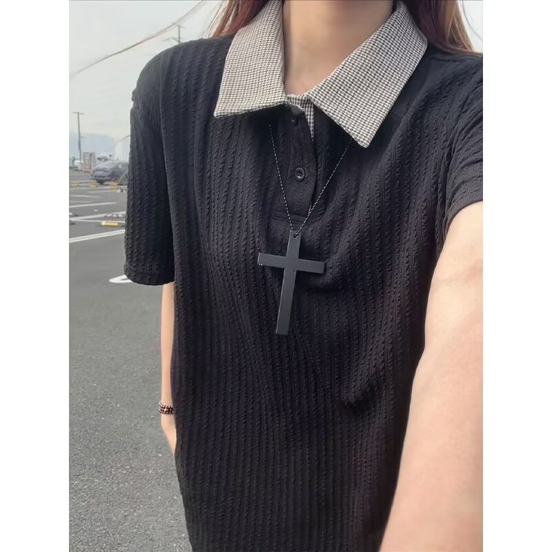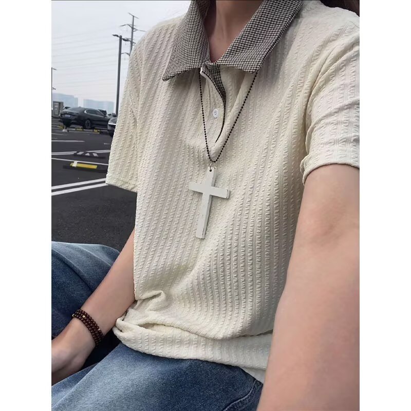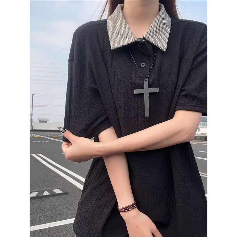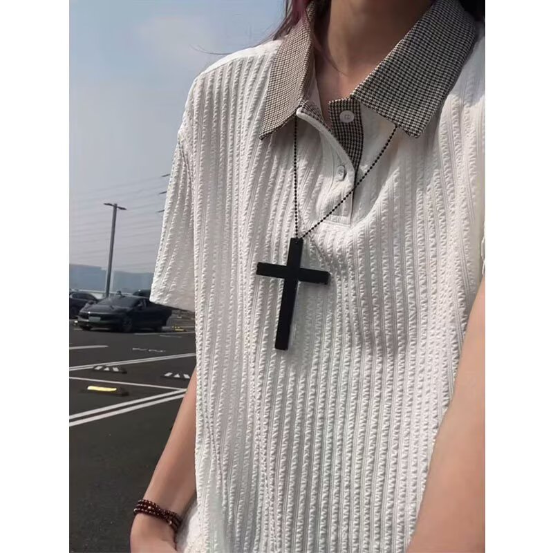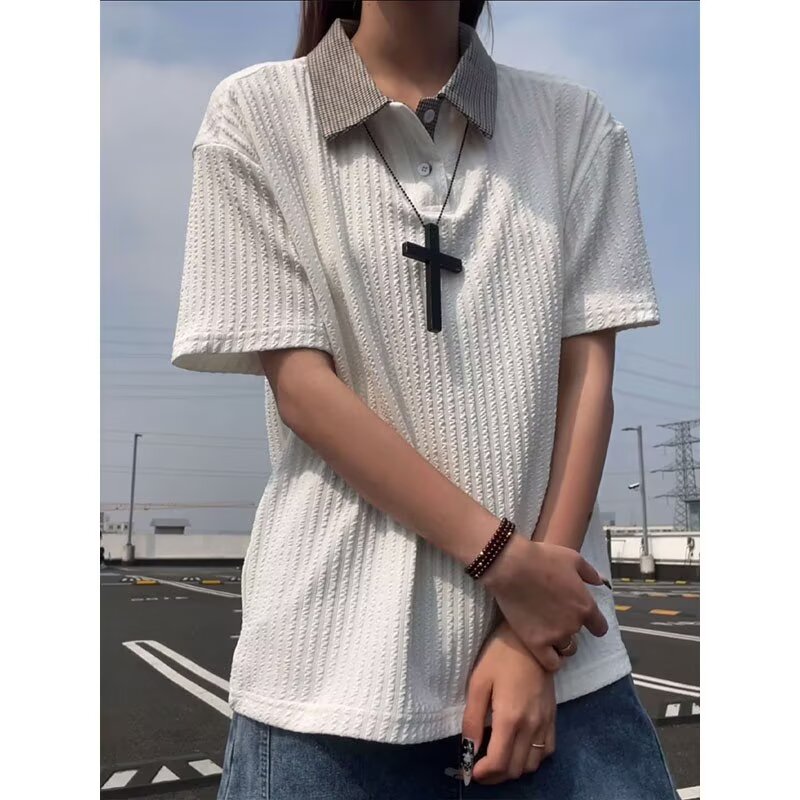 凉感对图原版纹理有版型polo衫鹿野短袖t恤女夏季宽松半袖体恤