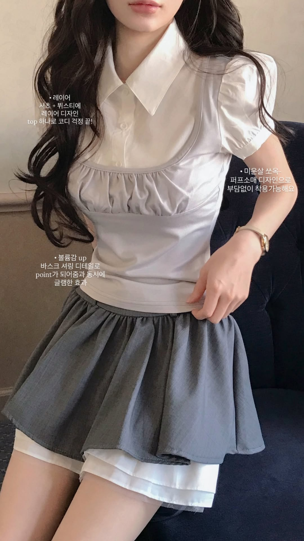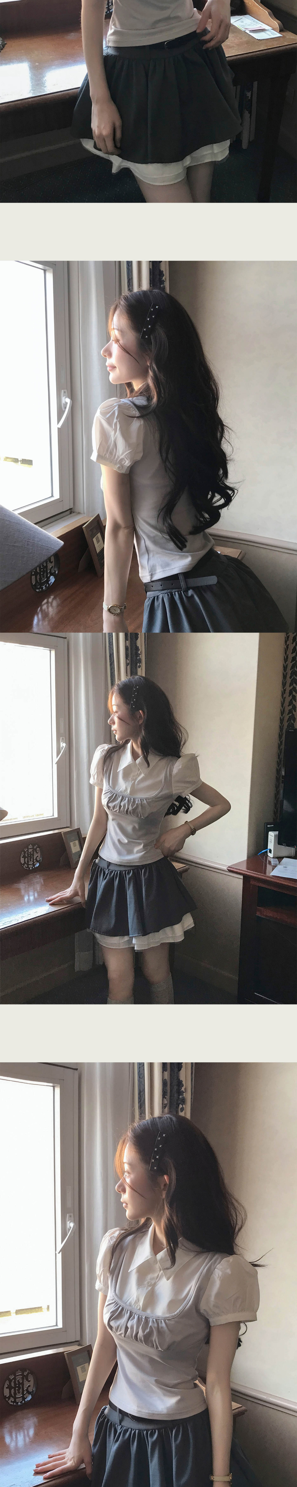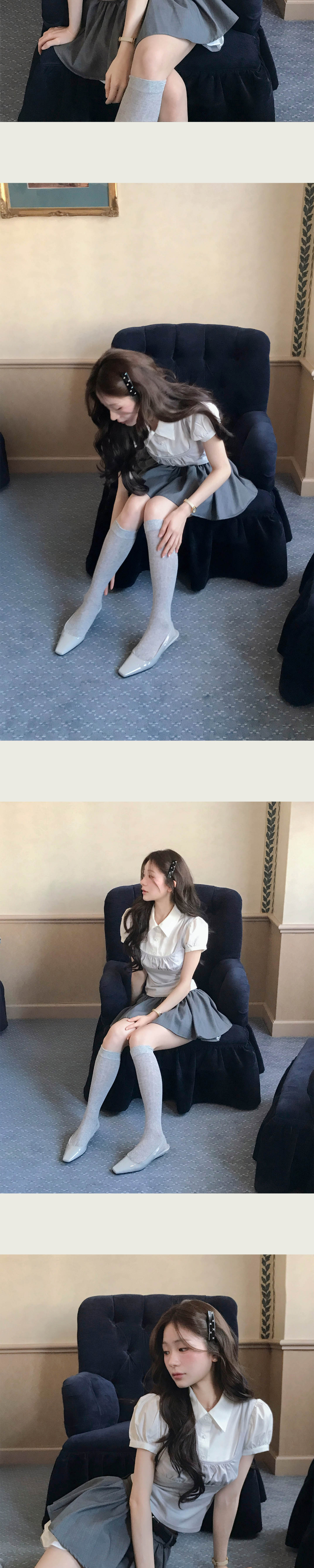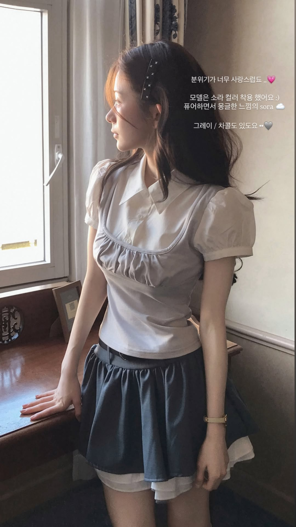 韩系 学院风假两件拼接上衣+假两件半身裙 女 套装