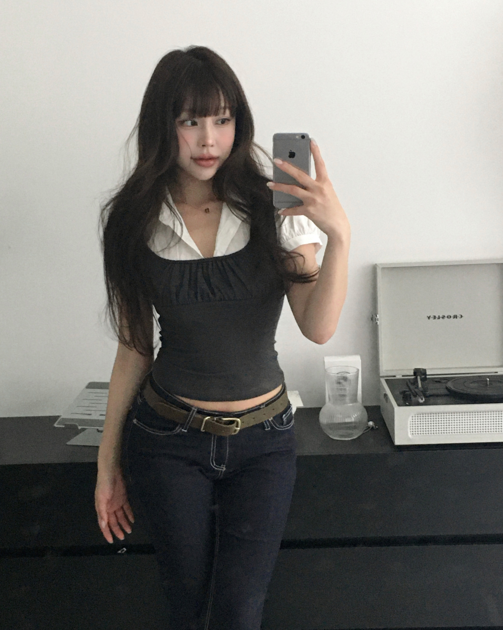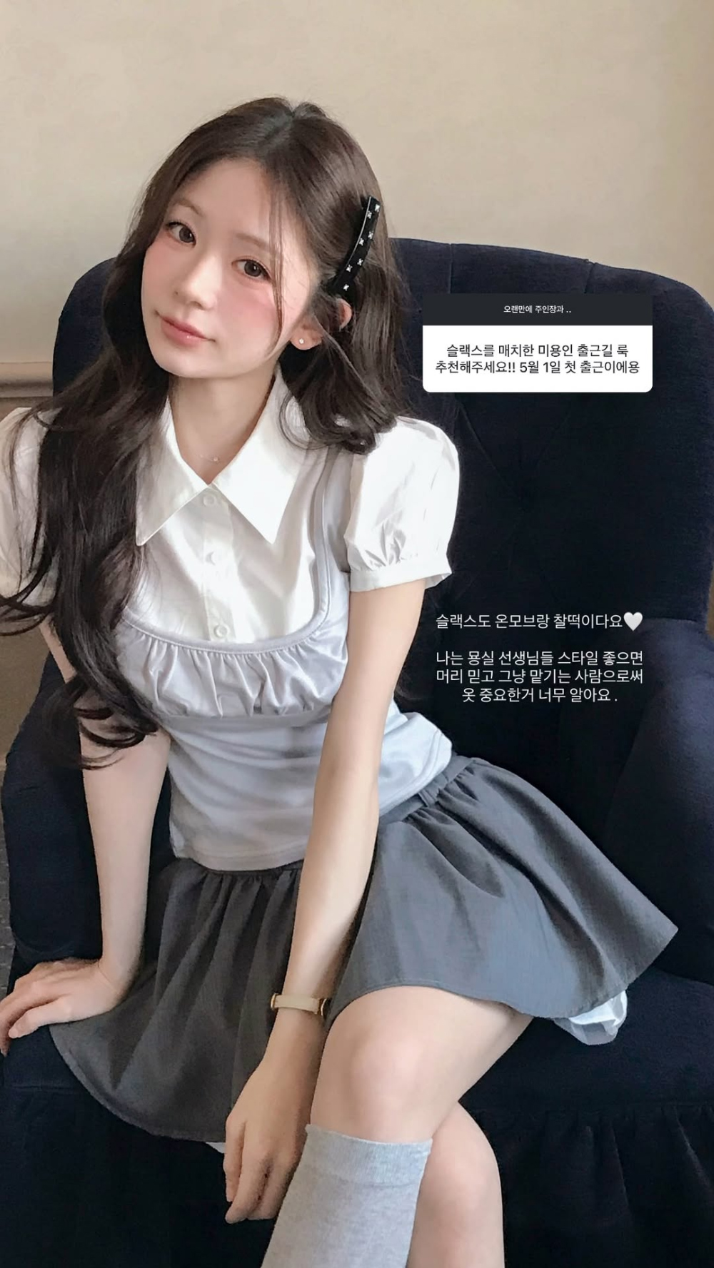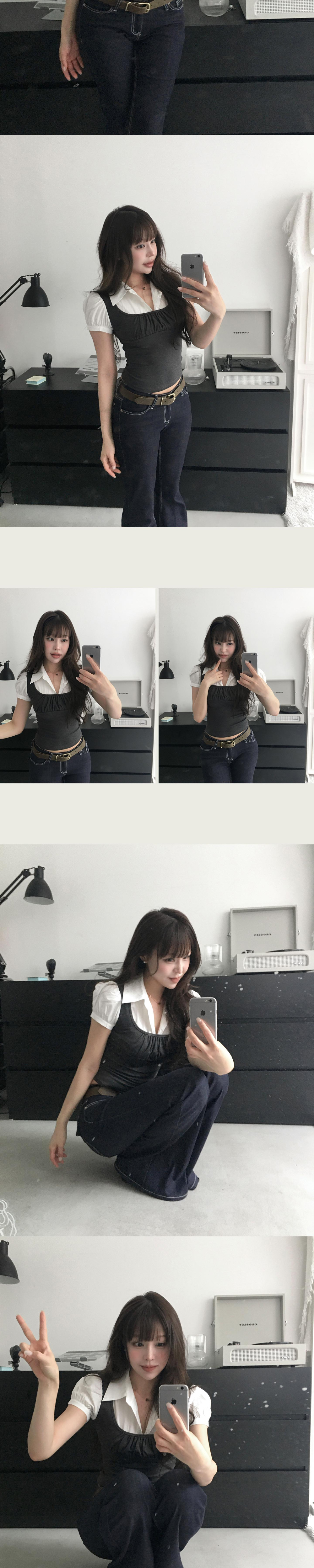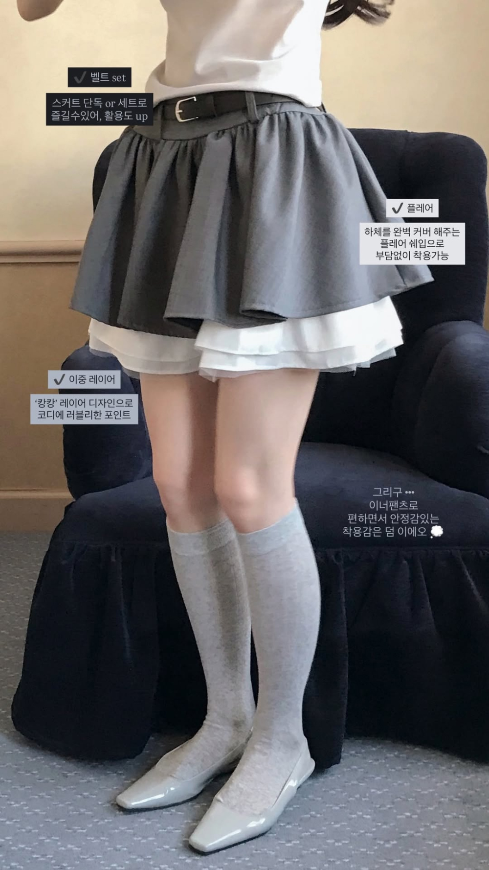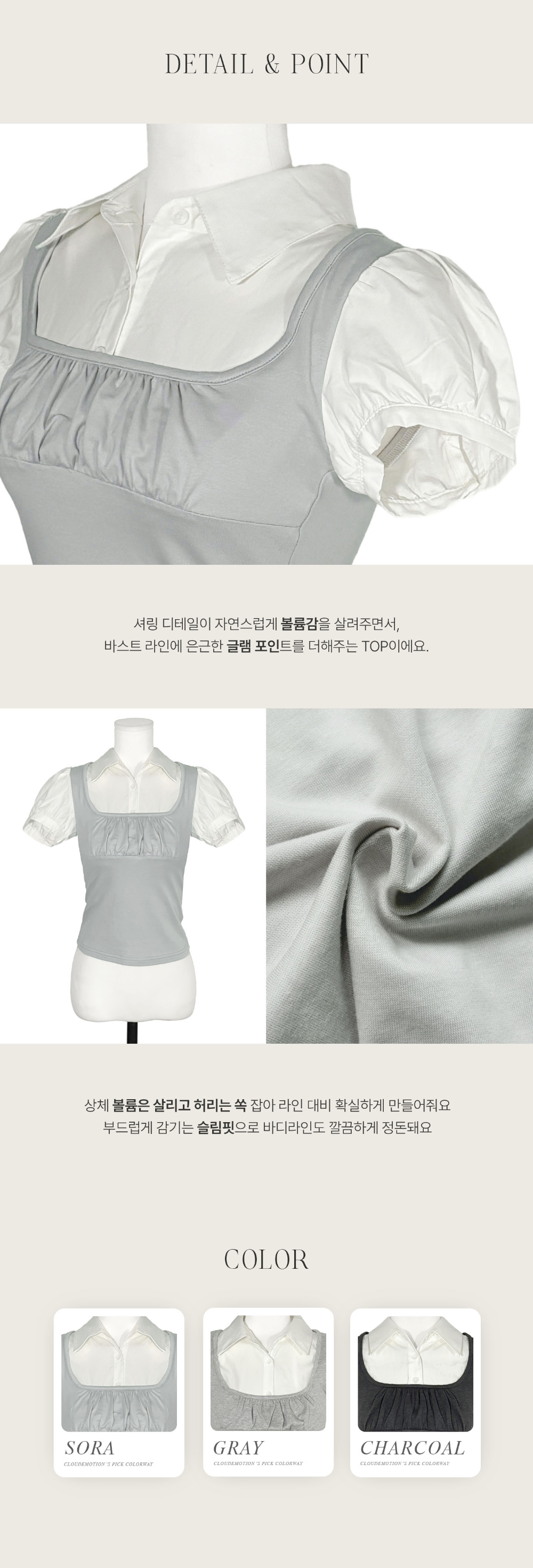 韩系 学院风假两件拼接上衣+假两件半身裙 女 套装