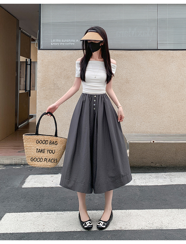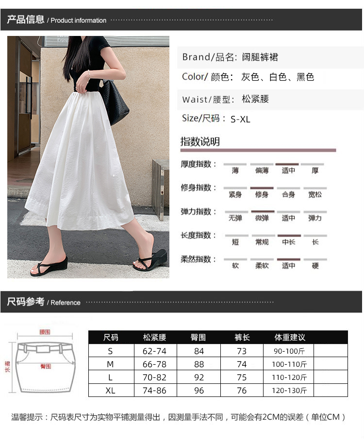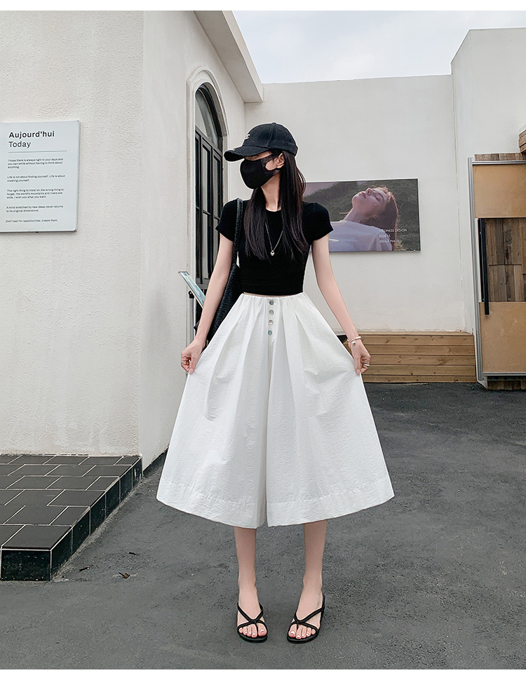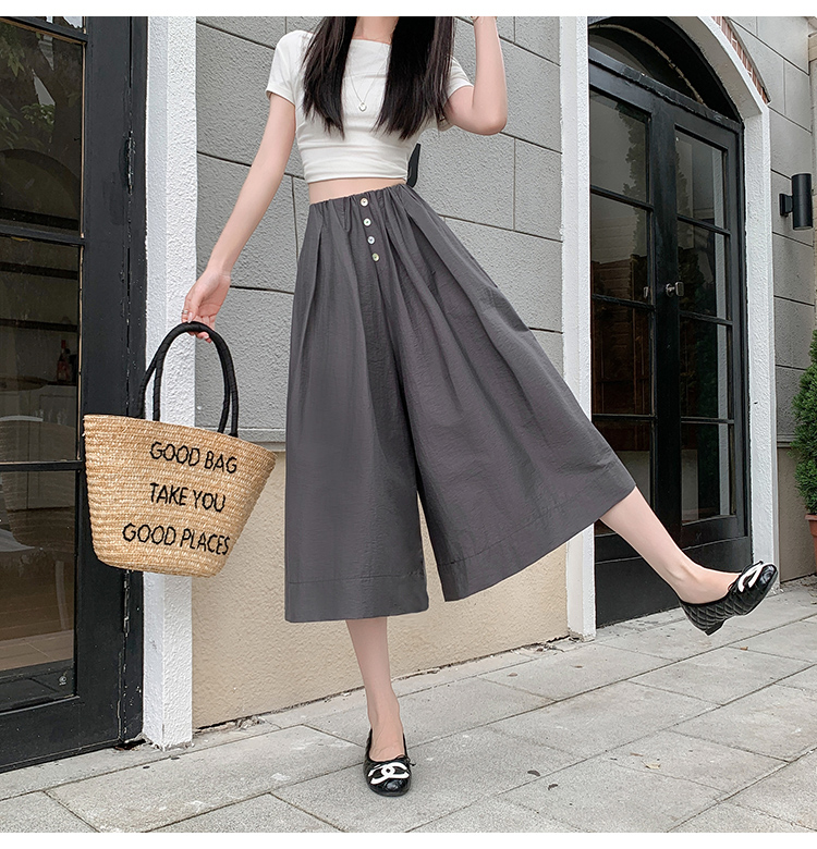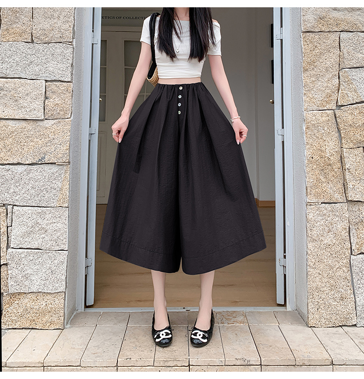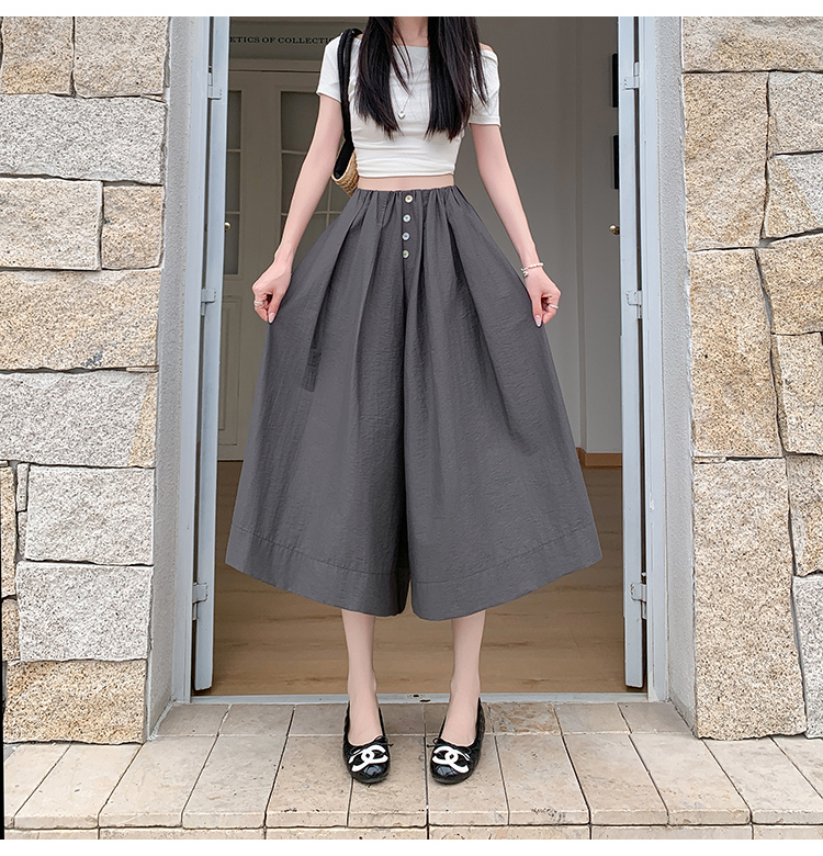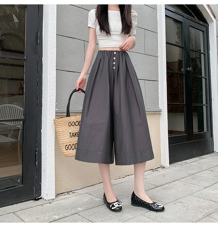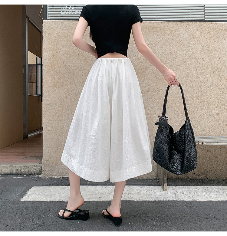实拍夏季新款百色阔腿裤女腰部褶皱设计感宽松松紧腰七分休闲裤裙
