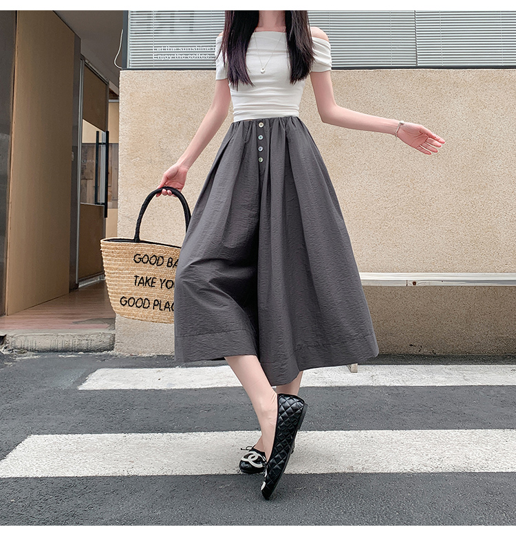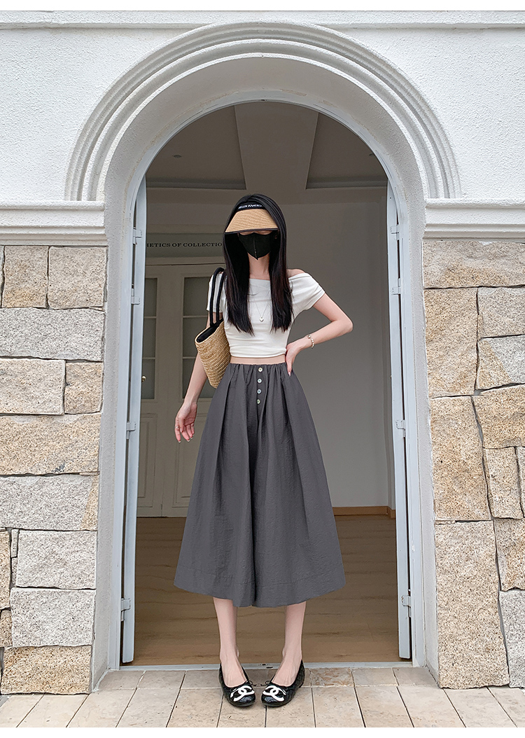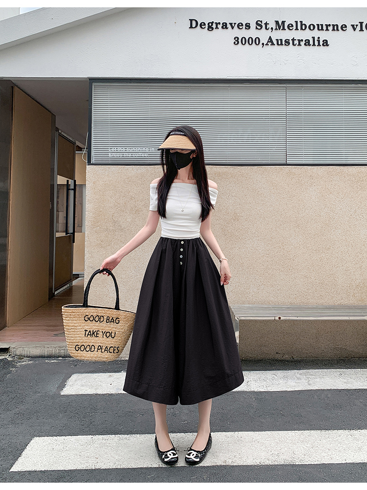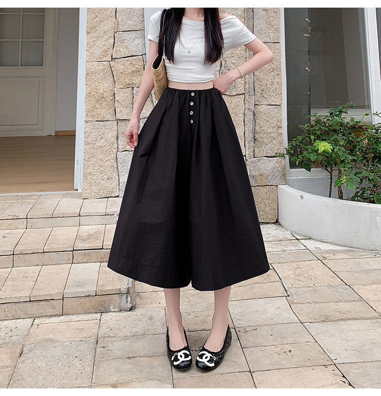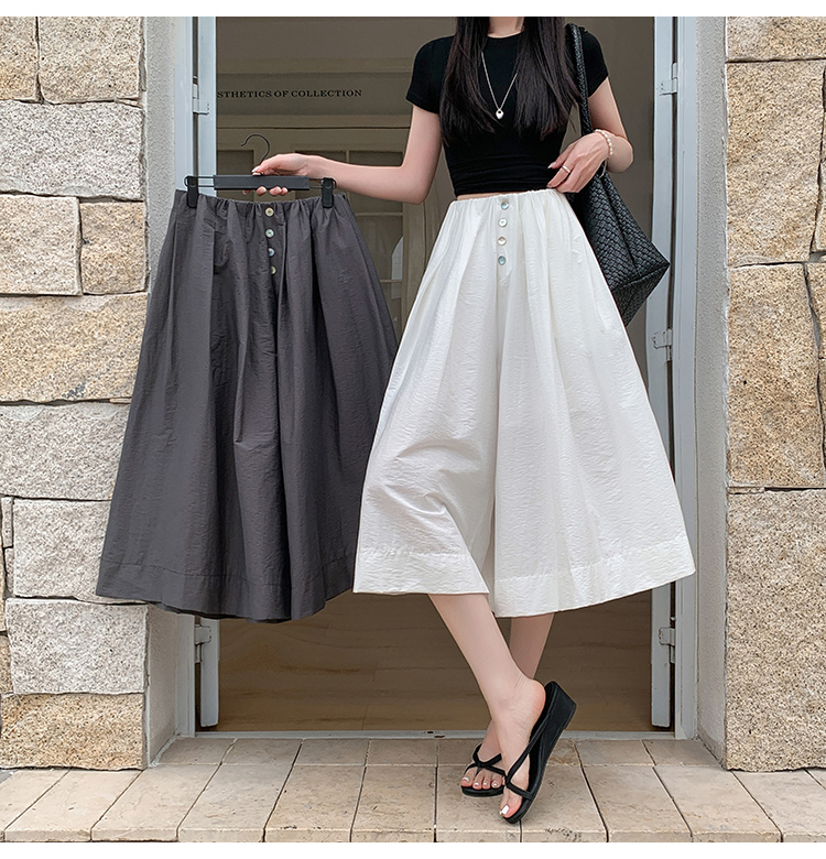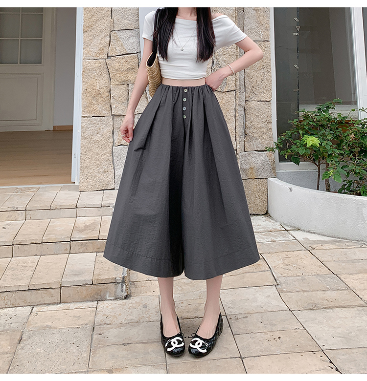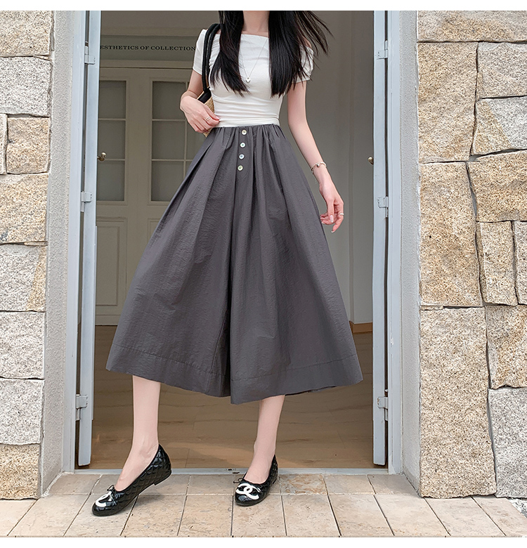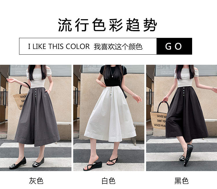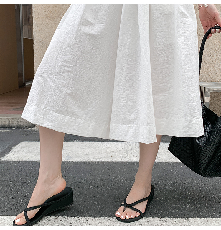 实拍夏季新款百色阔腿裤女腰部褶皱设计感宽松松紧腰七分休闲裤裙