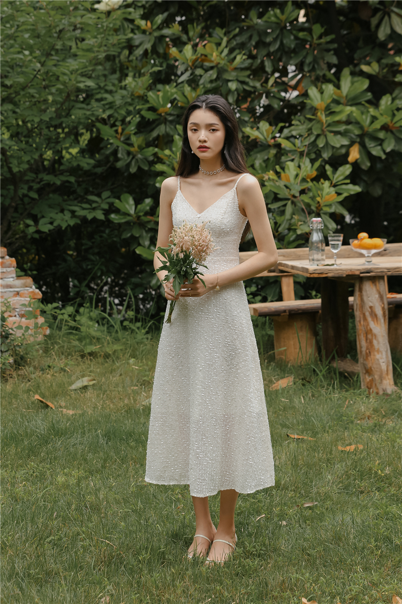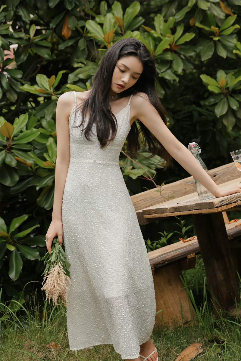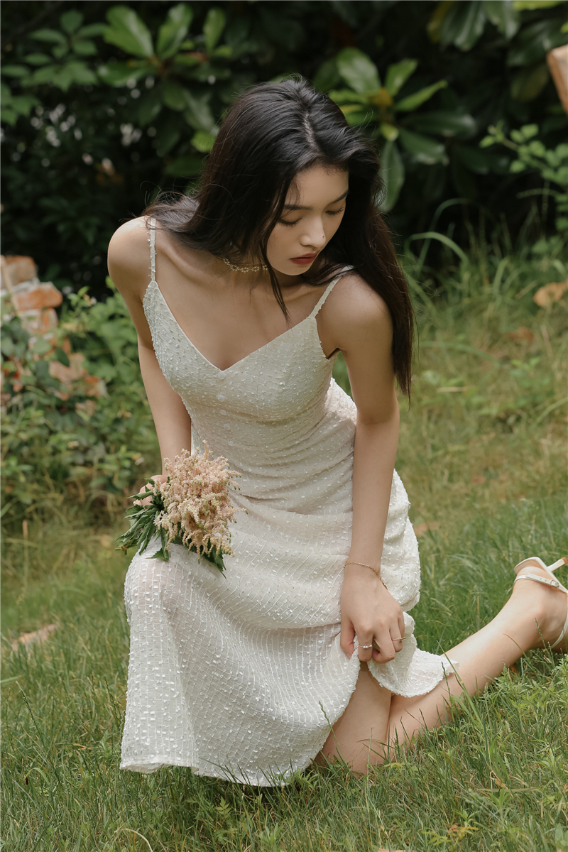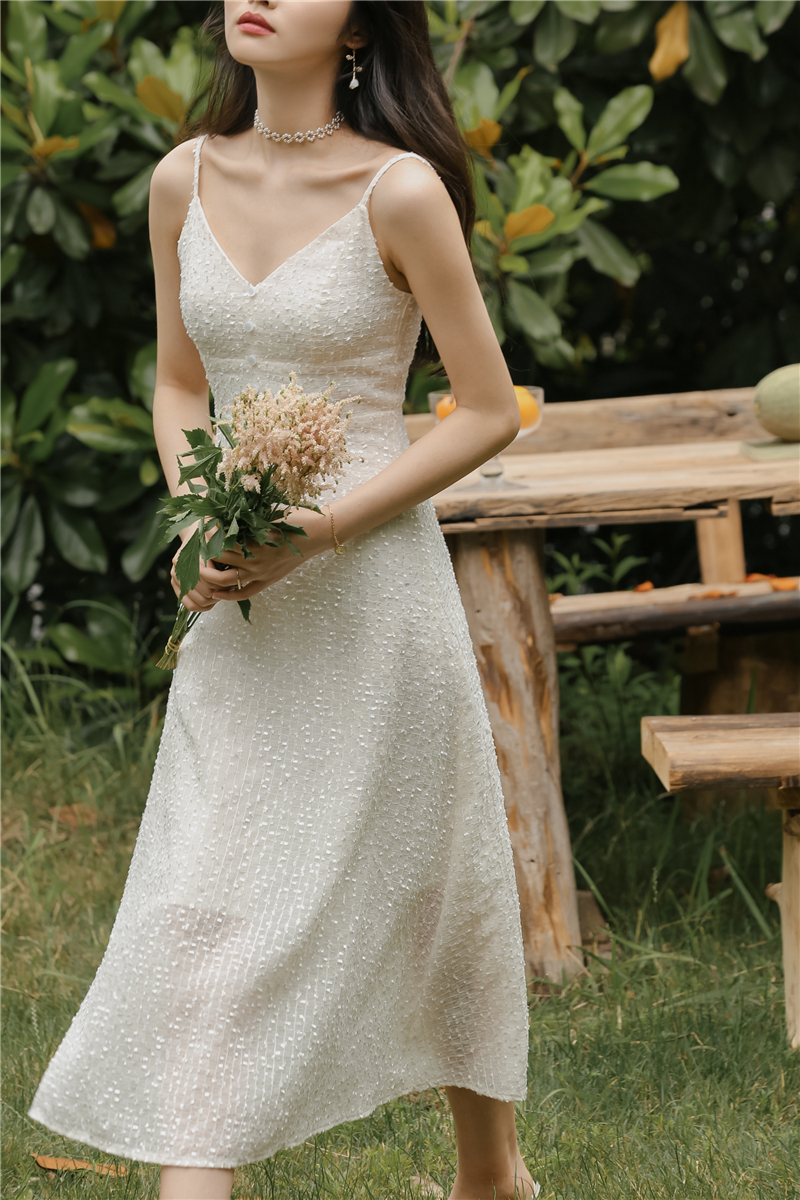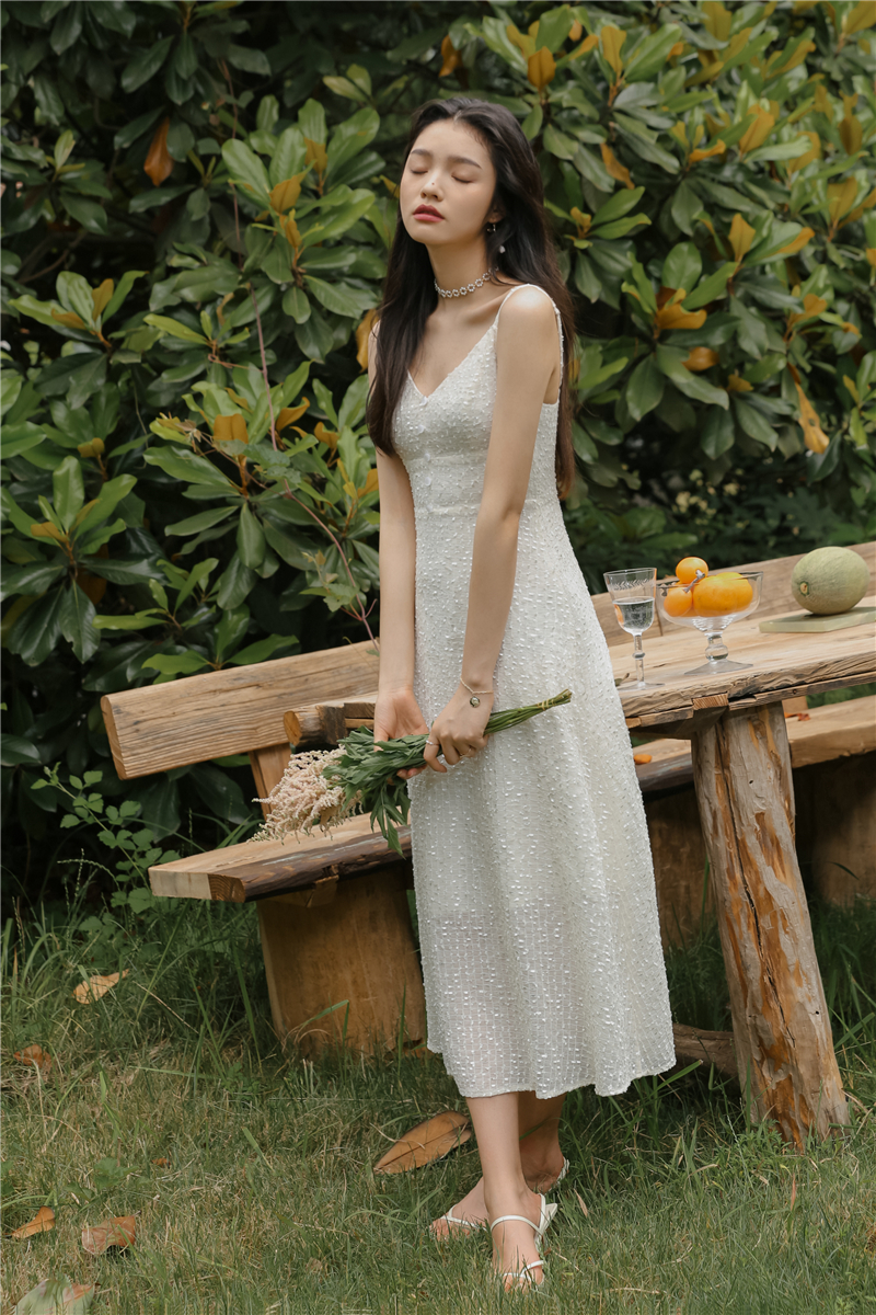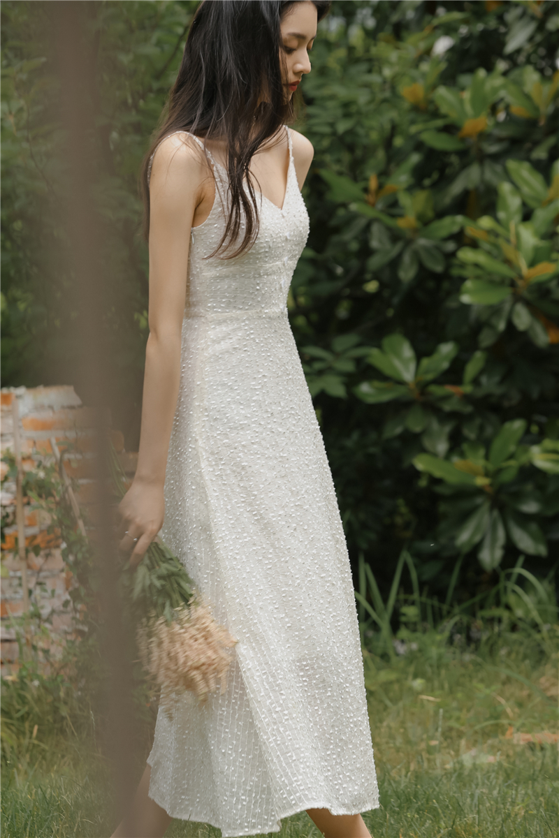2021 original new French fairy holiday dress sparkling white skirt girlfriend dress evening dress