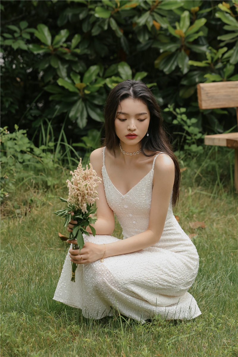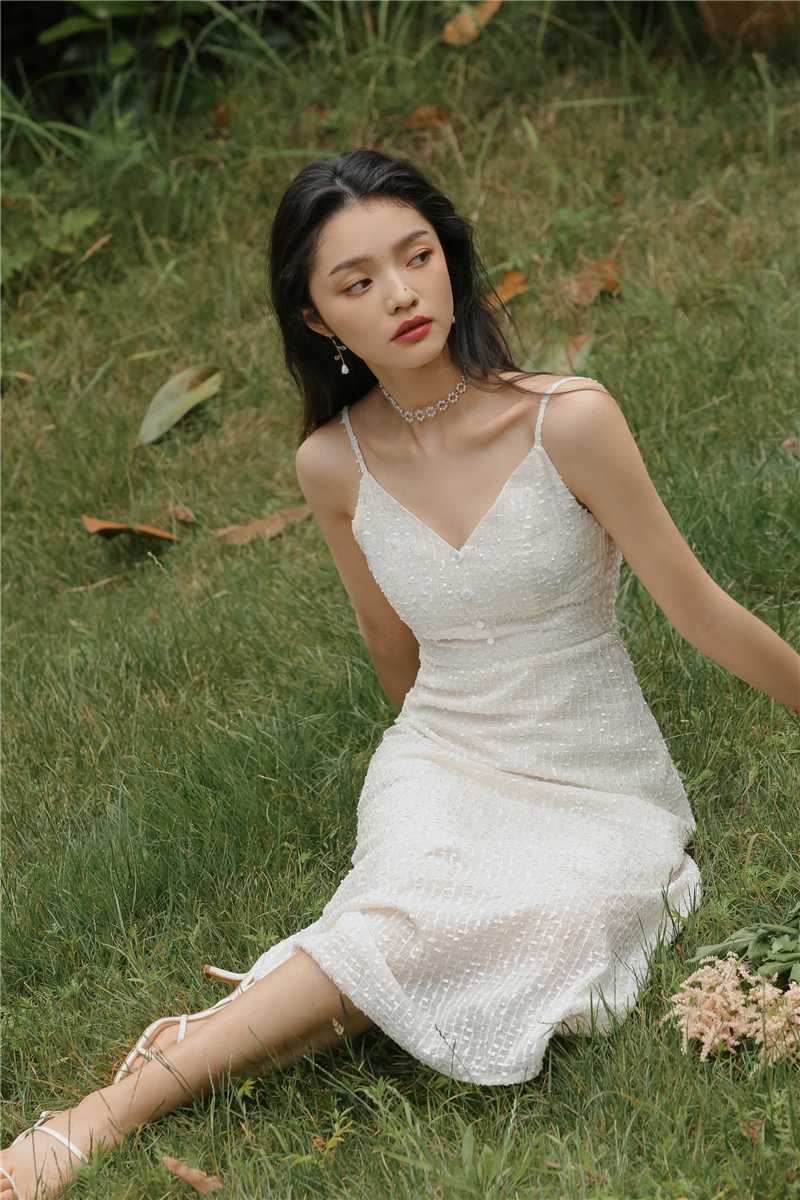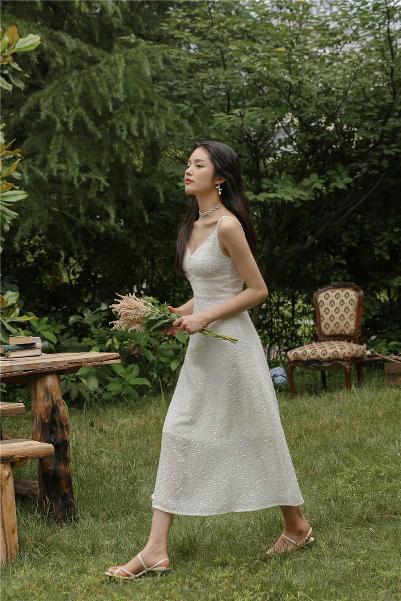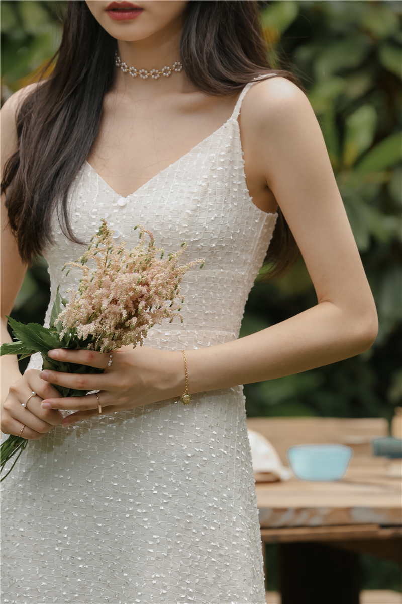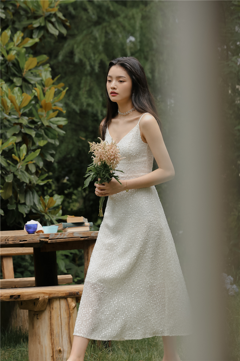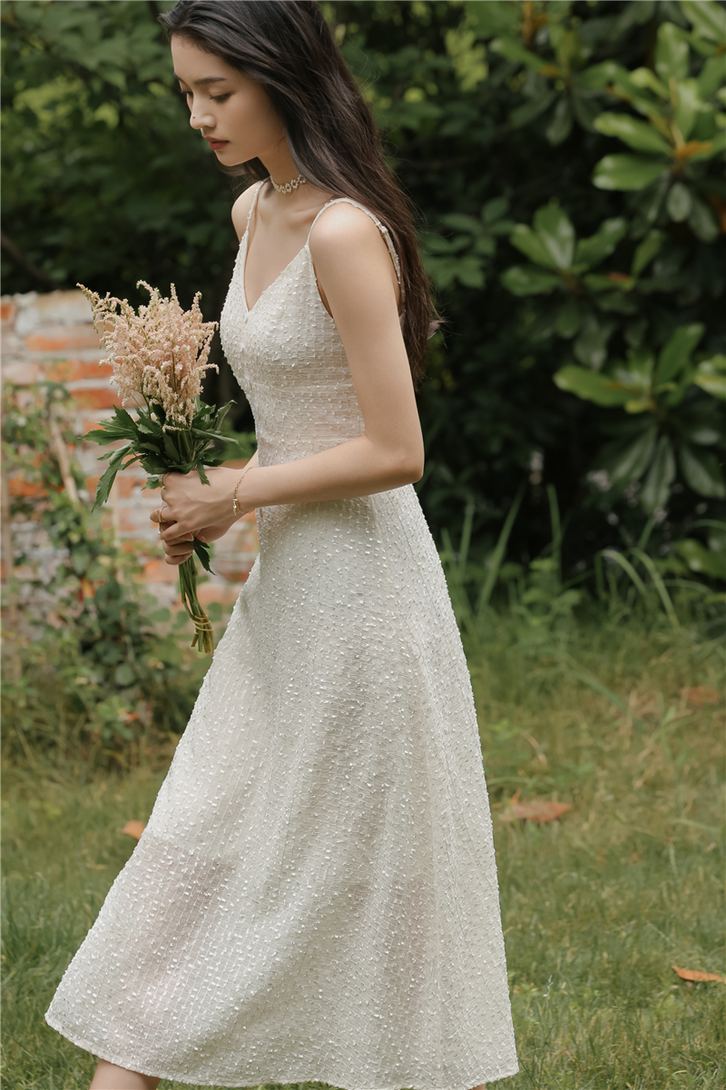 2021 original new French fairy holiday dress sparkling white skirt girlfriend dress evening dress