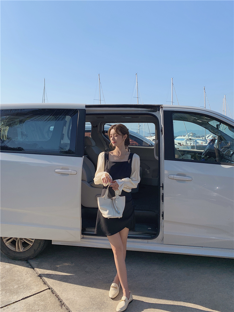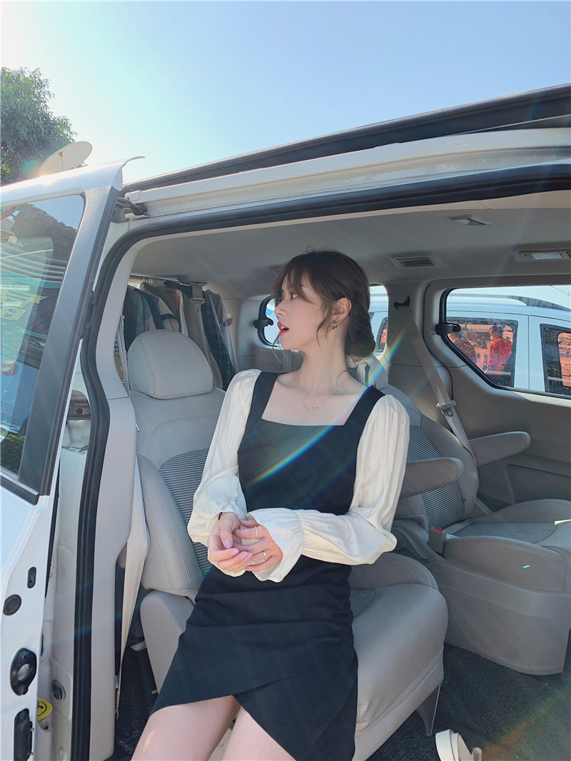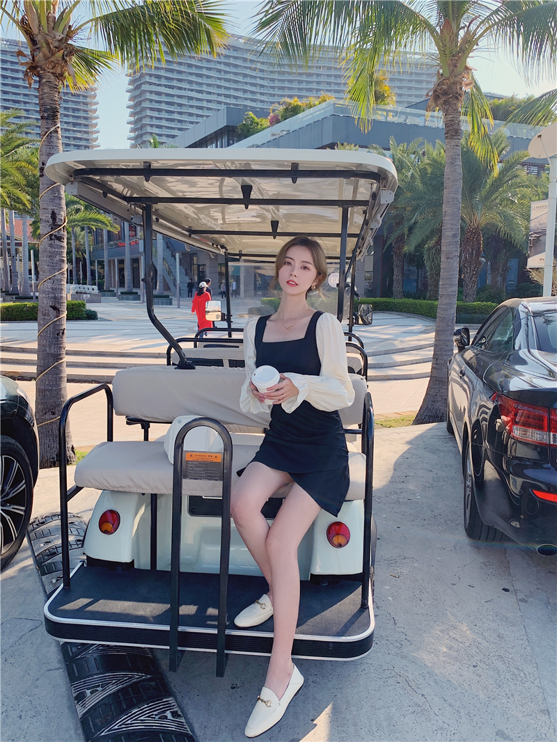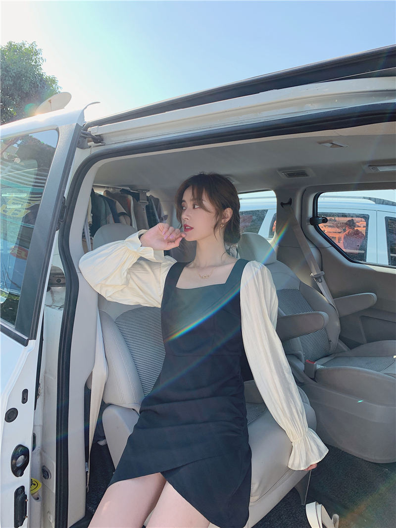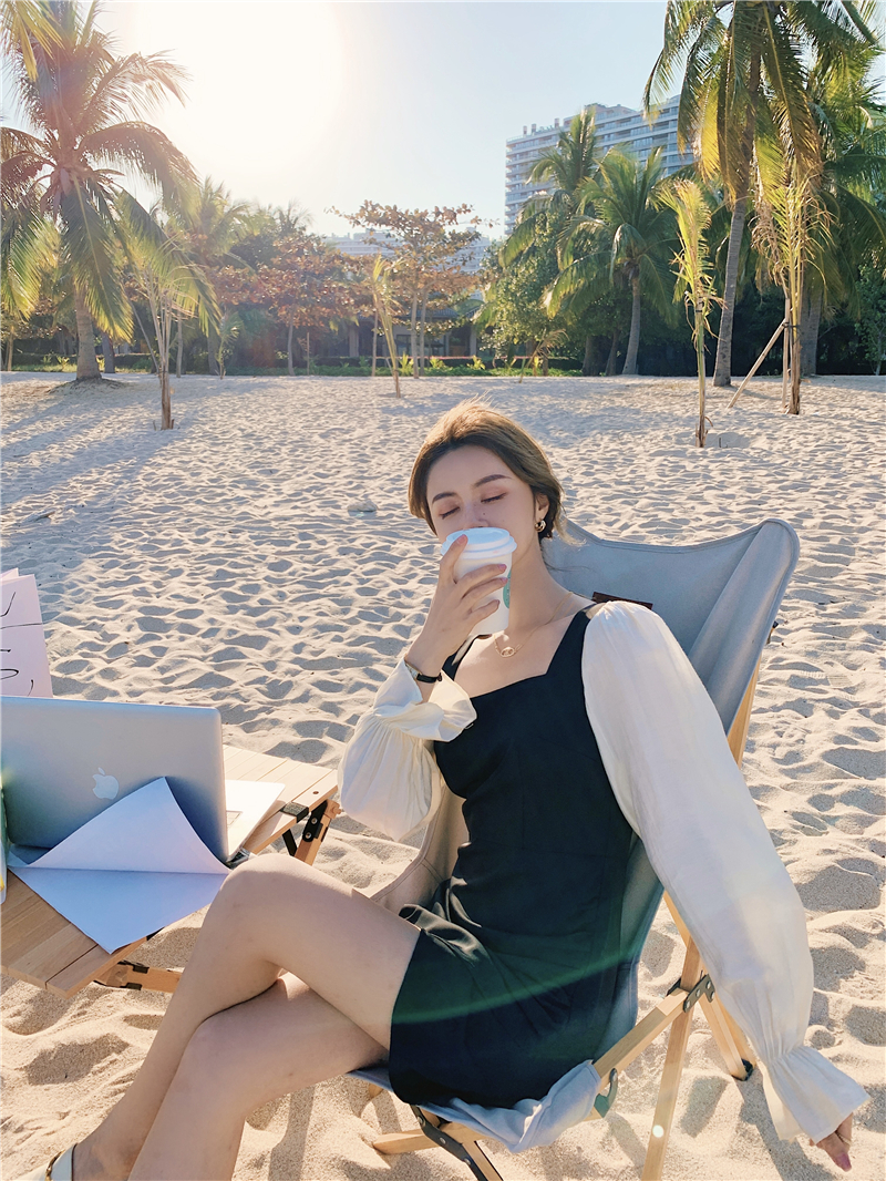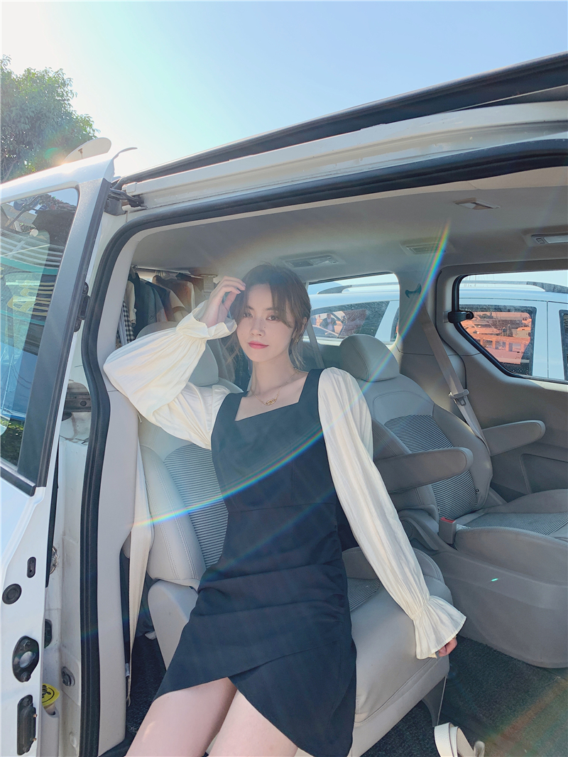 2025 New Spring and Summer Black Slim Dress Spliced Sleeve Short Small Skirt