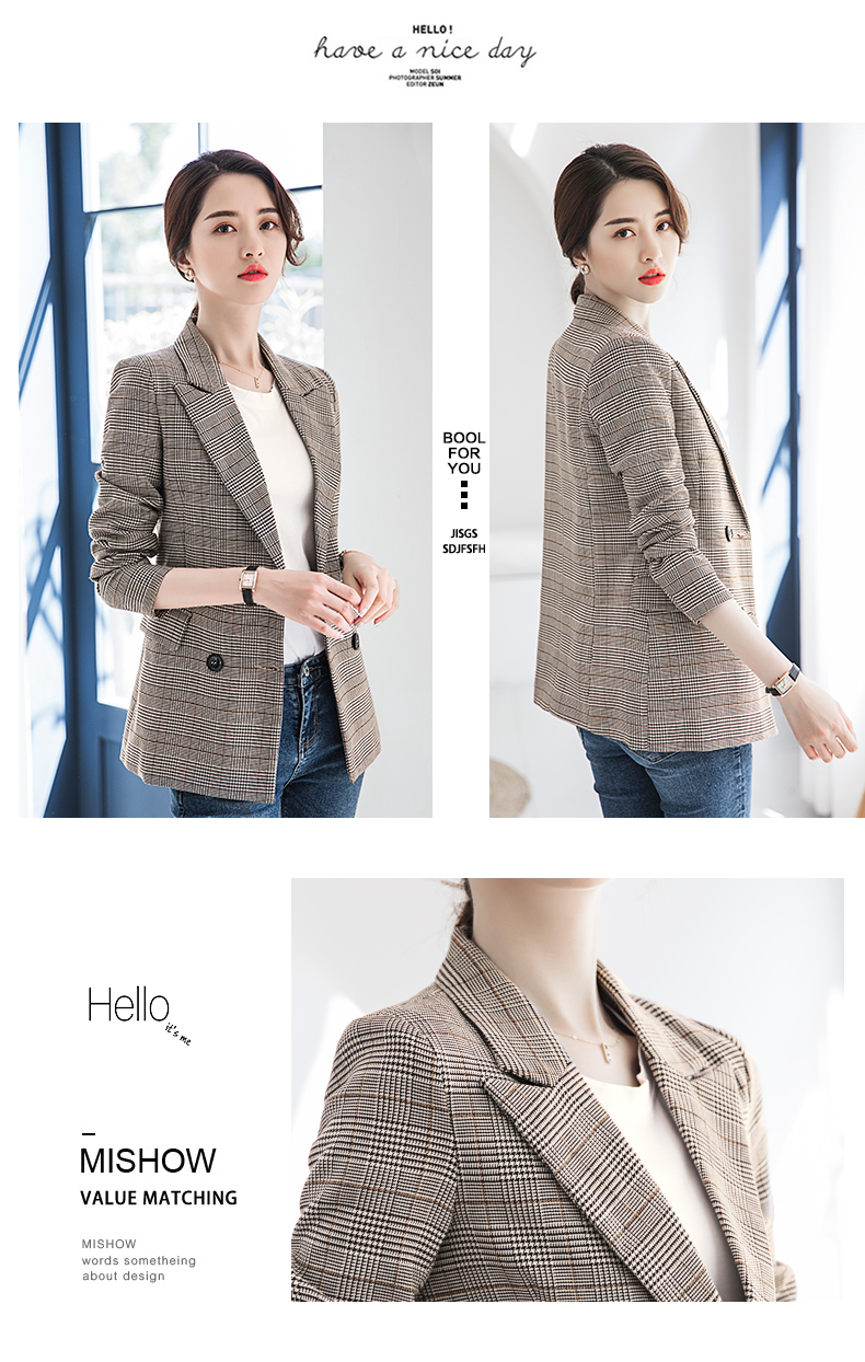 实拍格子西装外套女春秋季新款网红ins休闲复古韩版小西服外套女