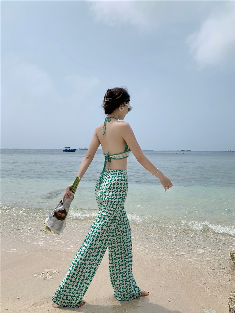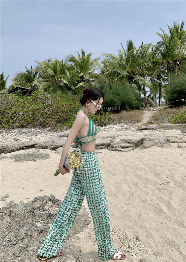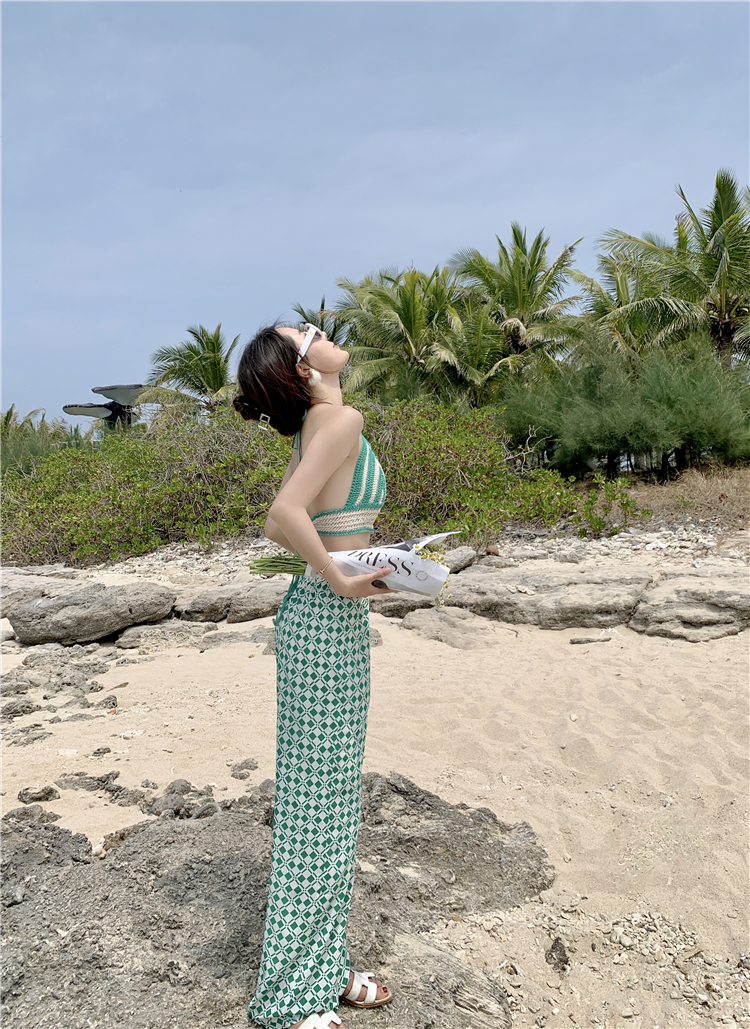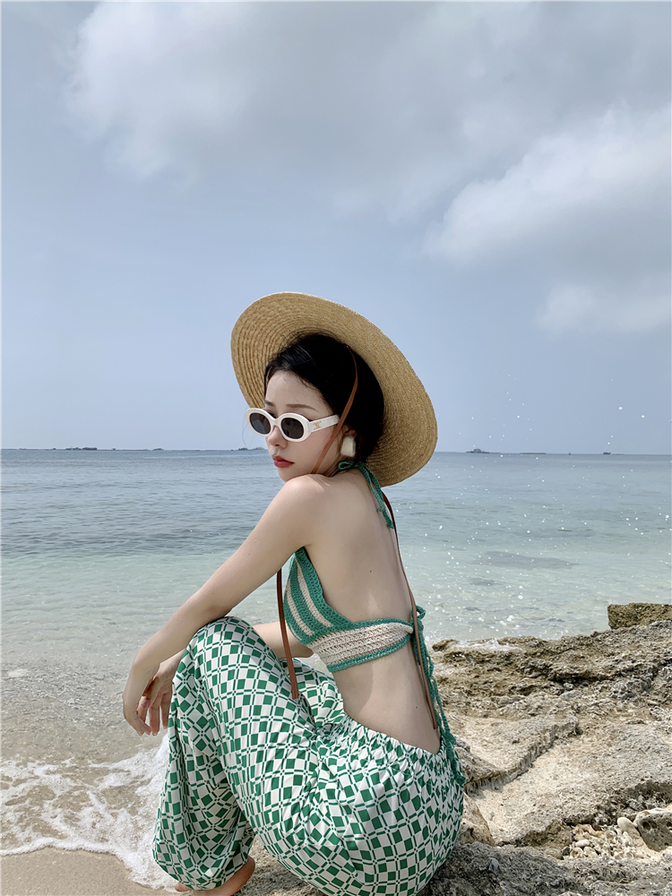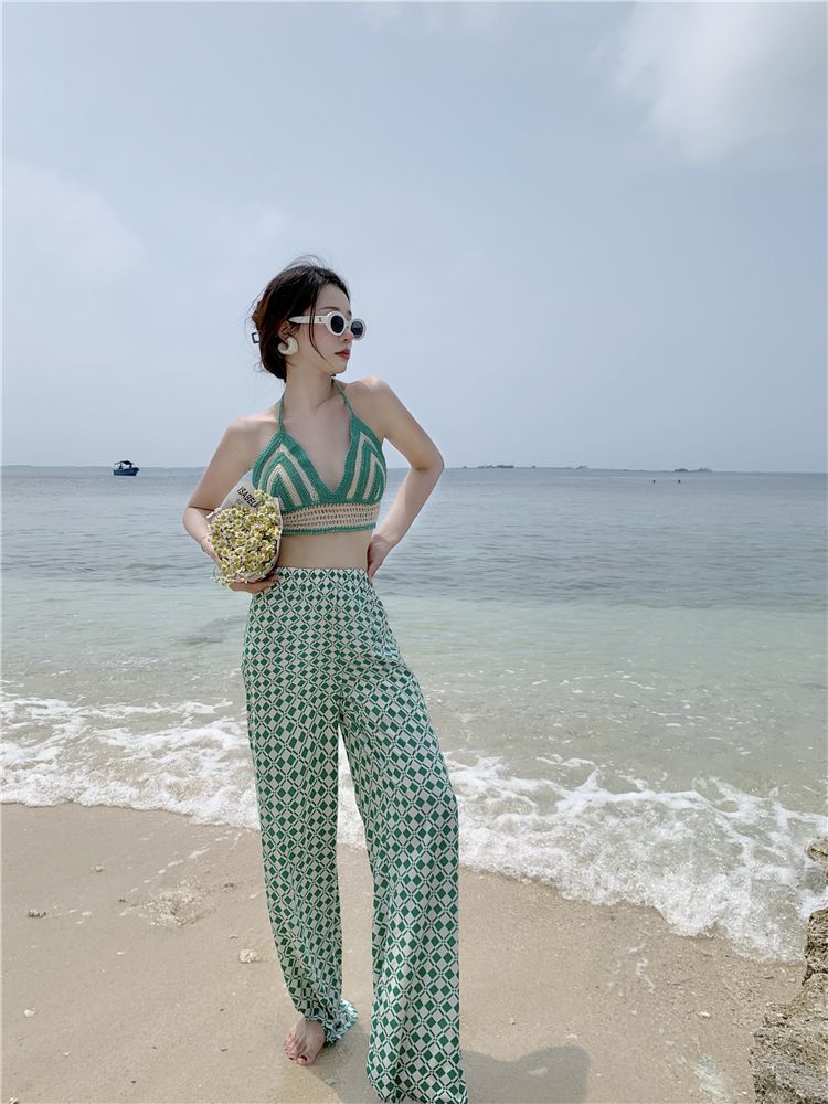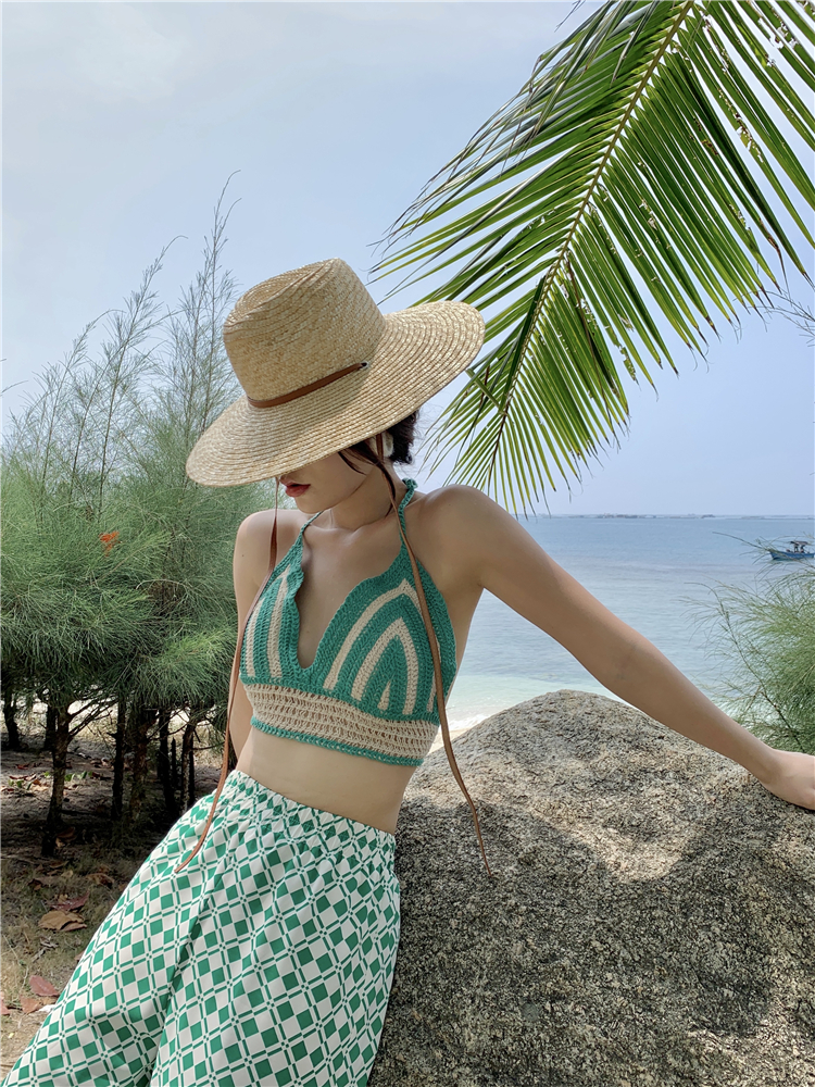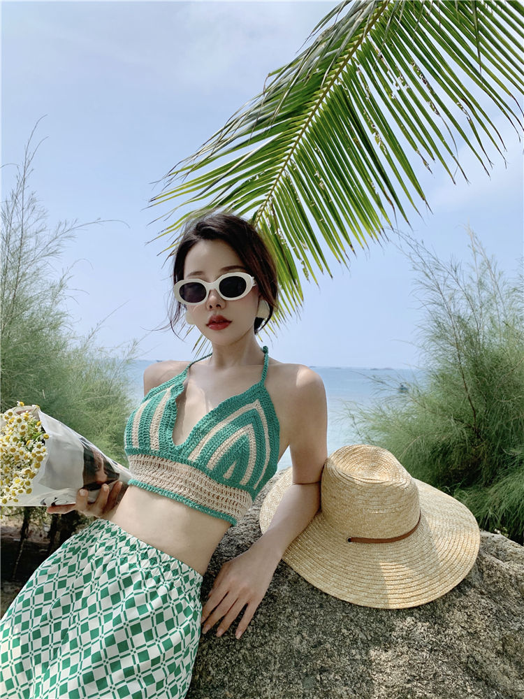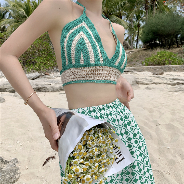 Real shot of the beach vacation style knitted small sling sexy bikini with chest pad top inner wear