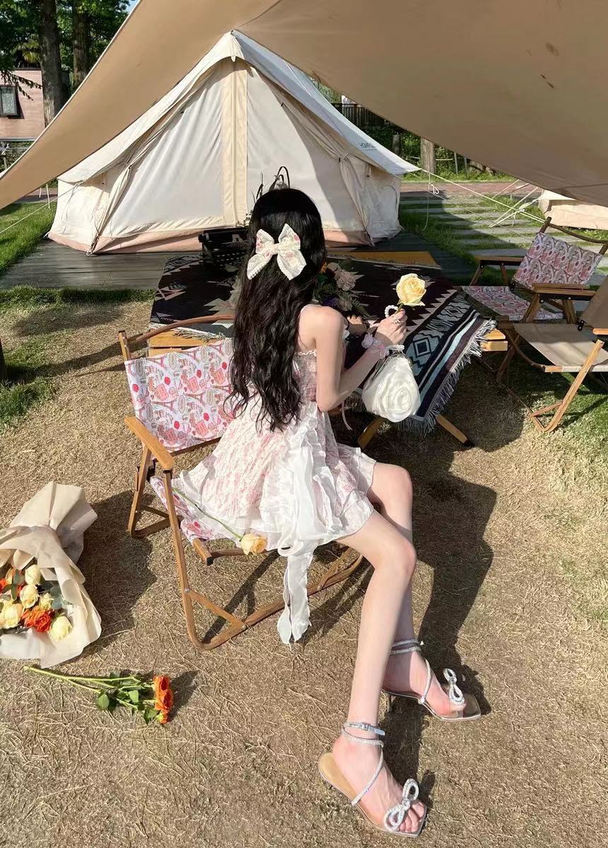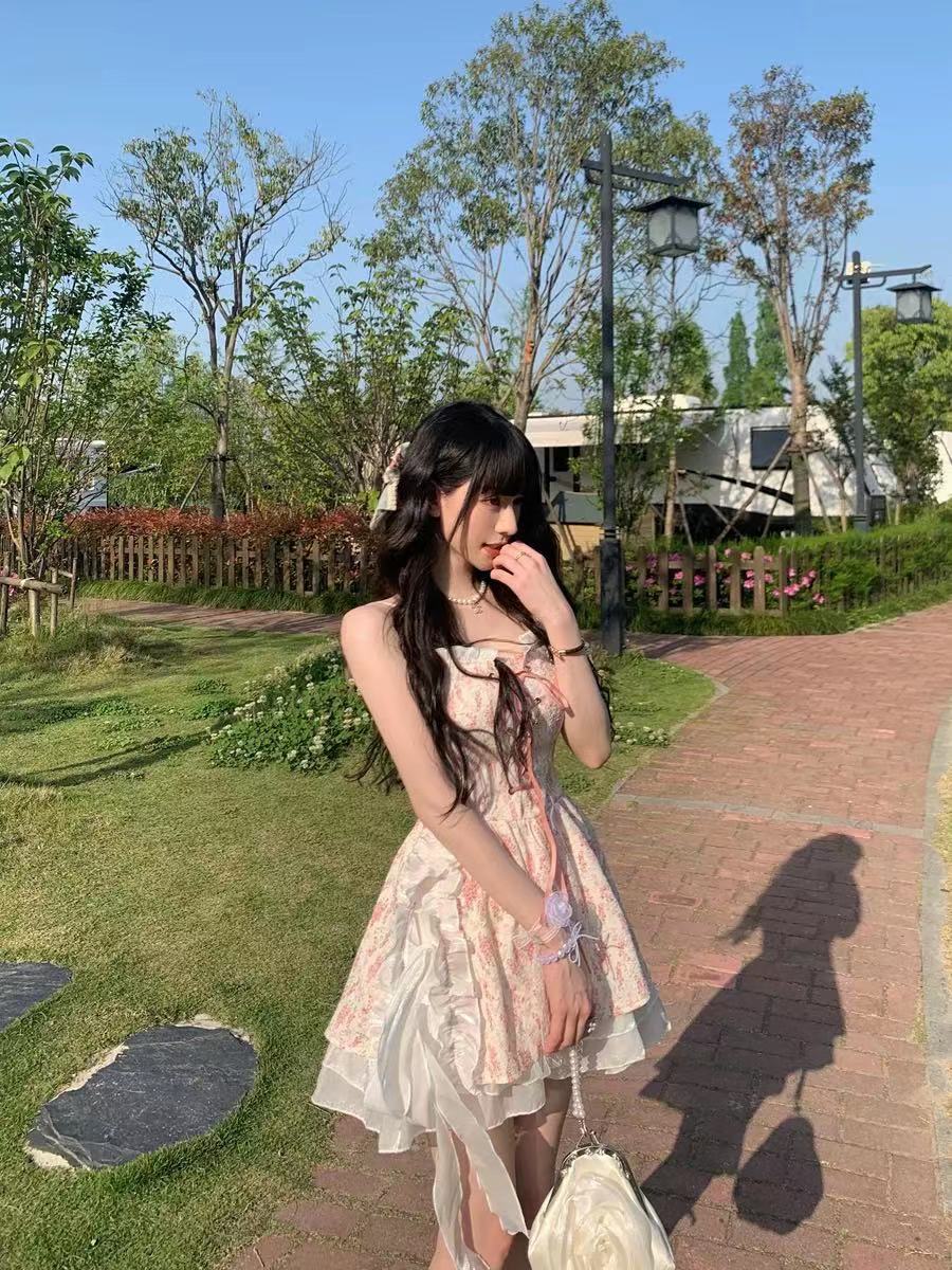 Catyears猫年 油画秘境~夏季俏皮可爱甜美抽绳吊带碎花连衣裙