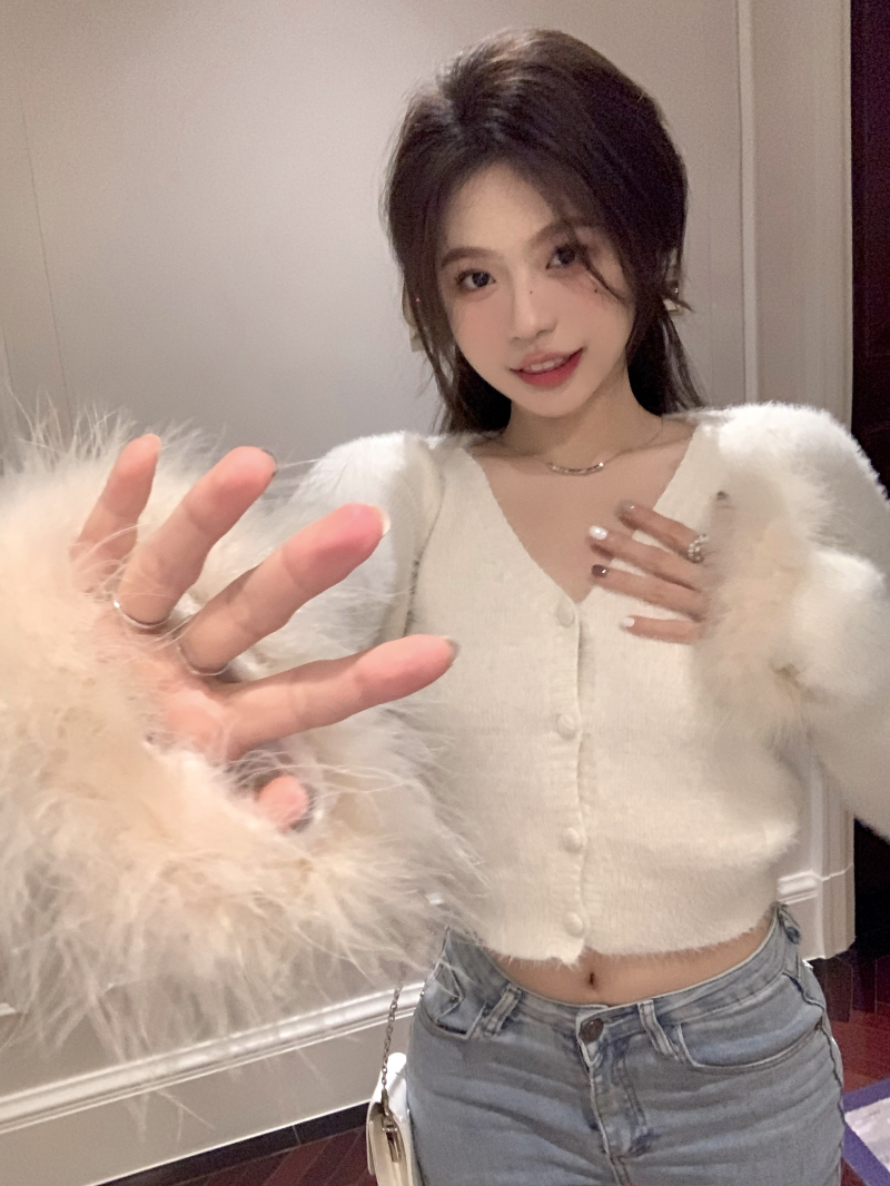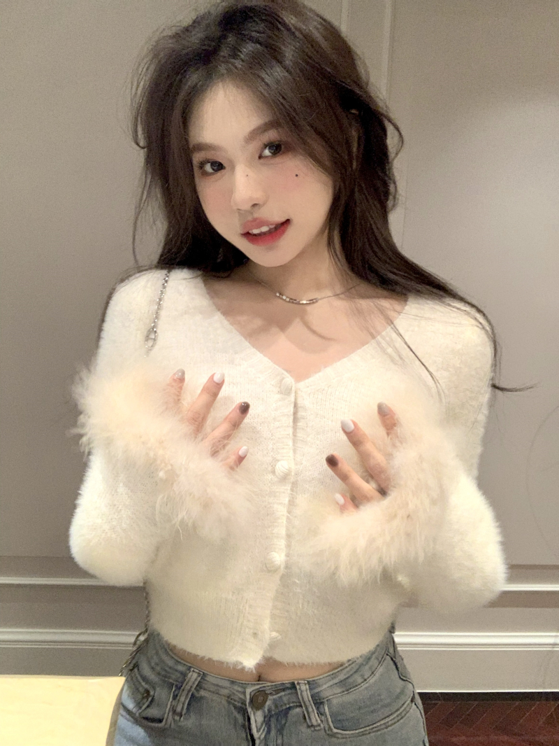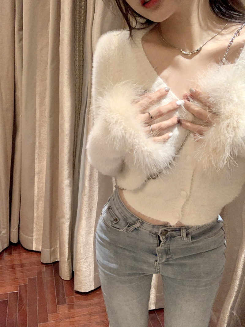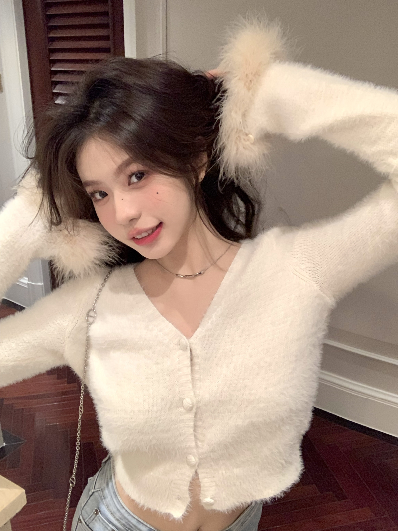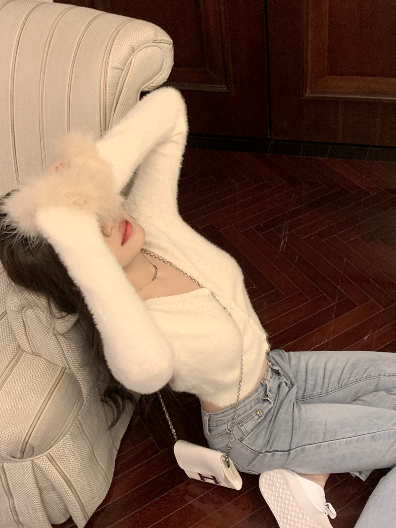 Real shot and real price Autumn and winter new lazy style private clothes fluffy fairy cardigan jacket tops for women