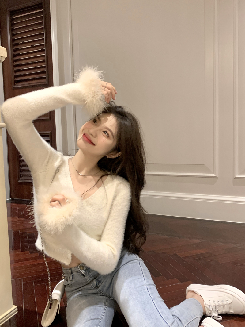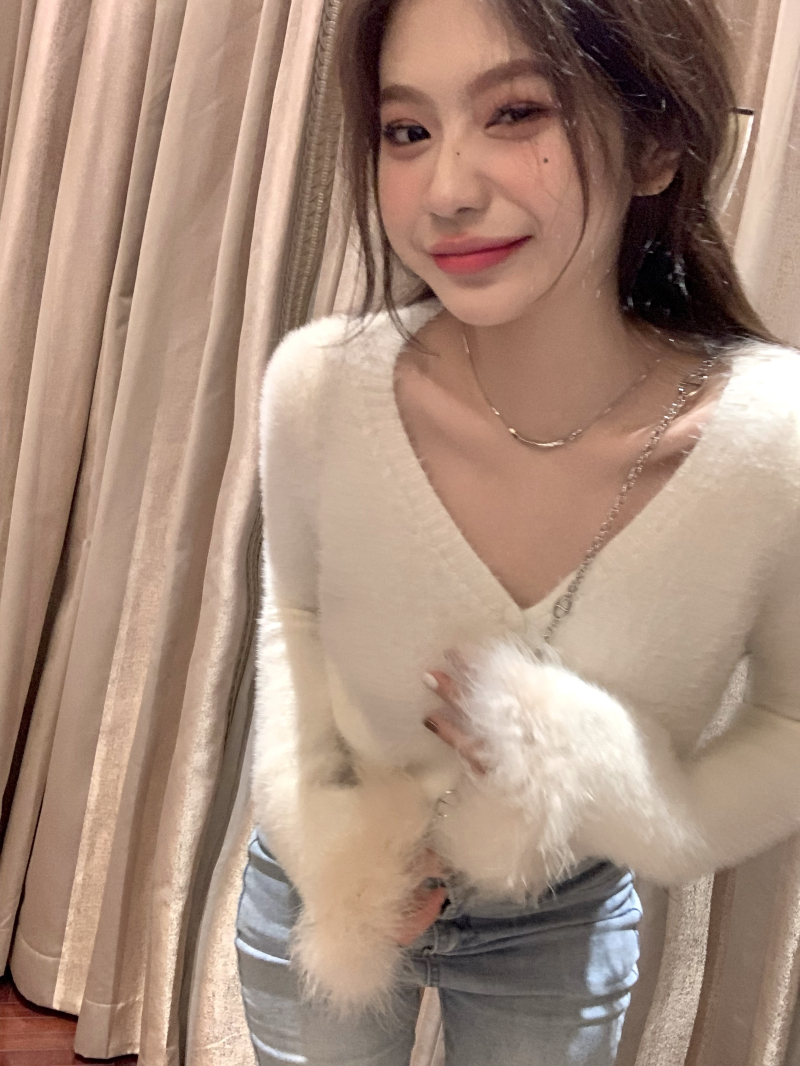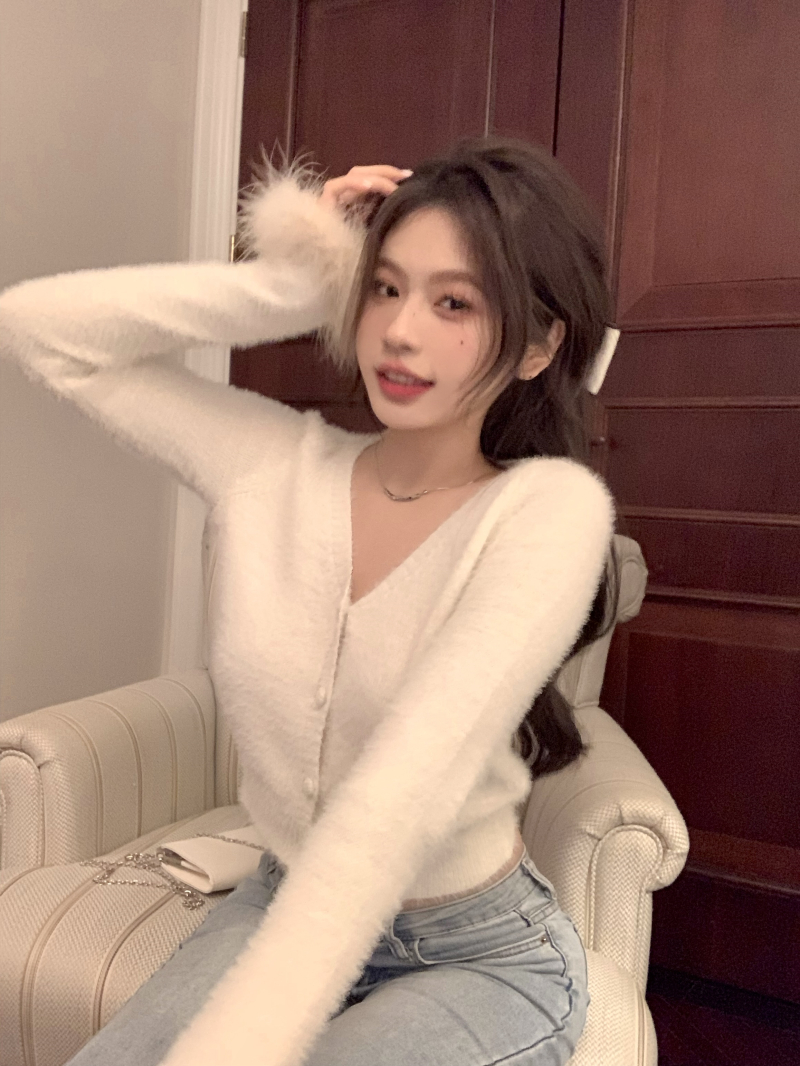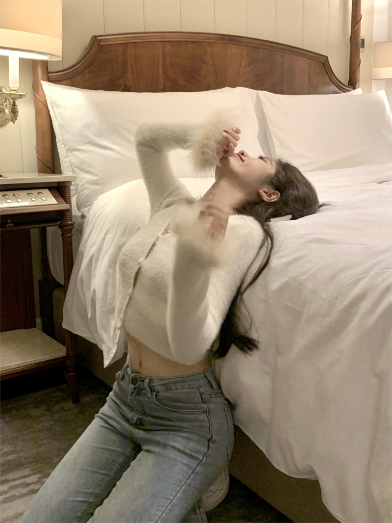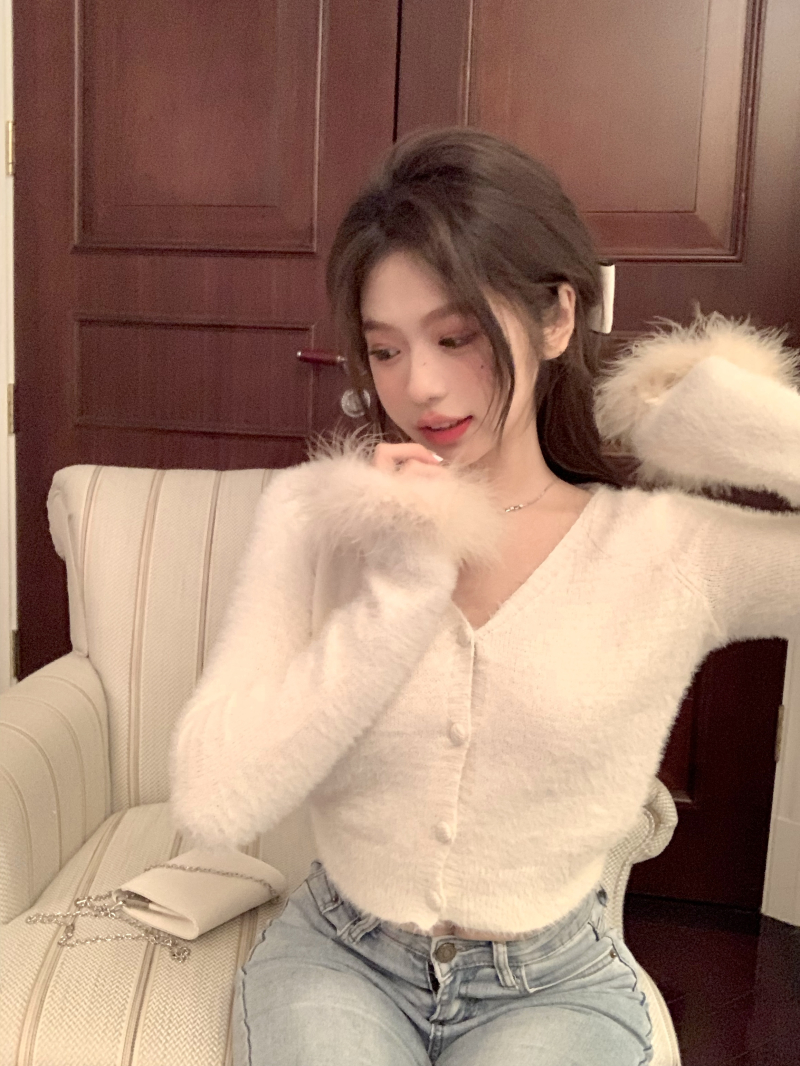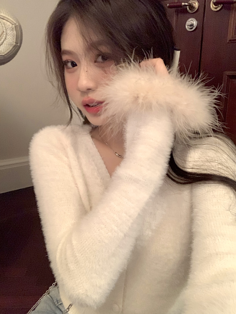Real shot and real price Autumn and winter new lazy style private clothes fluffy fairy cardigan jacket tops for women