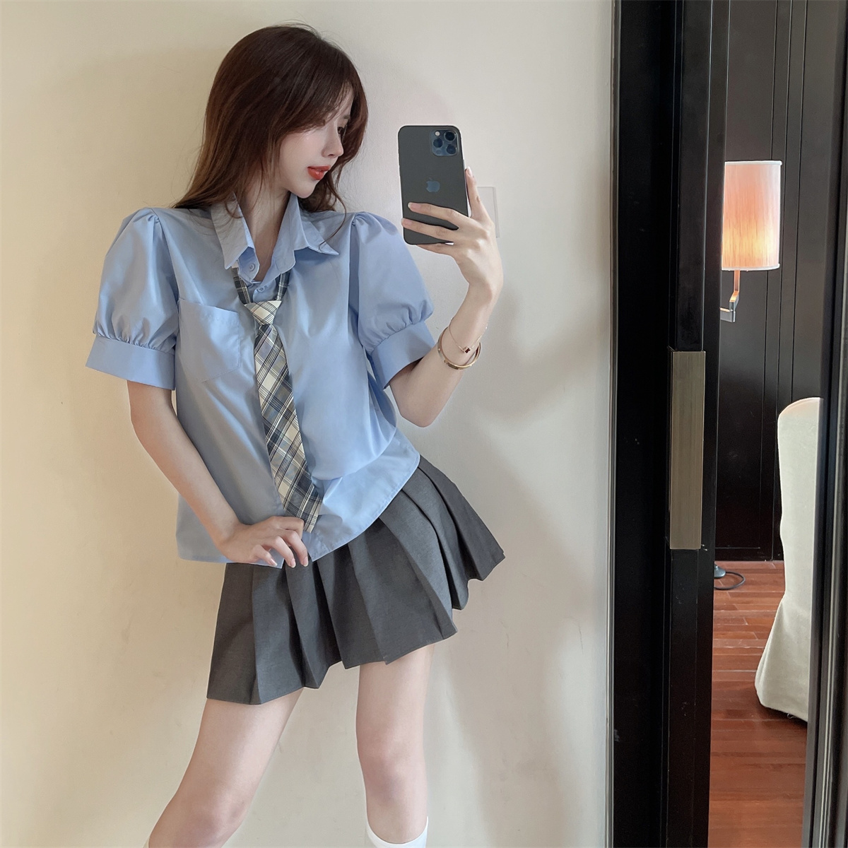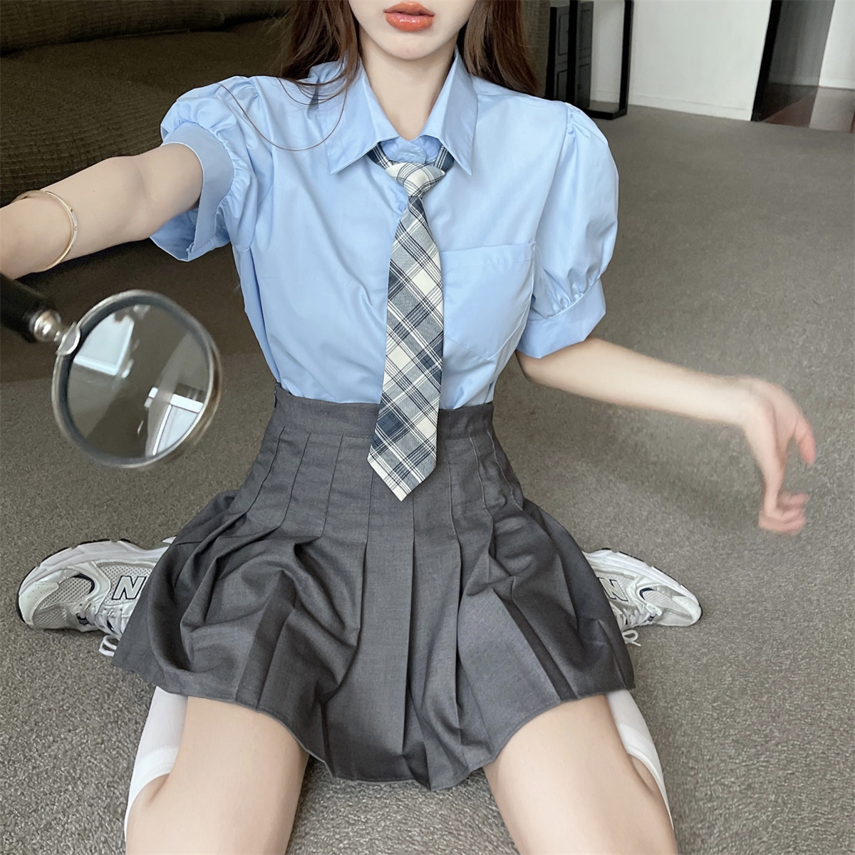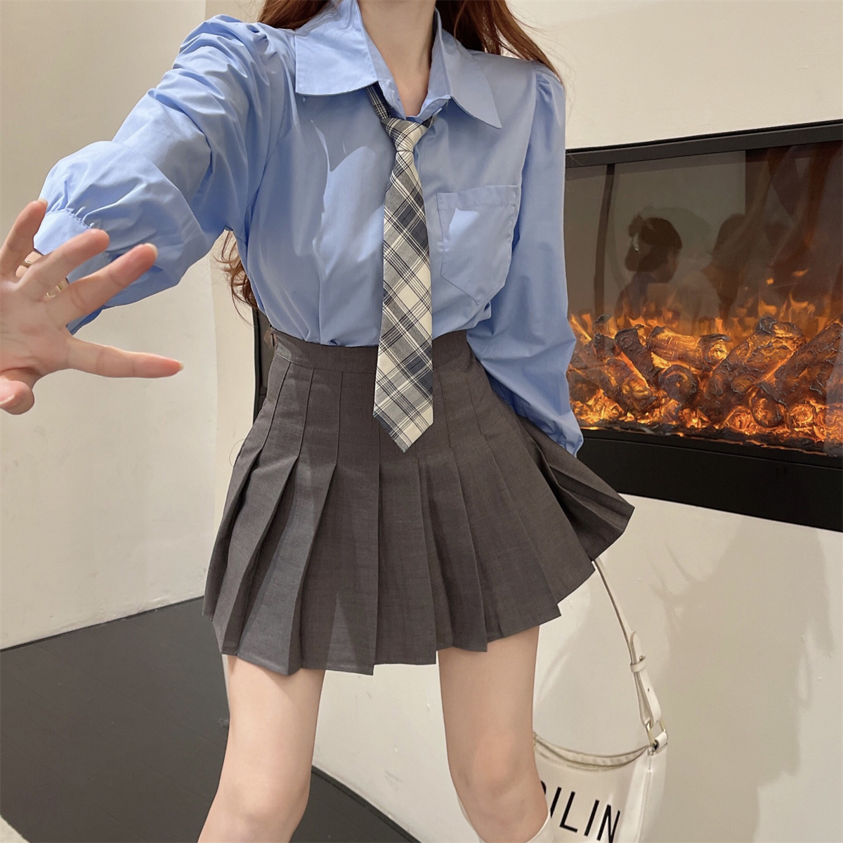 实拍实价 春夏学院风小清新减龄百搭领带衬衫女+高腰百褶裙JK套装