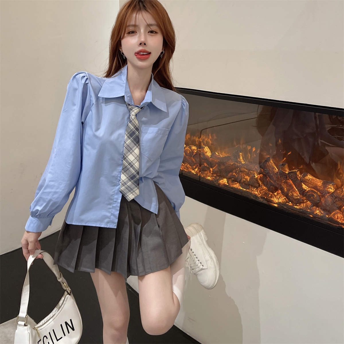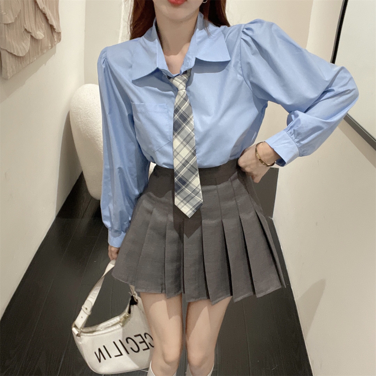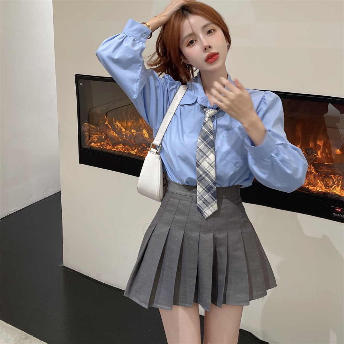 实拍实价 春夏学院风小清新减龄百搭领带衬衫女+高腰百褶裙JK套装