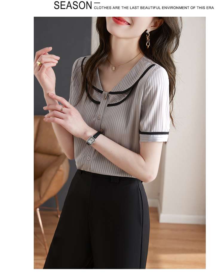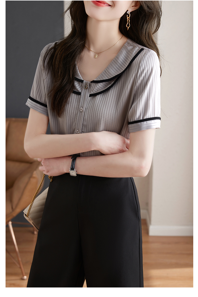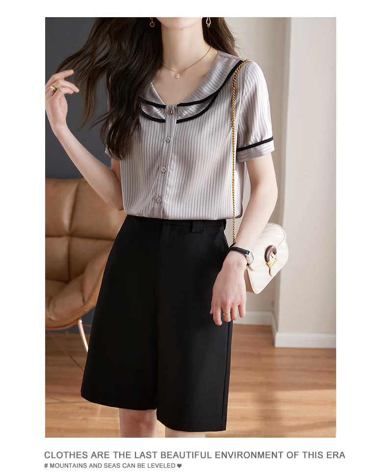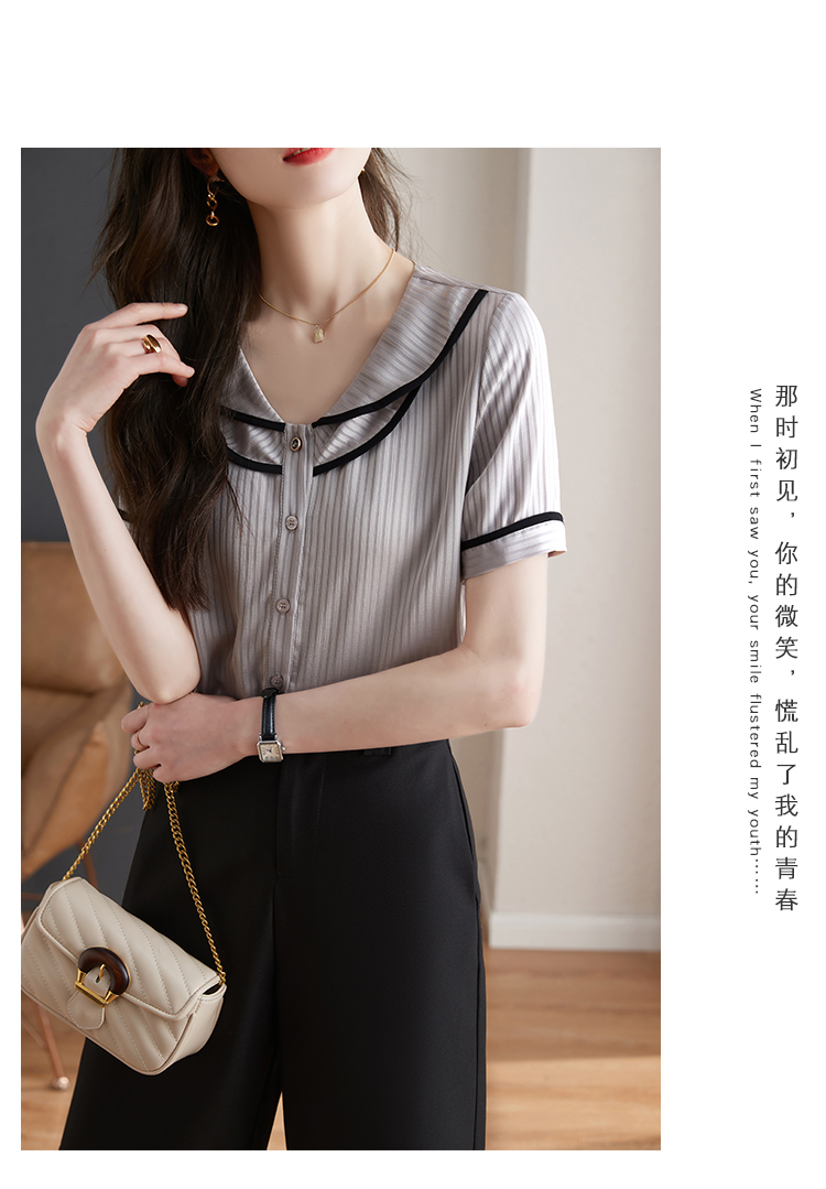 实拍◆◆2条纹休闲衬衣女2023夏新款短袖宽松设计感小众上衣