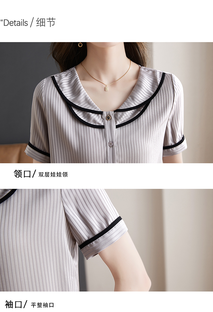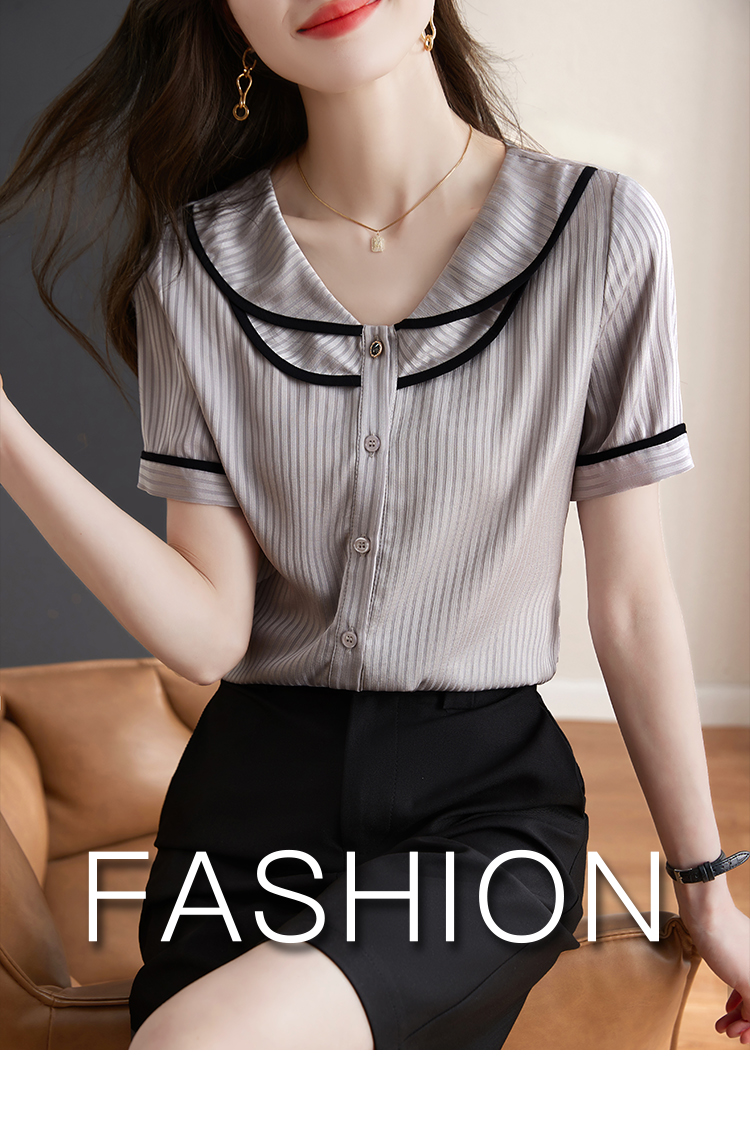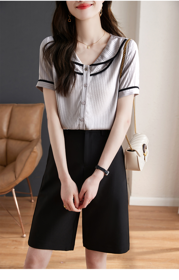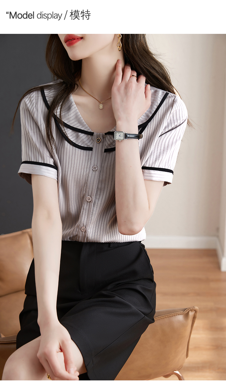 实拍◆◆2条纹休闲衬衣女2023夏新款短袖宽松设计感小众上衣