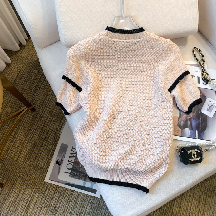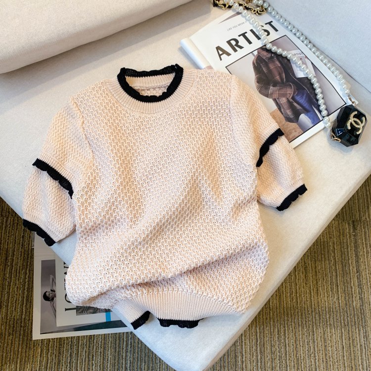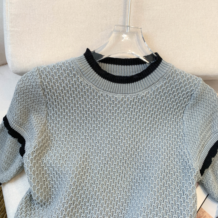 实拍◆ 2023夏季新款设计感修身短袖T恤薄款冰丝针织上衣女