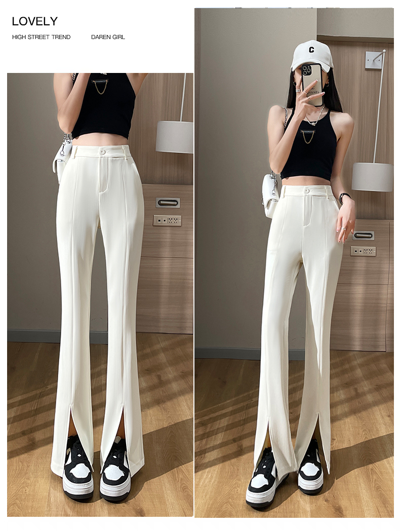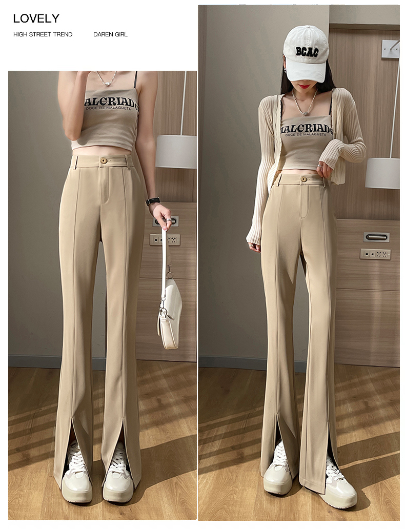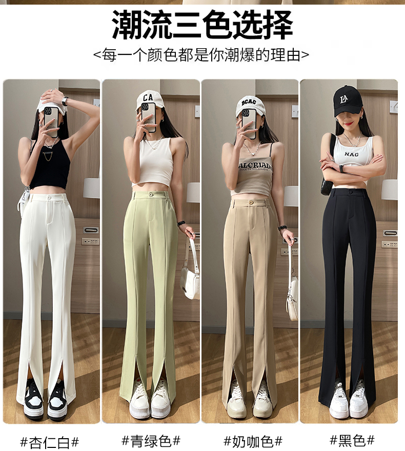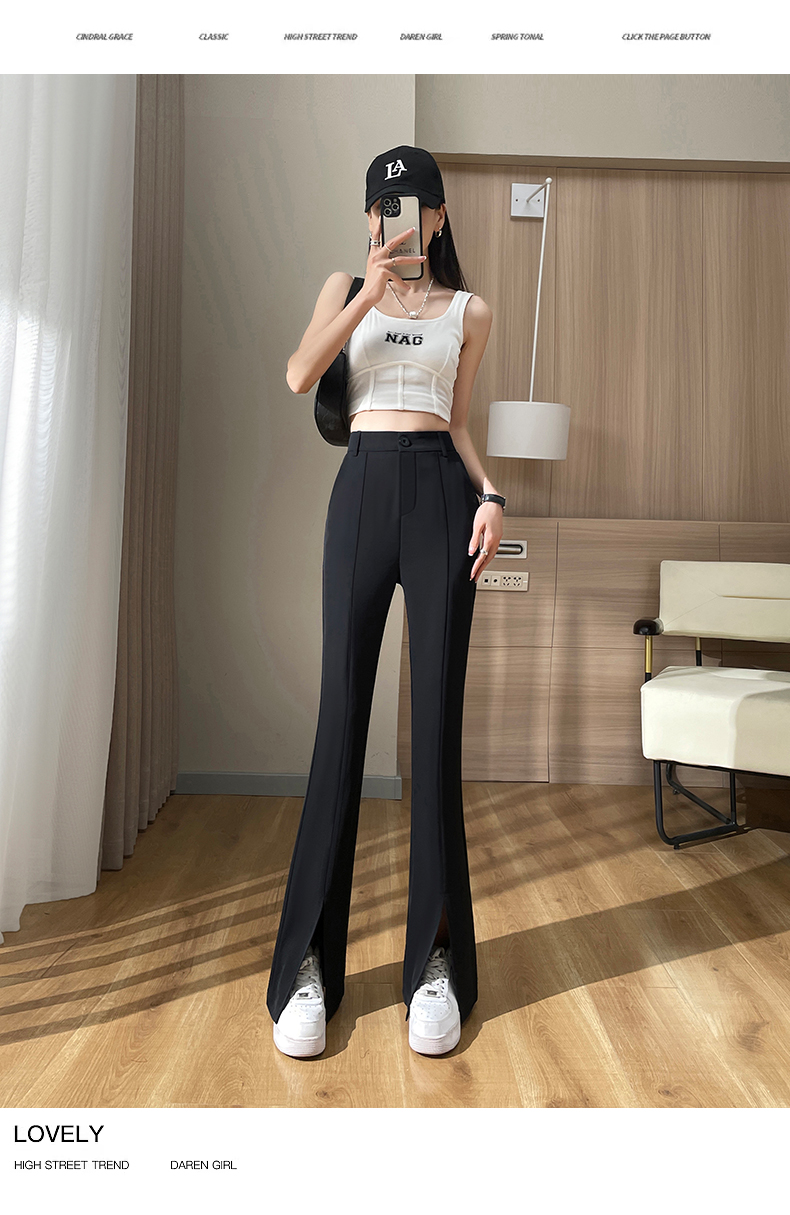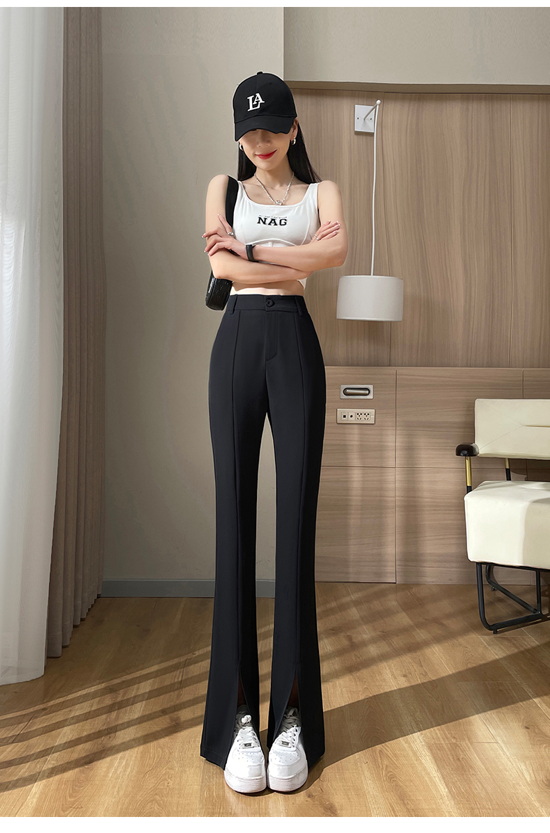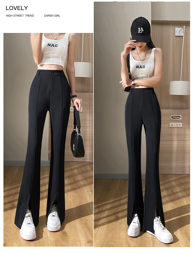 实拍#开叉喇叭裤女新款高腰显瘦微喇休闲西装裤窄版拖地裤小个子