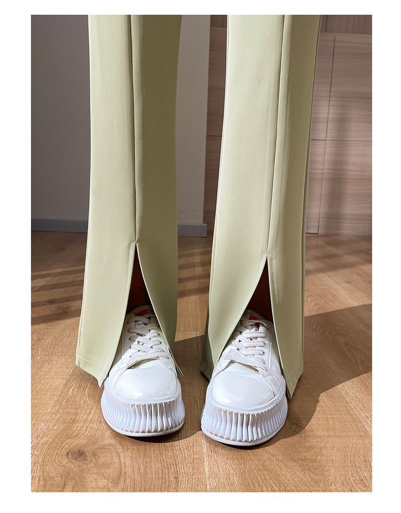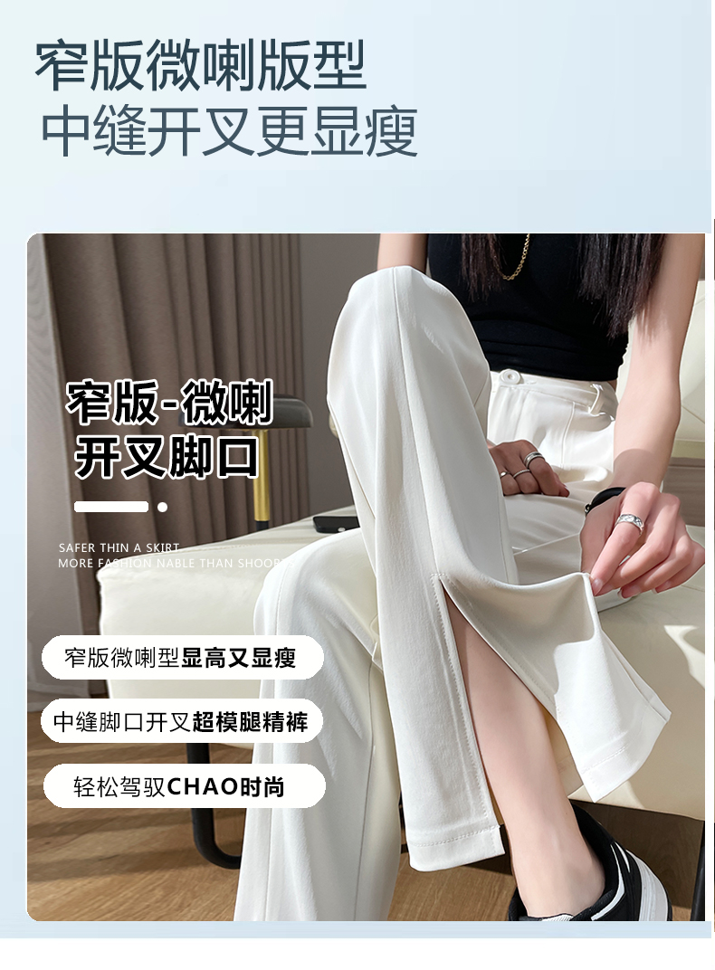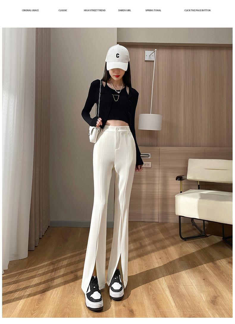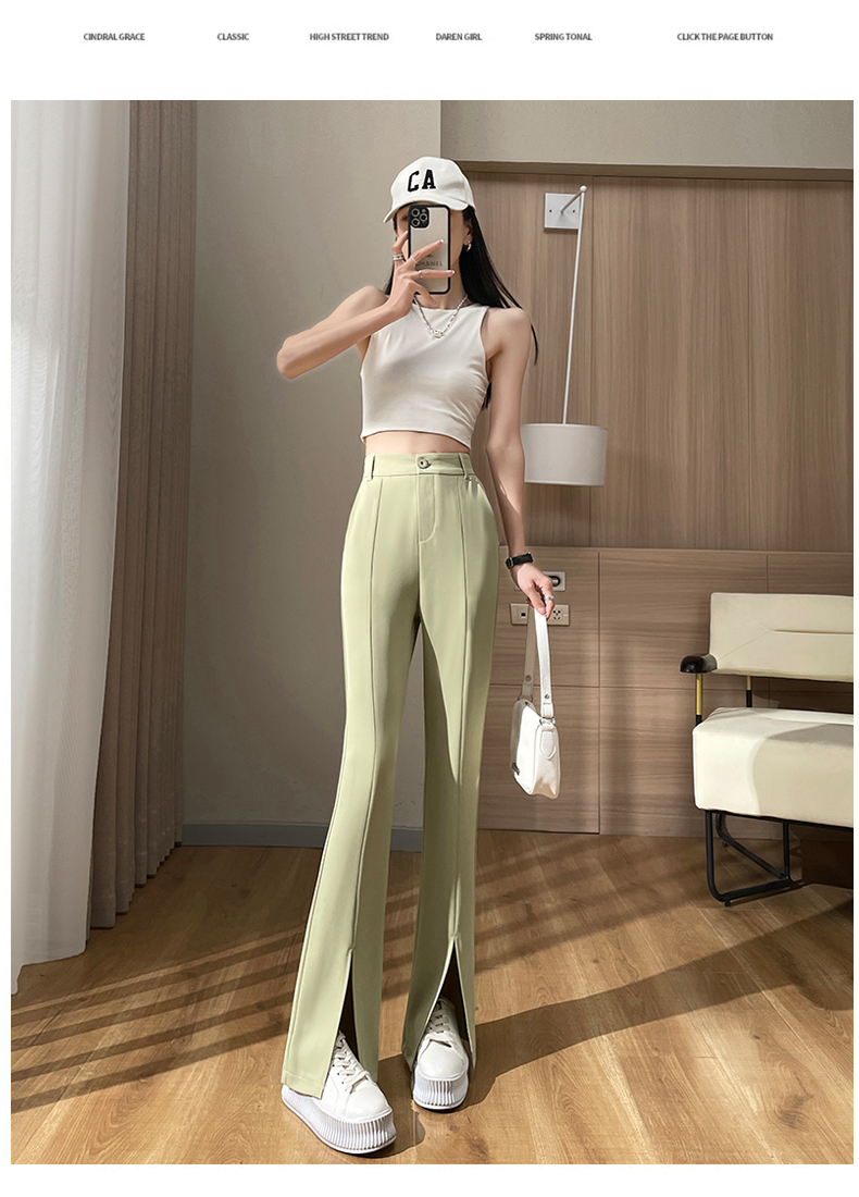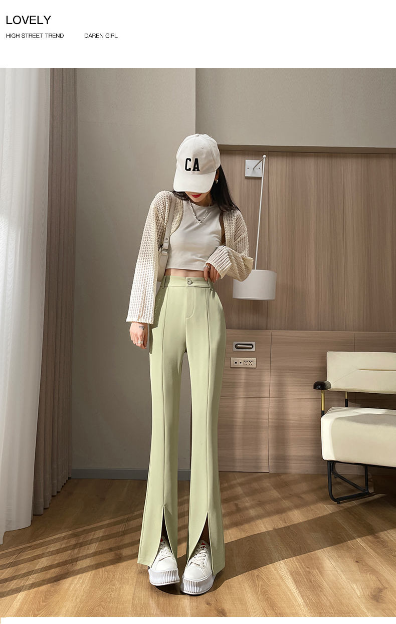 实拍#开叉喇叭裤女新款高腰显瘦微喇休闲西装裤窄版拖地裤小个子