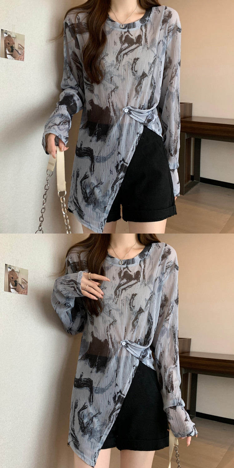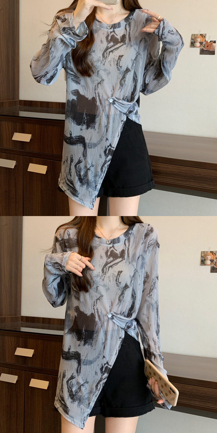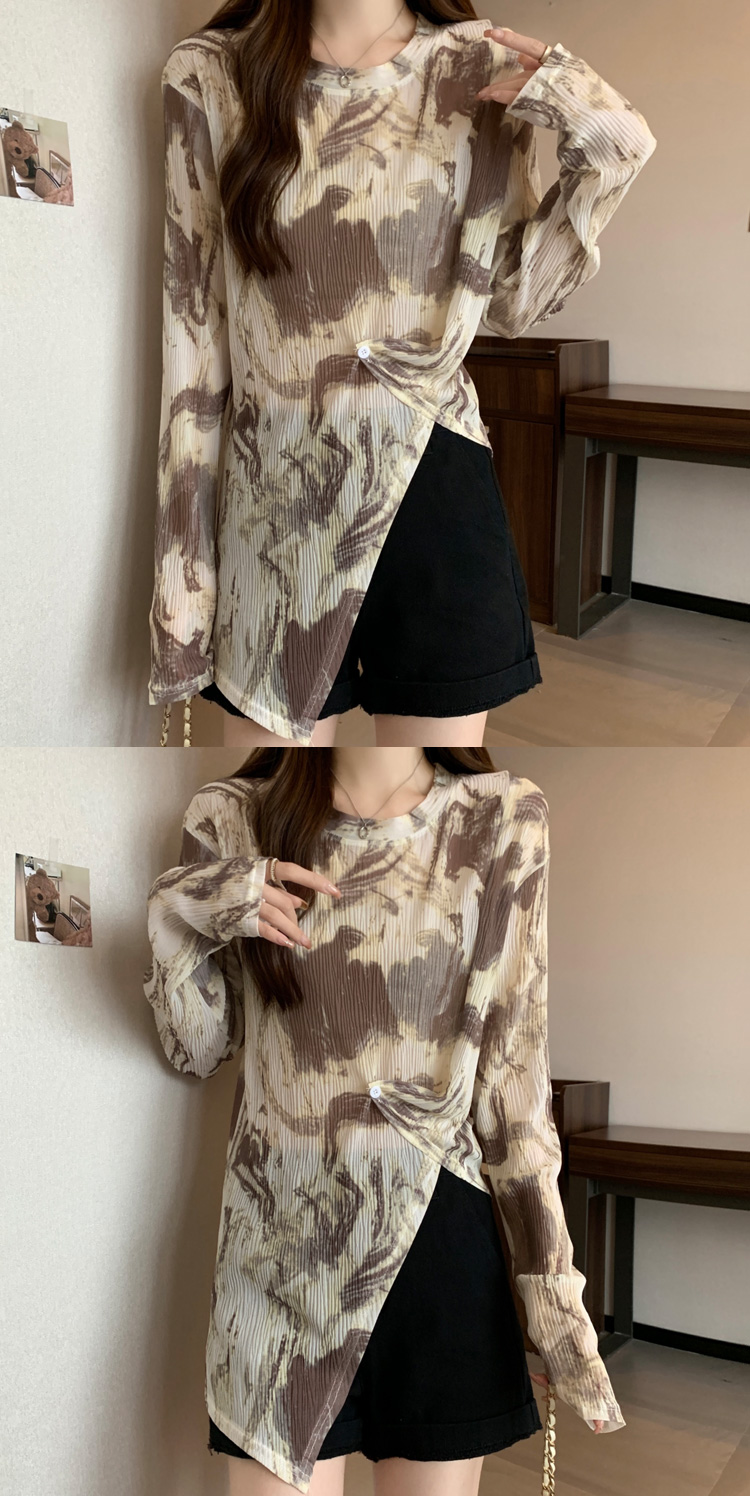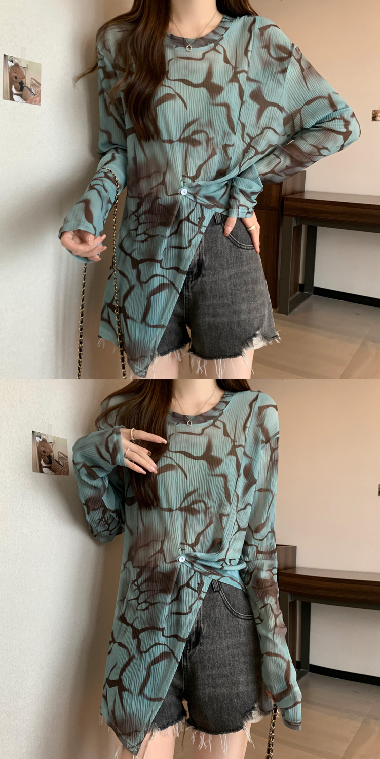 实拍大码扎染网纱打底衫女2023夏季新长款内搭防晒长袖t恤薄款