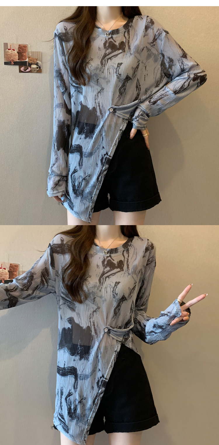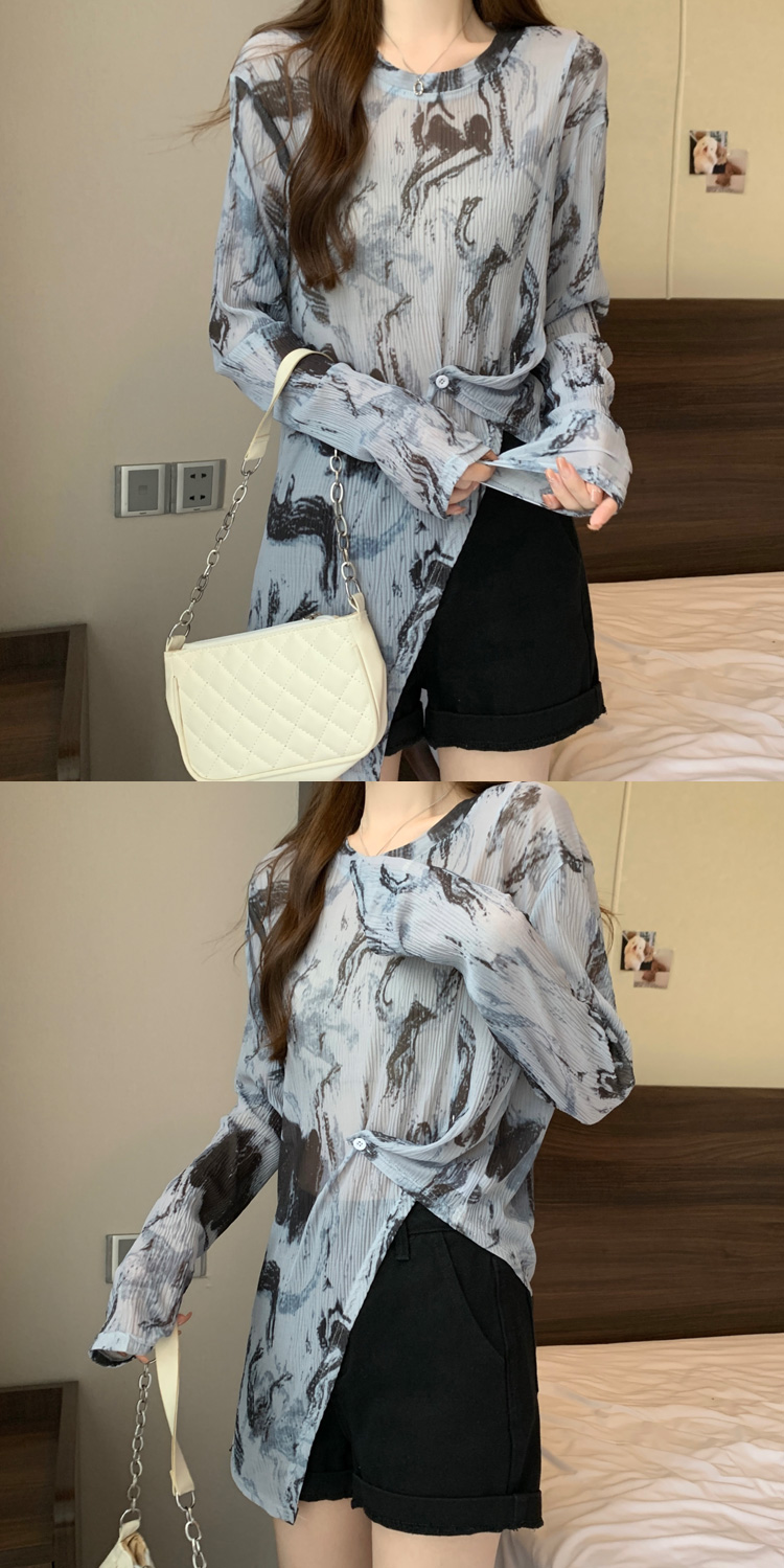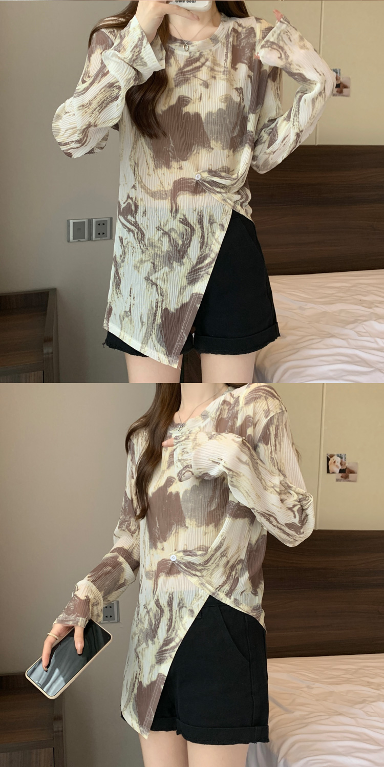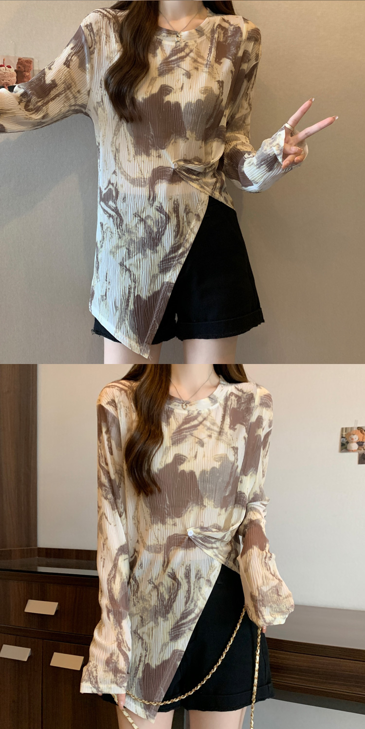 实拍大码扎染网纱打底衫女2023夏季新长款内搭防晒长袖t恤薄款