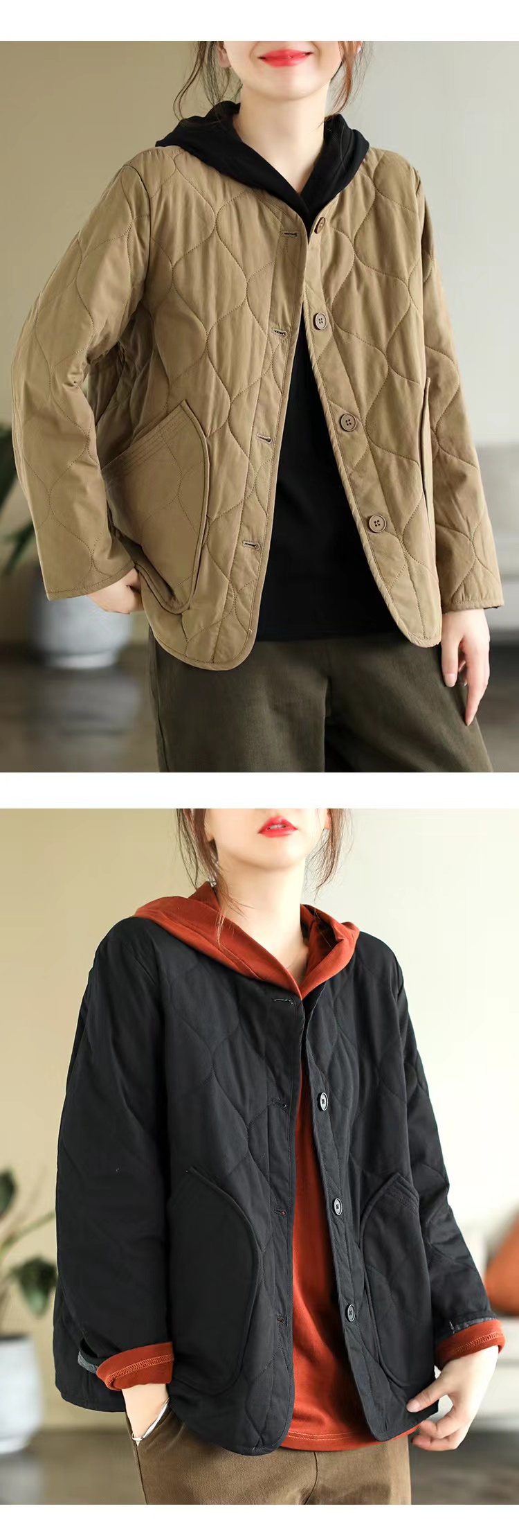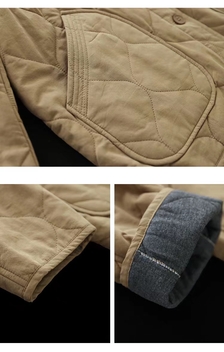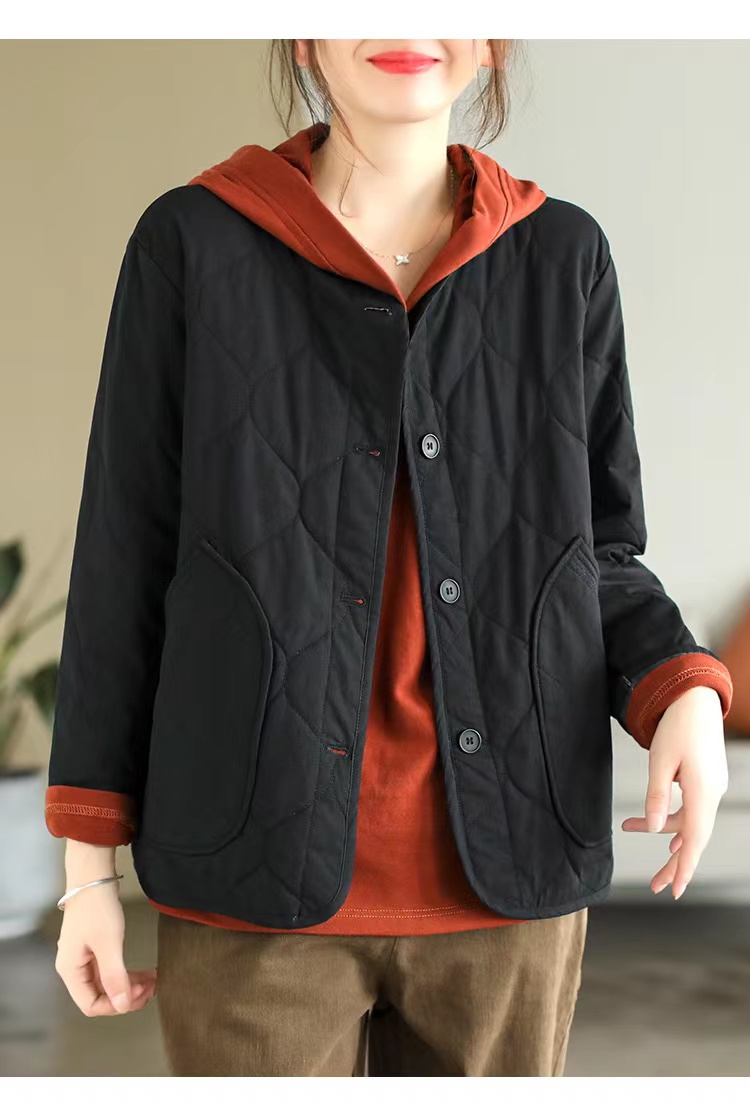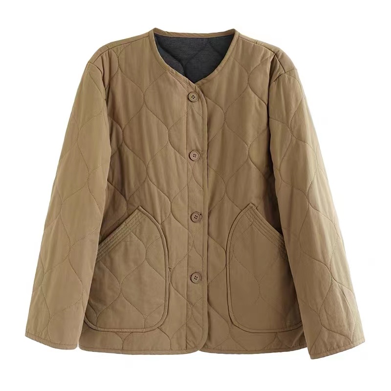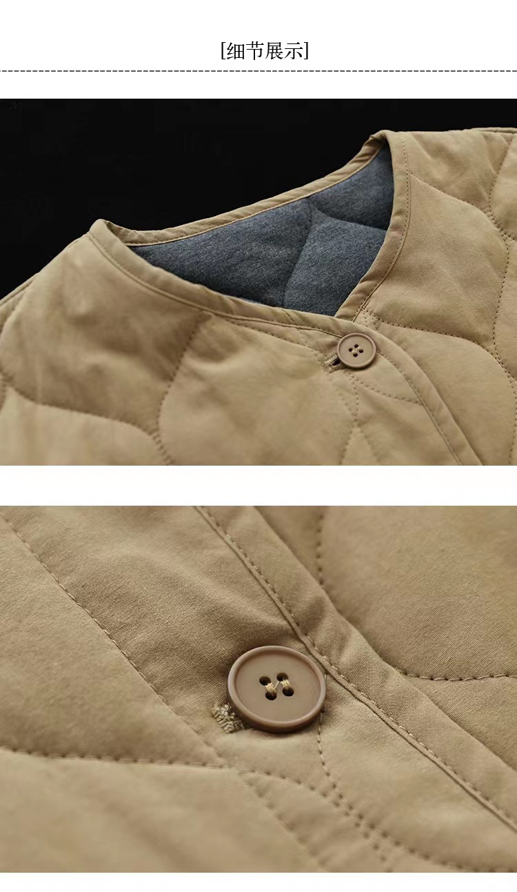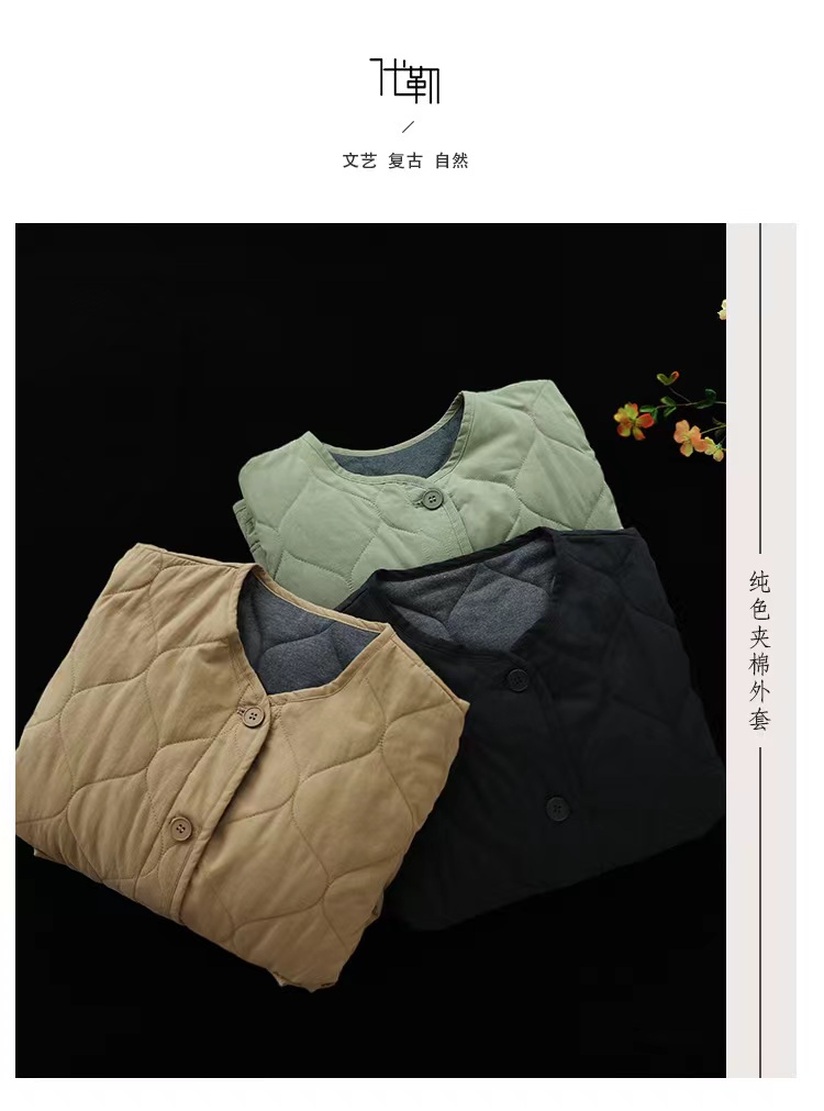 复古棉质冬季夹棉保暖长袖棉衣女2022新款纯色菱格棉袄短外套