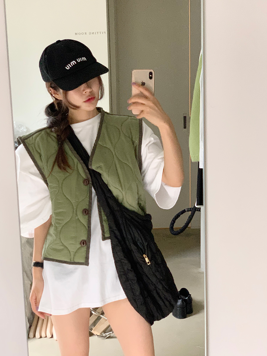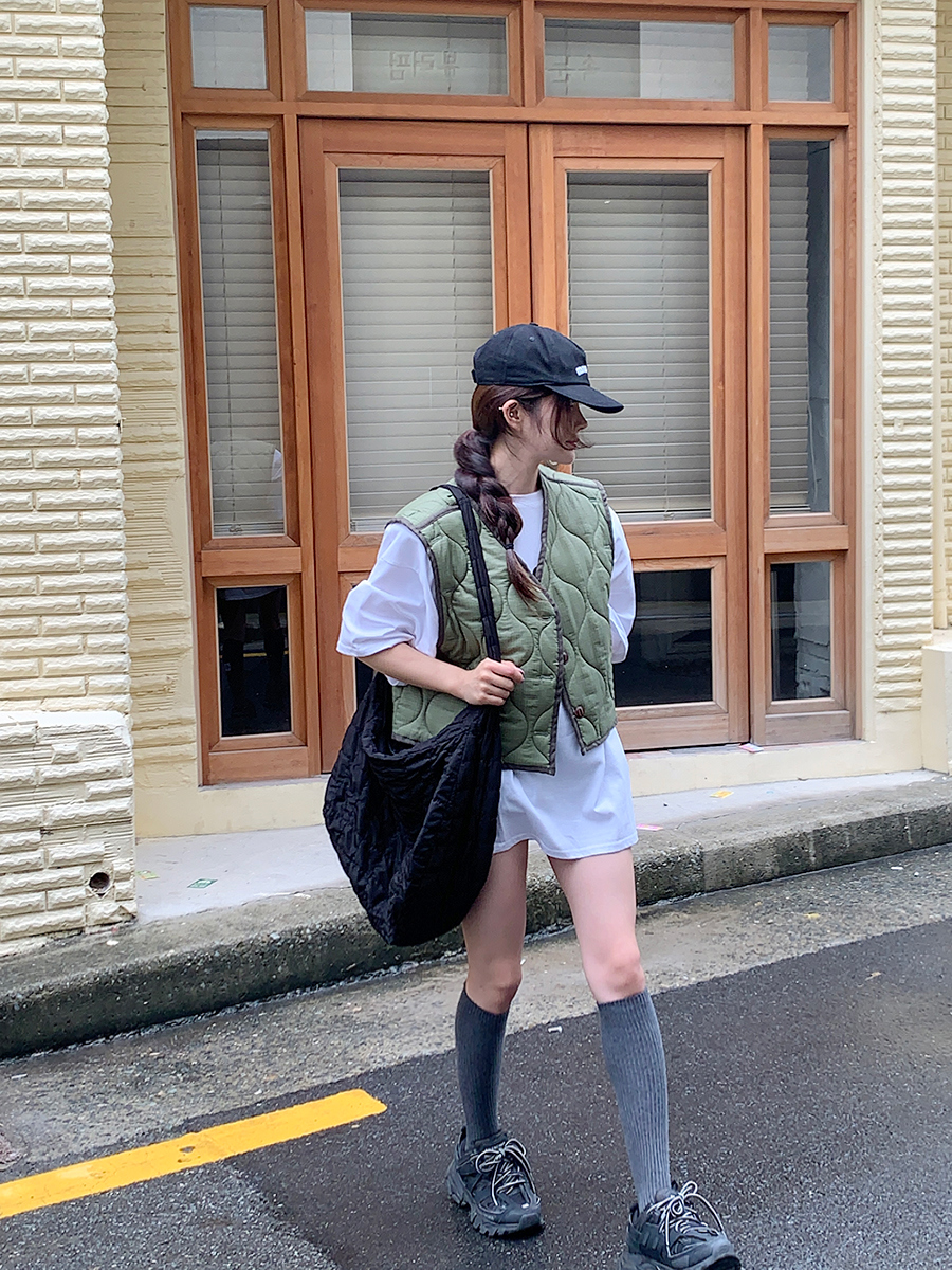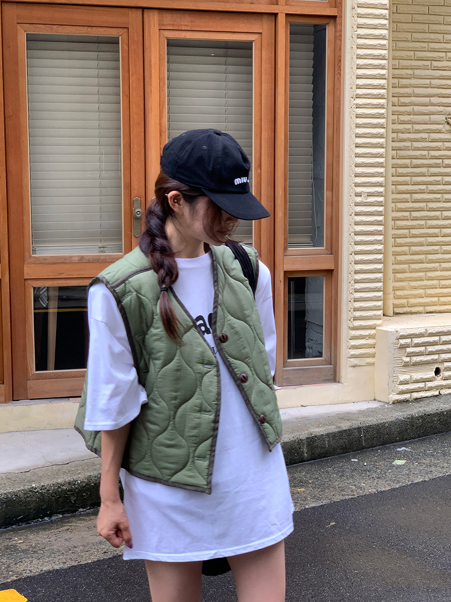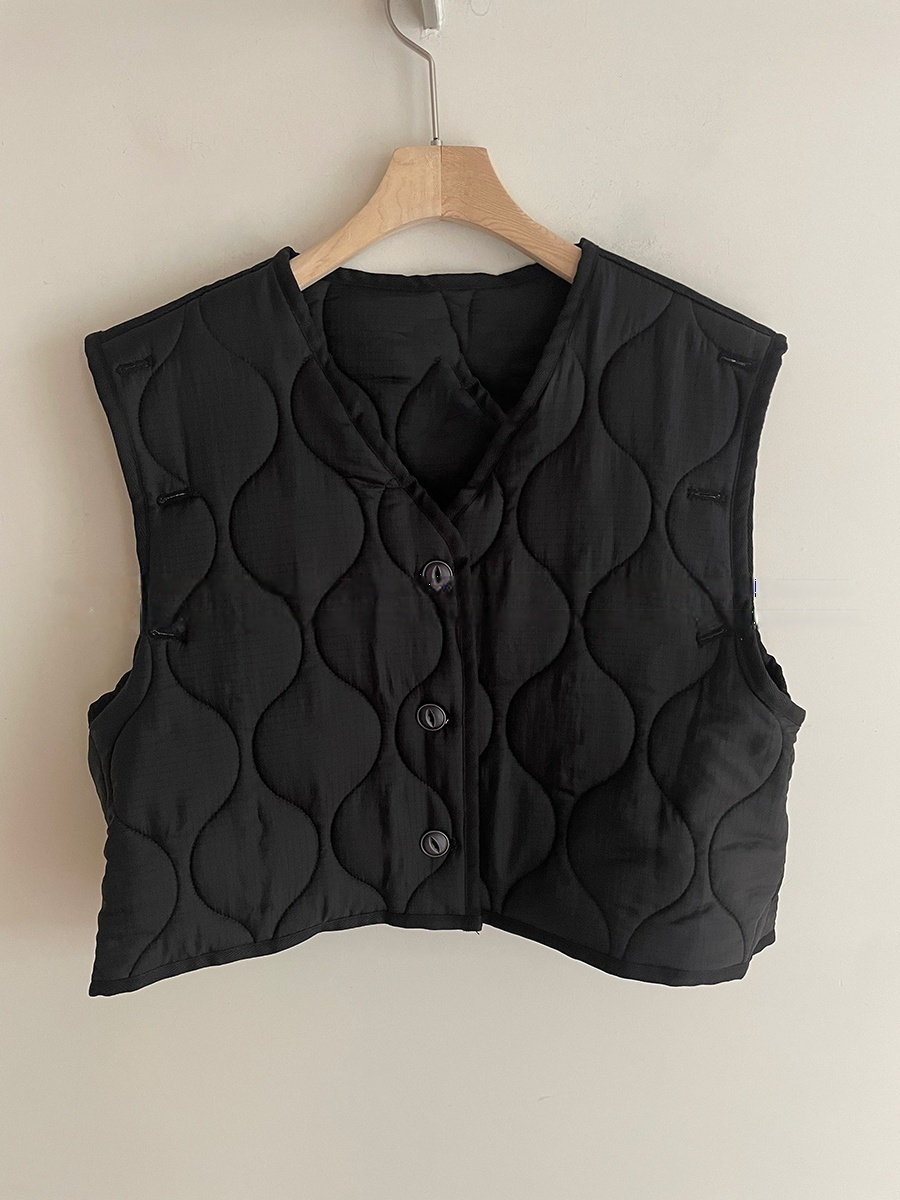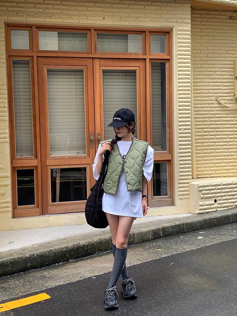 韩国东大门早秋新款设计感小众V领系扣宽松百搭休闲棉衣马甲