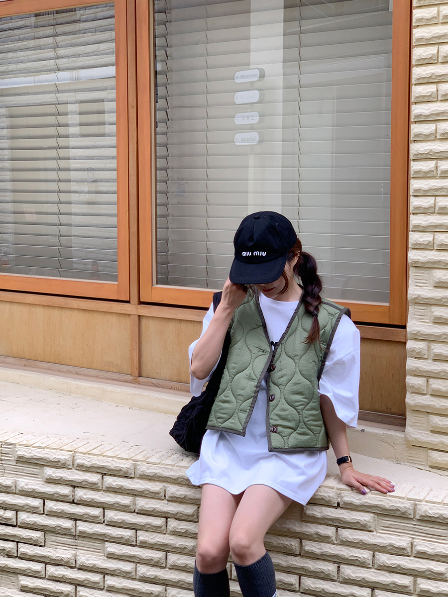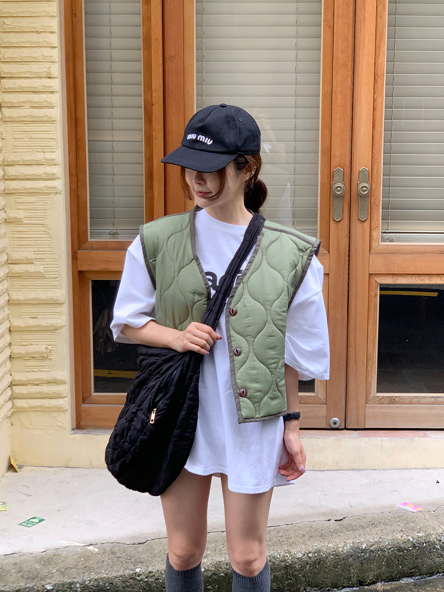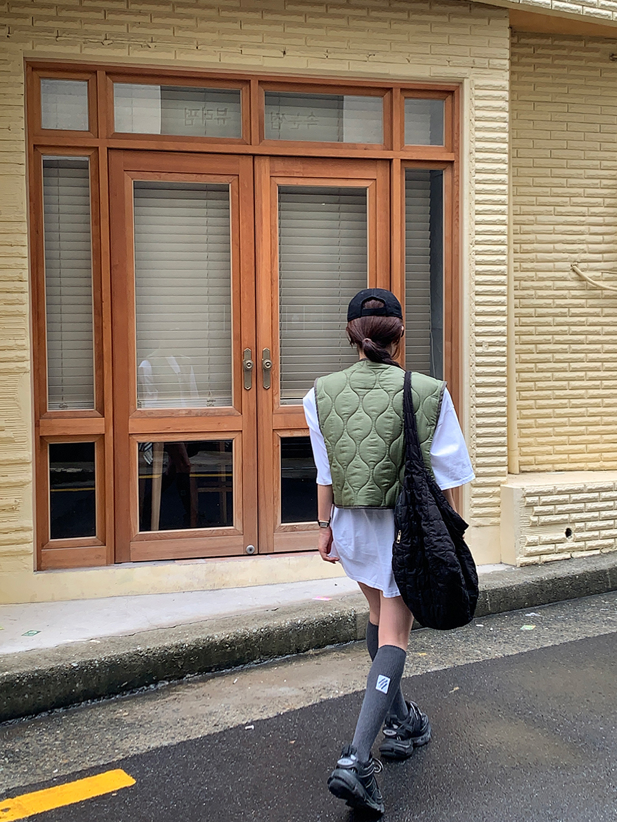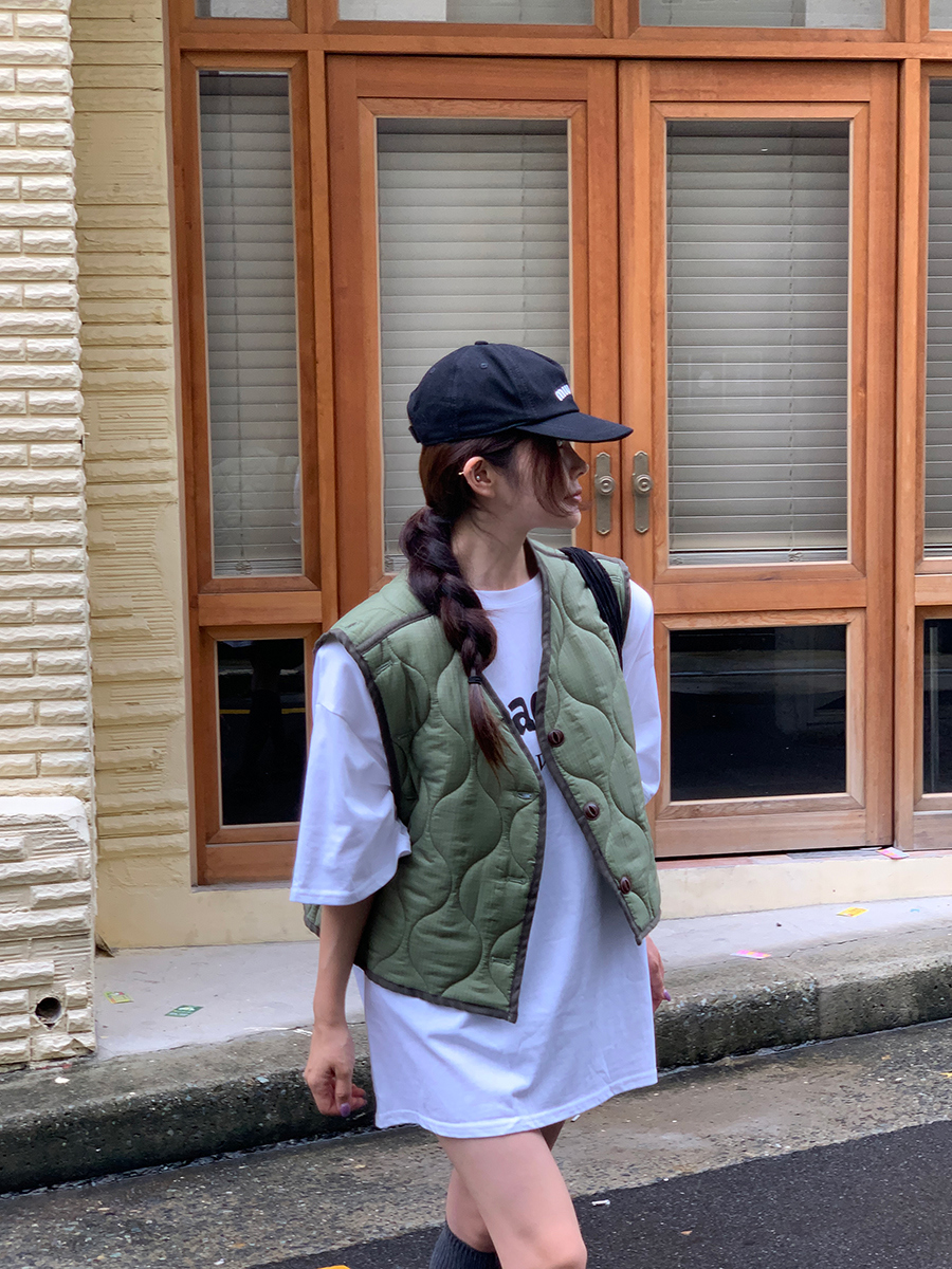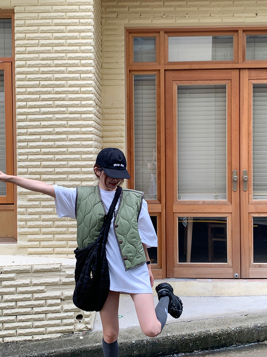 韩国东大门早秋新款设计感小众V领系扣宽松百搭休闲棉衣马甲