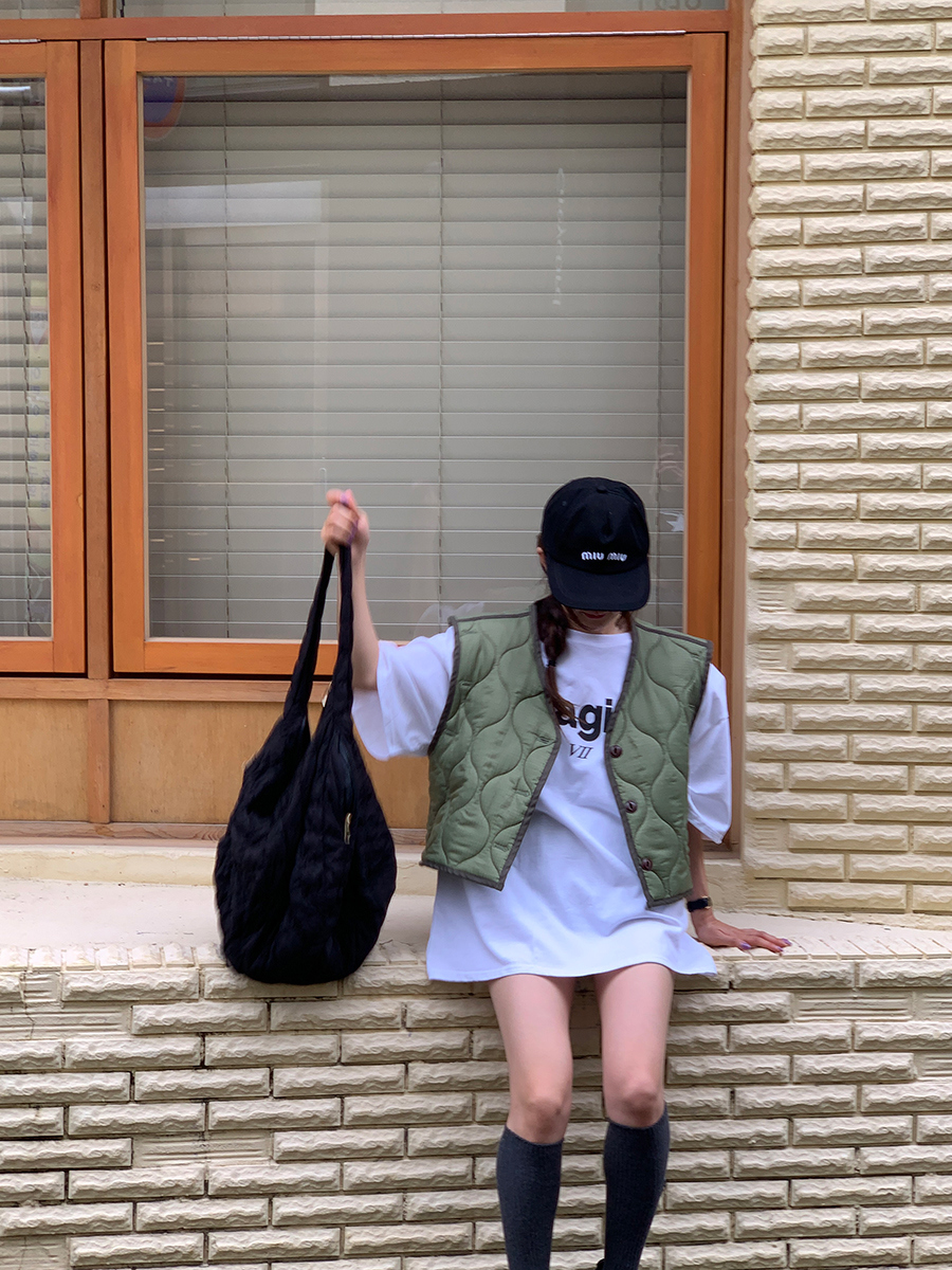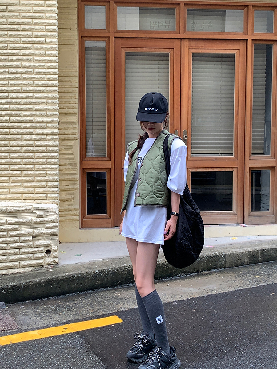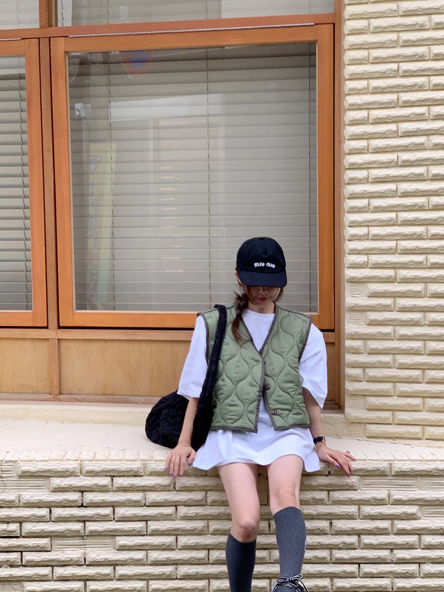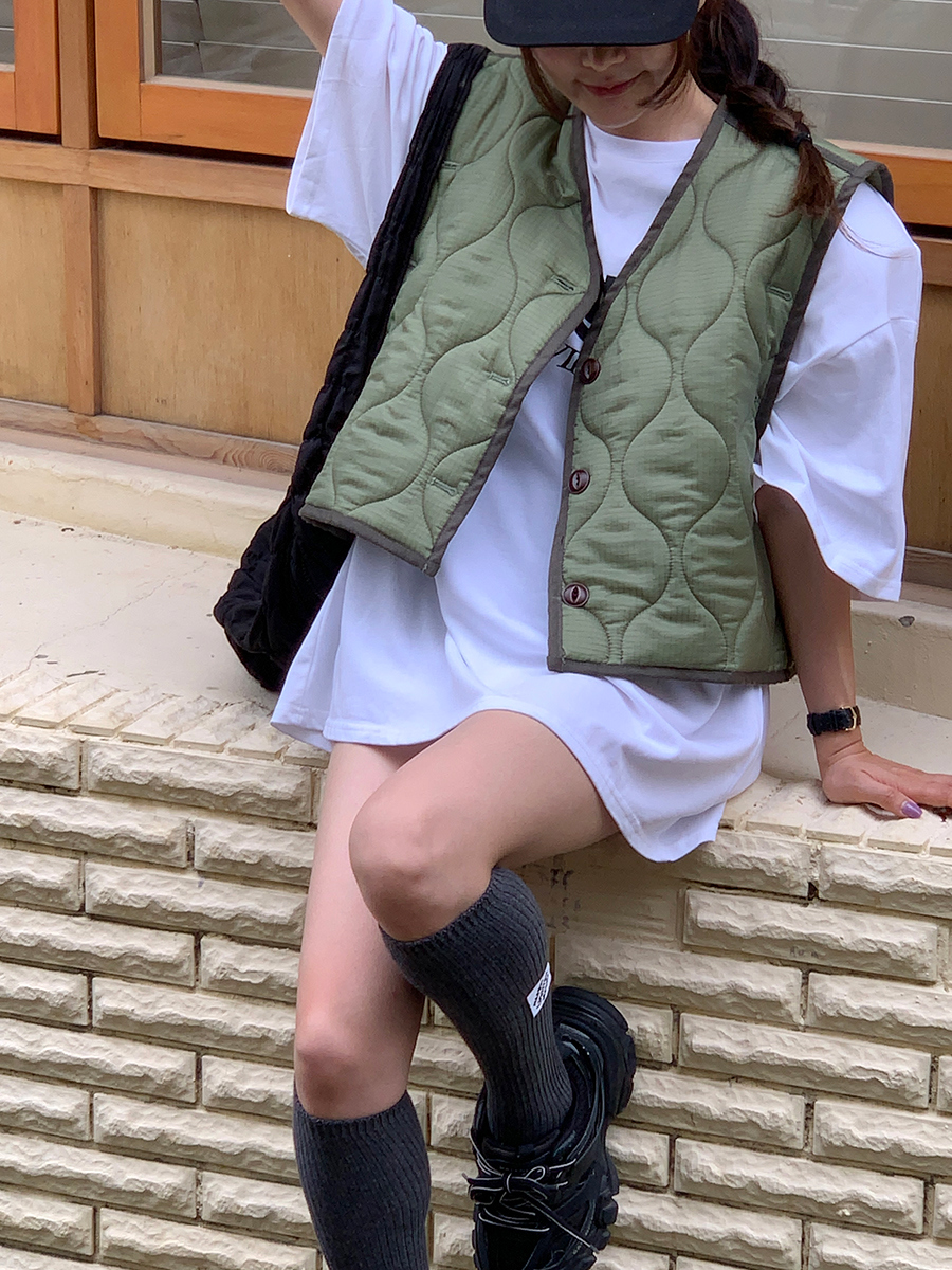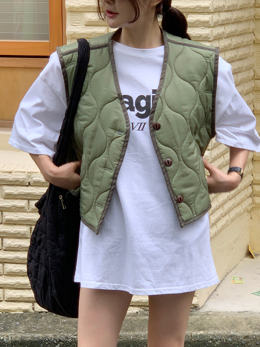 韩国东大门早秋新款设计感小众V领系扣宽松百搭休闲棉衣马甲