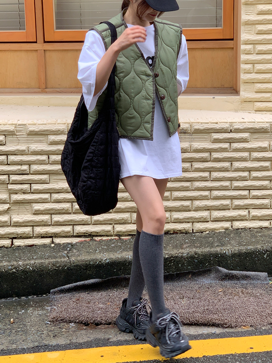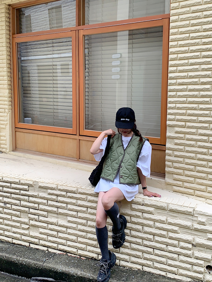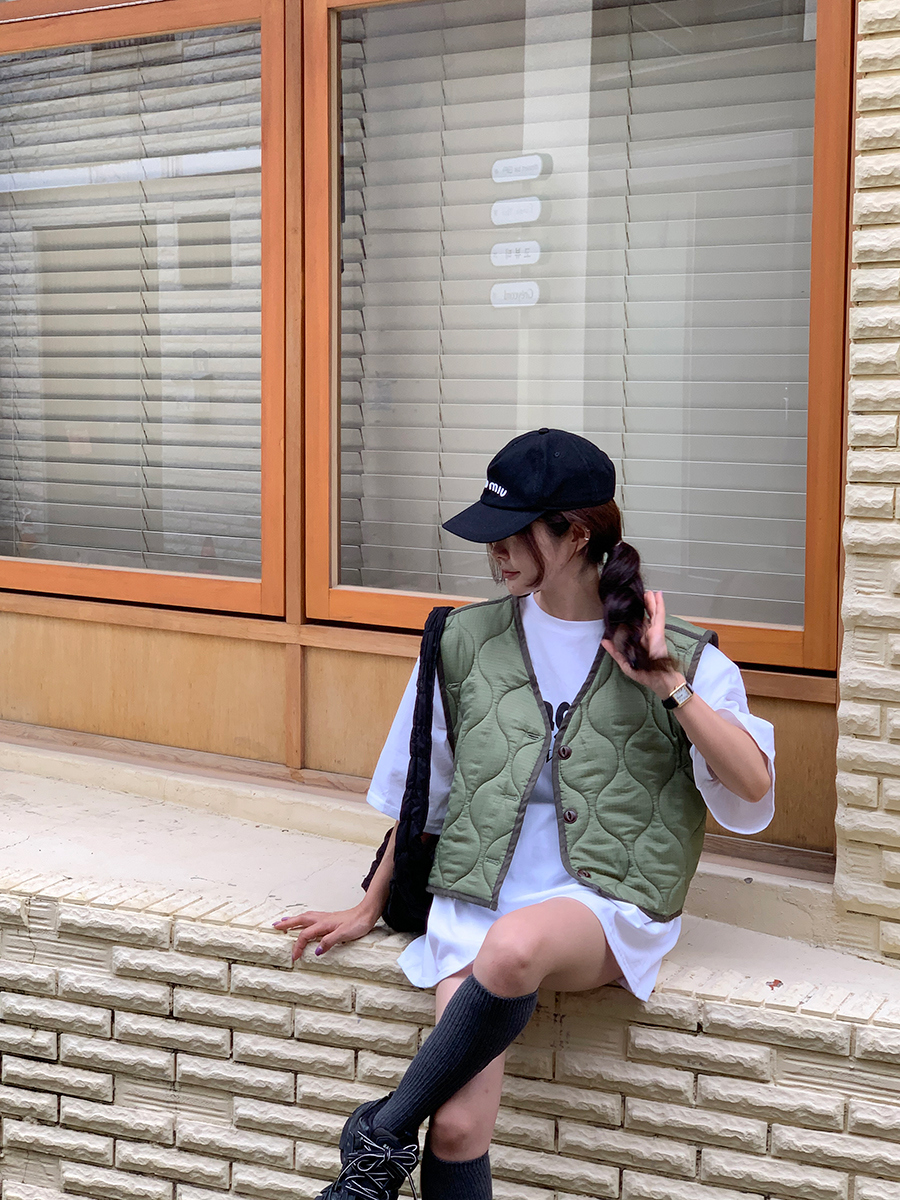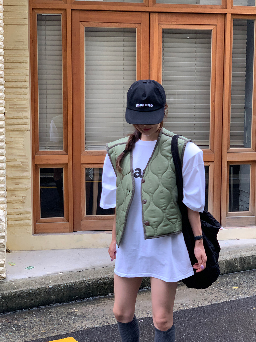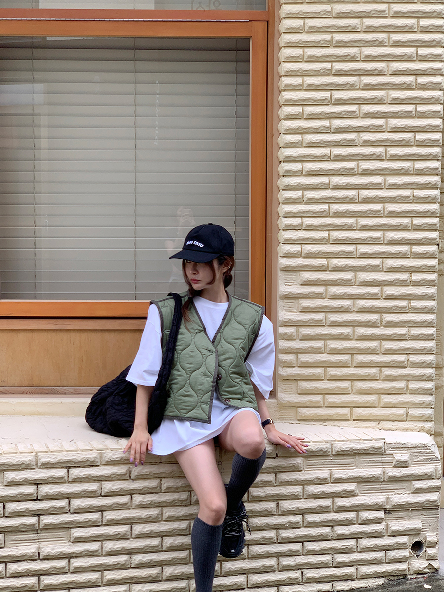 韩国东大门早秋新款设计感小众V领系扣宽松百搭休闲棉衣马甲