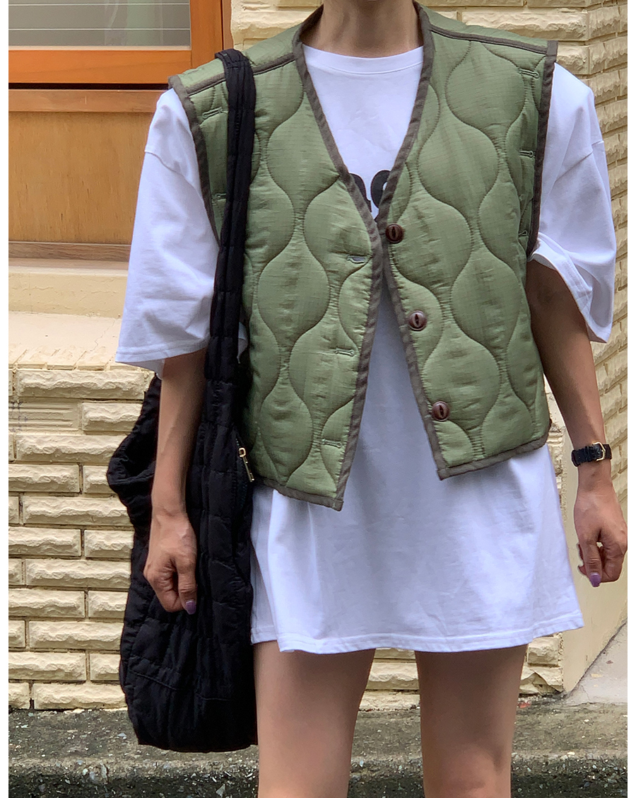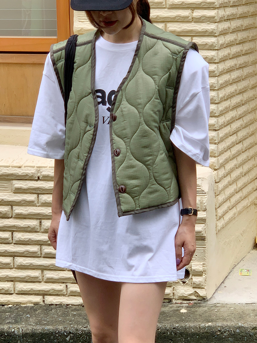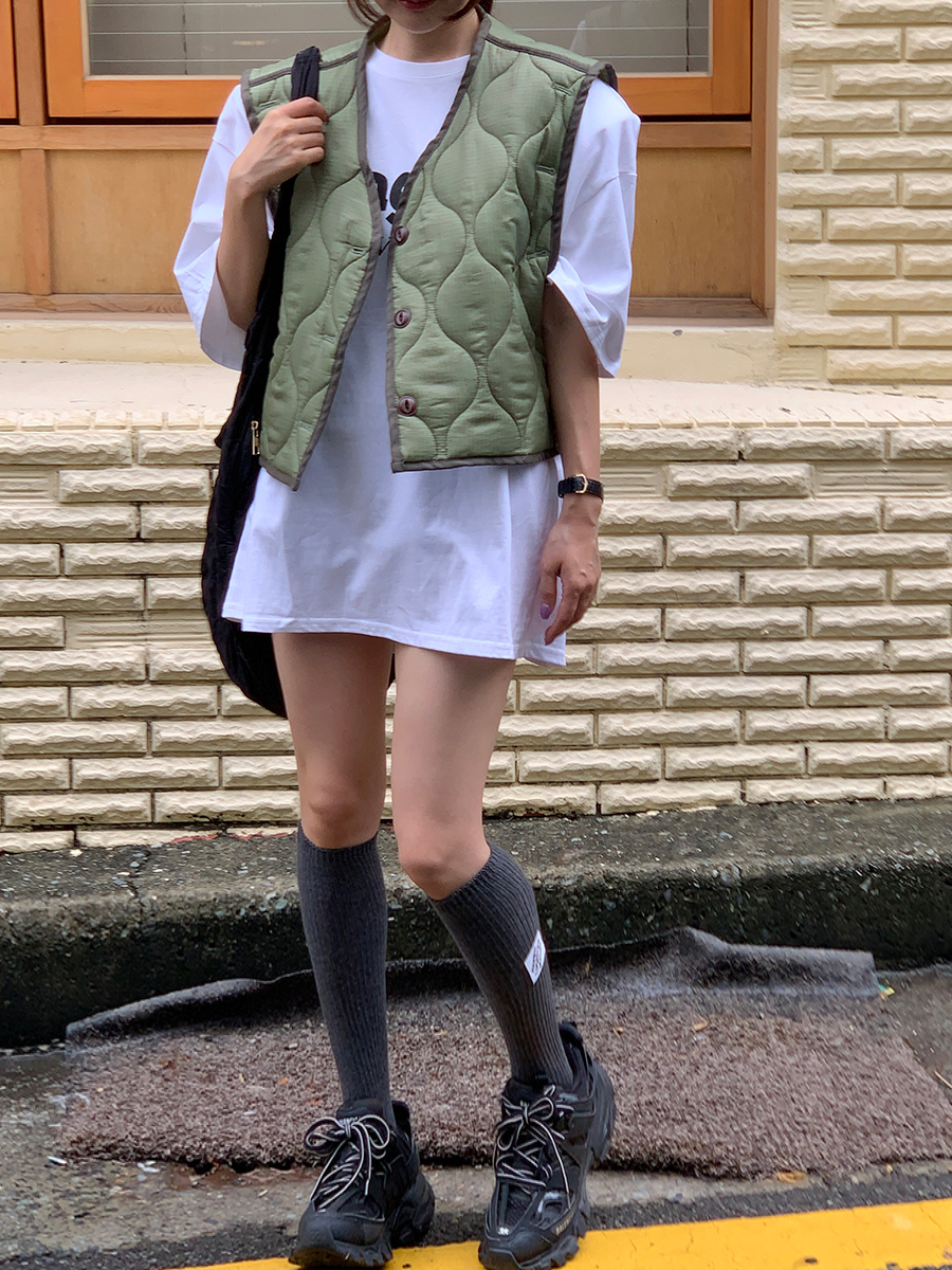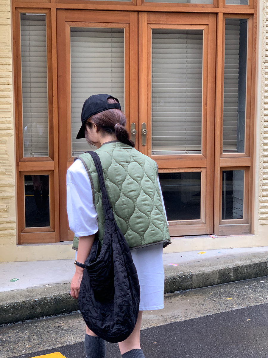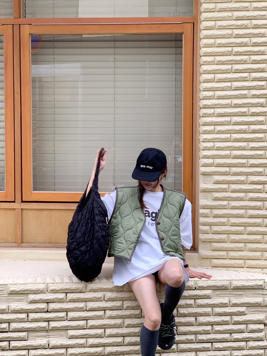 韩国东大门早秋新款设计感小众V领系扣宽松百搭休闲棉衣马甲