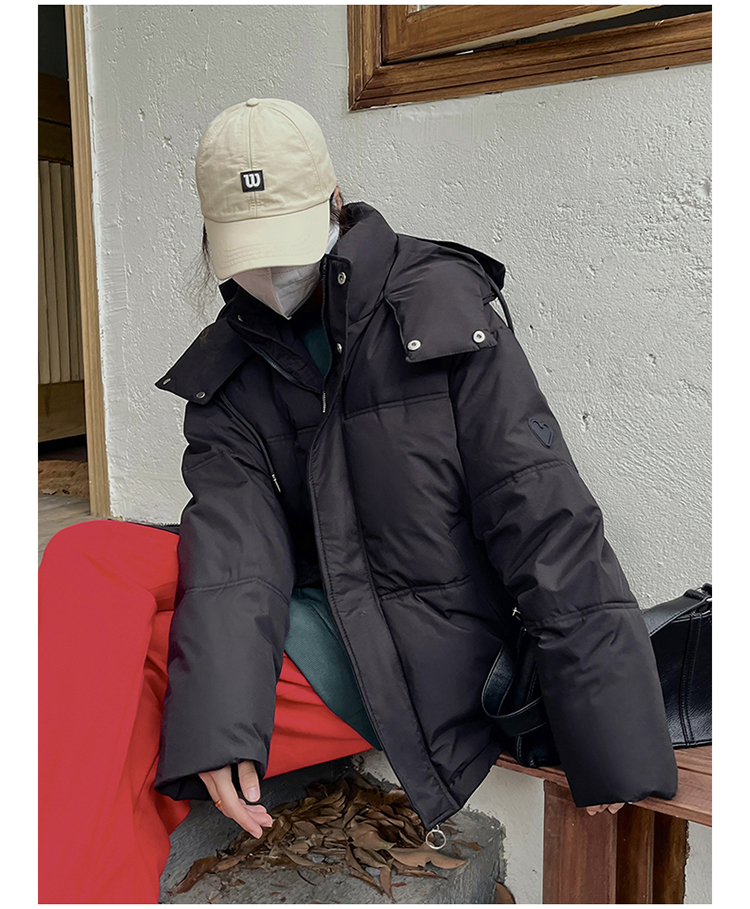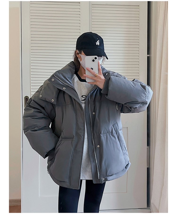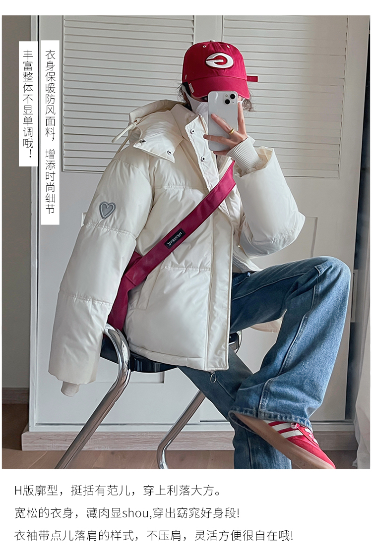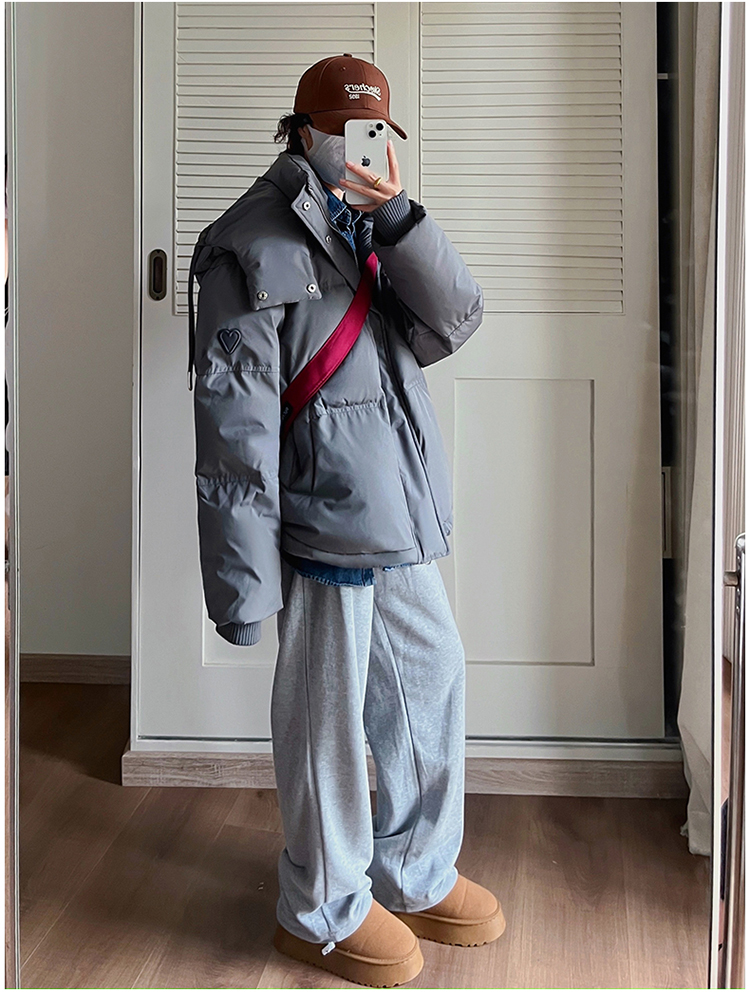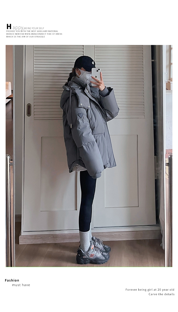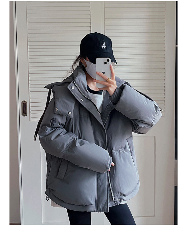 实拍灰色爱心短款羽绒棉服23年新款男女情侣加厚小众设计面包外套
