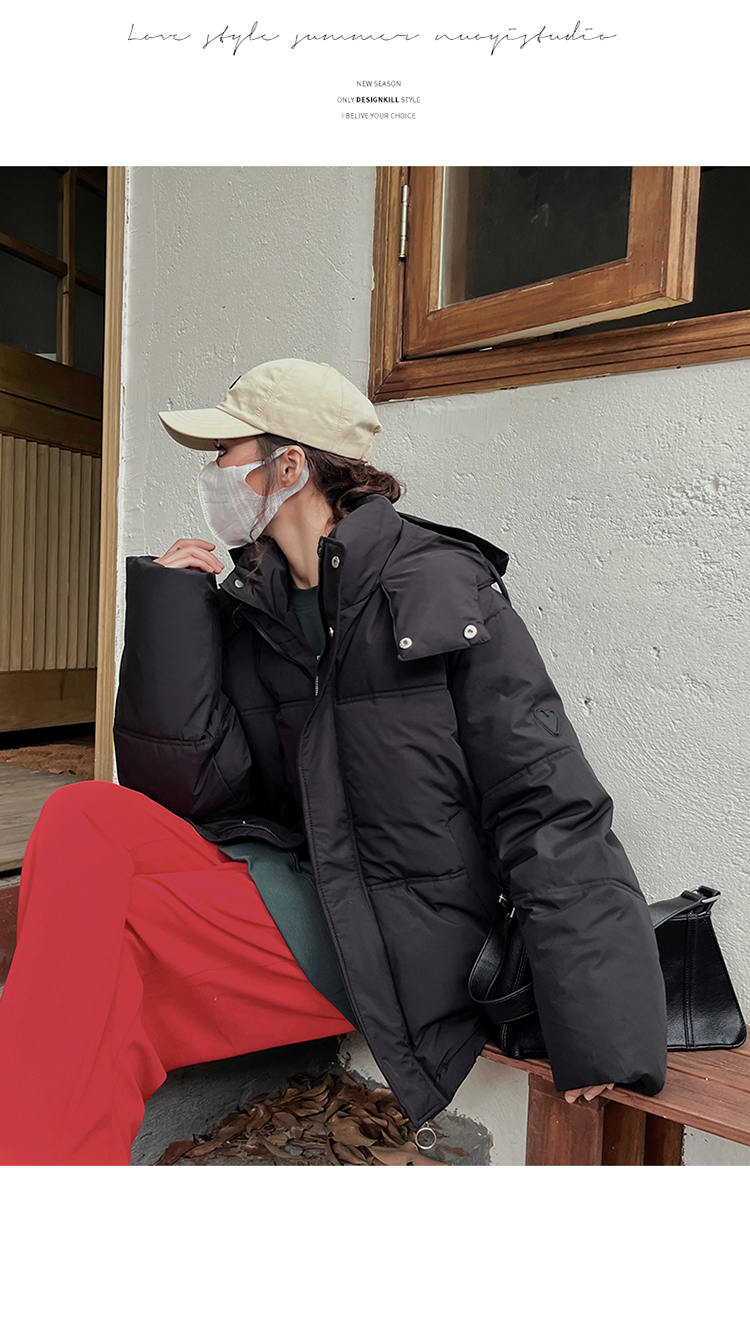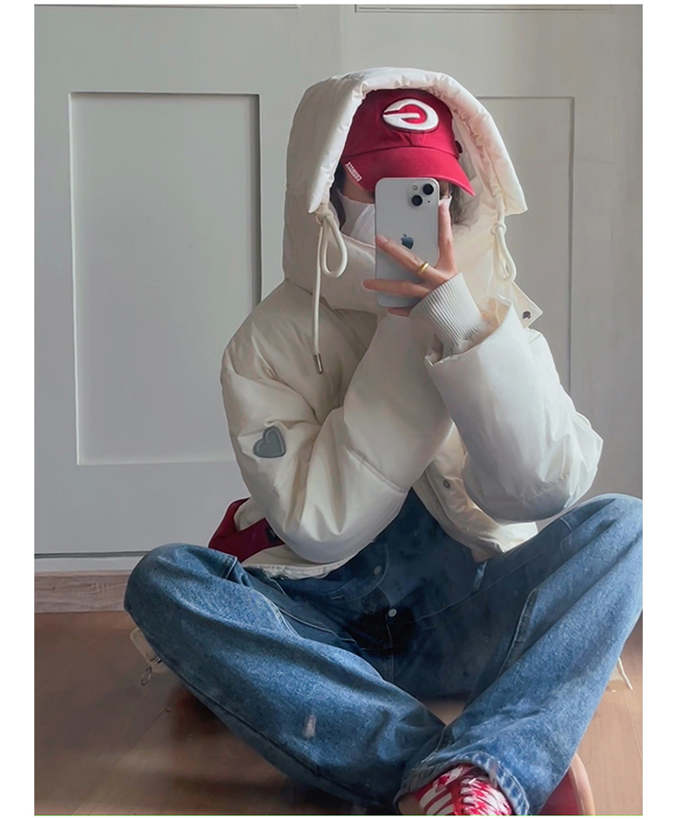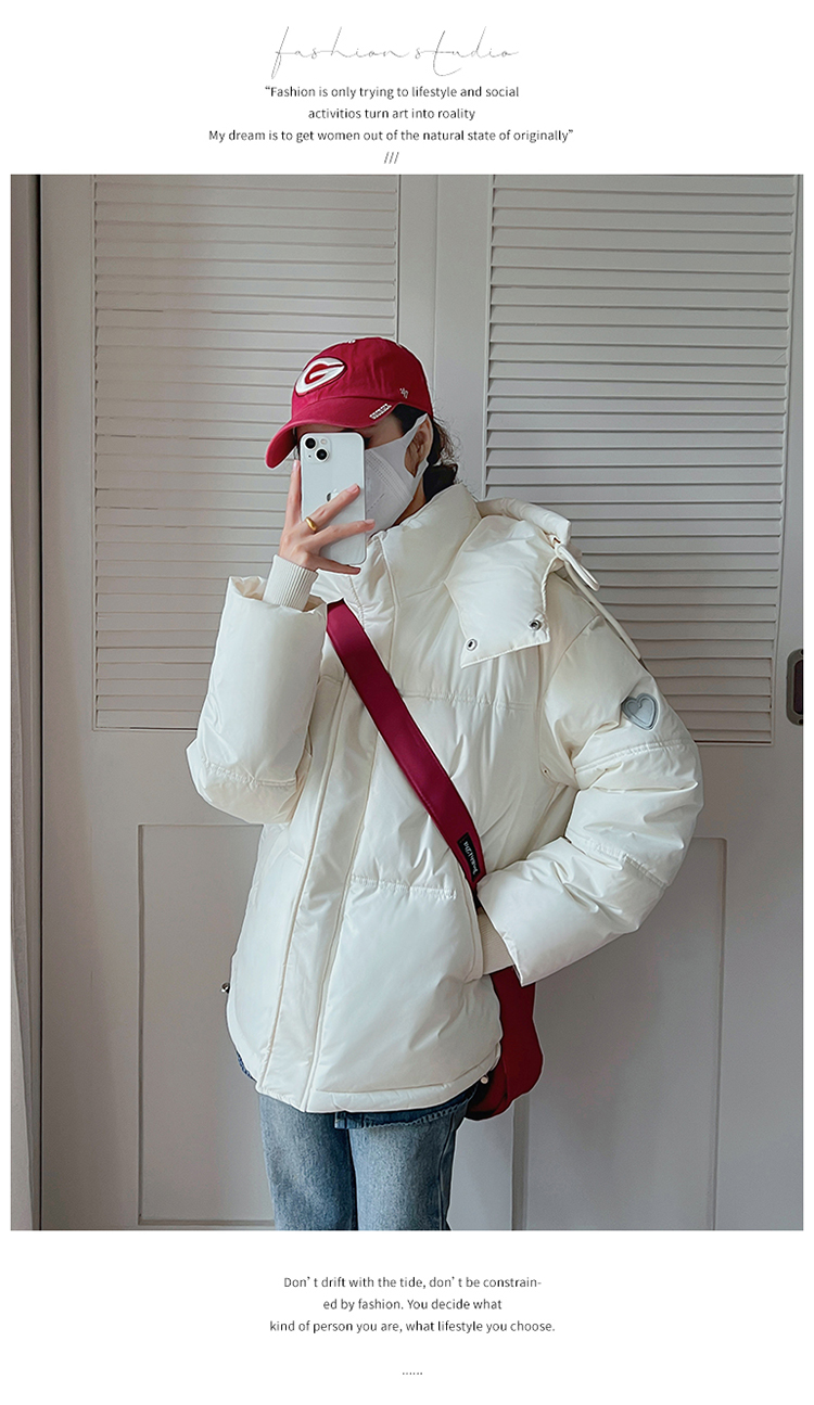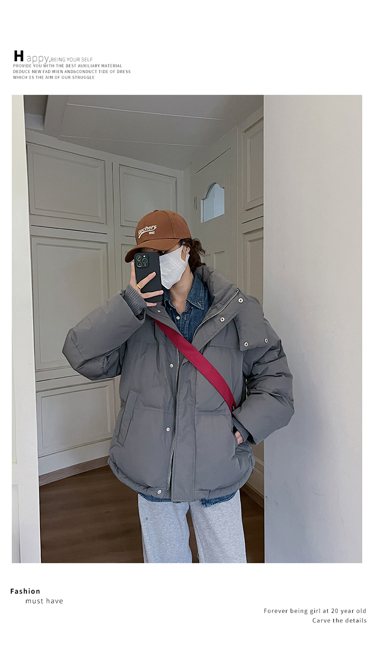 实拍灰色爱心短款羽绒棉服23年新款男女情侣加厚小众设计面包外套