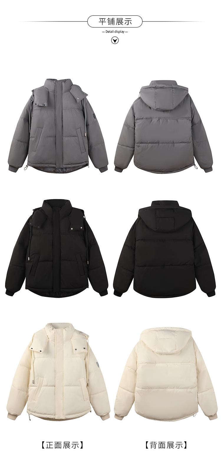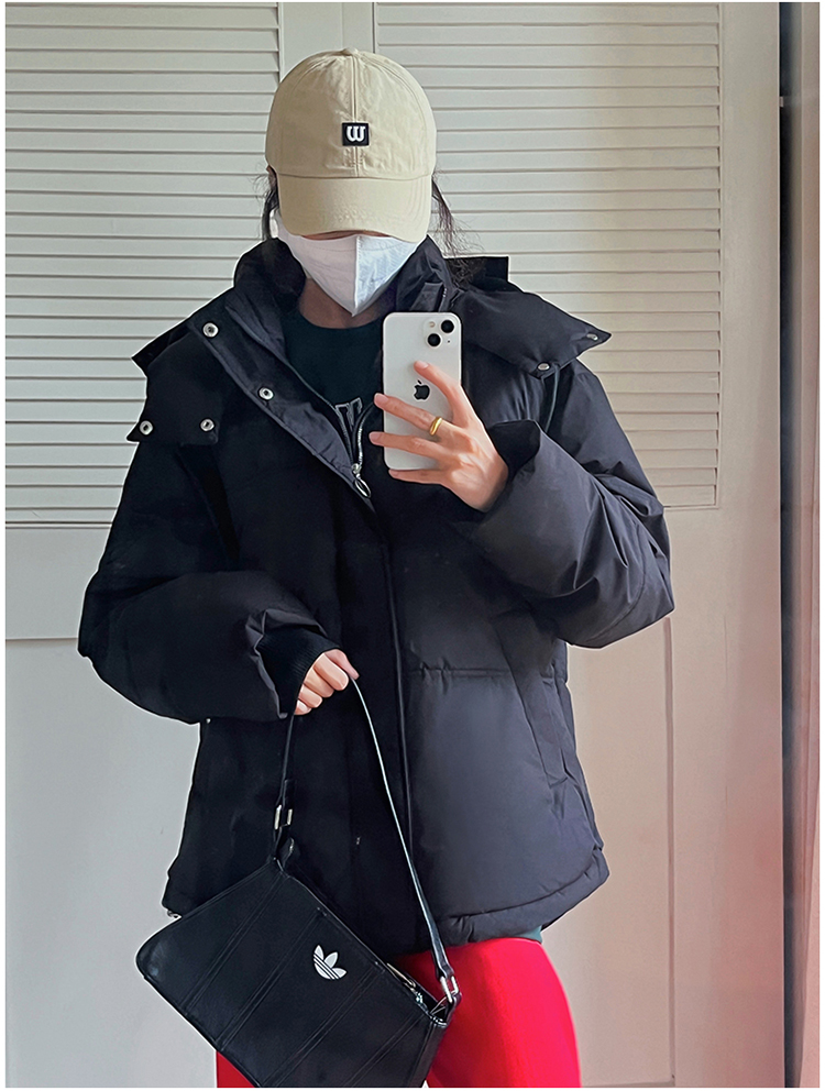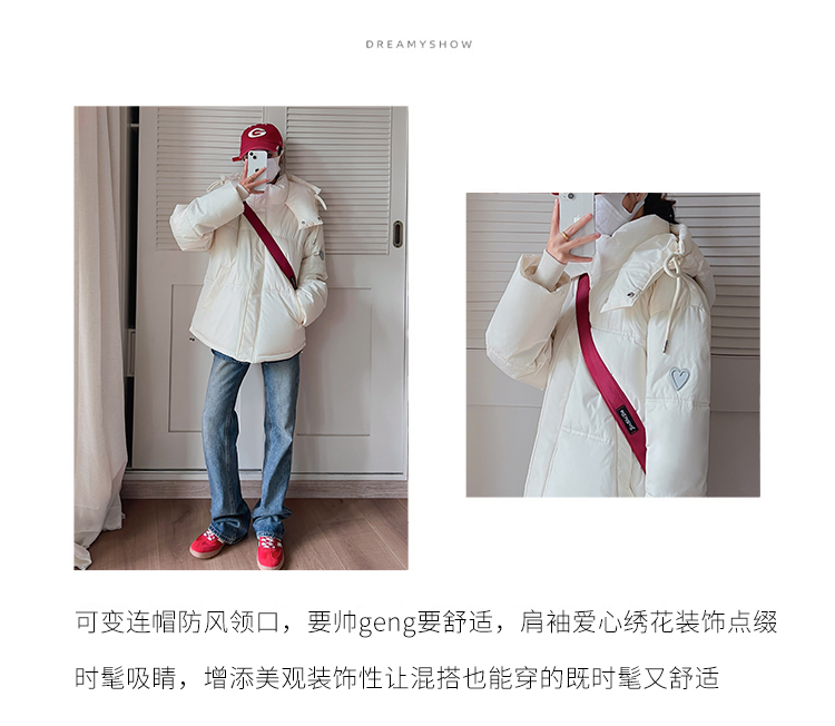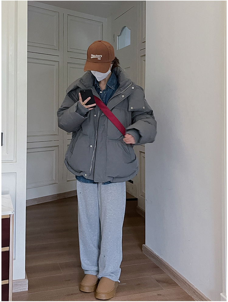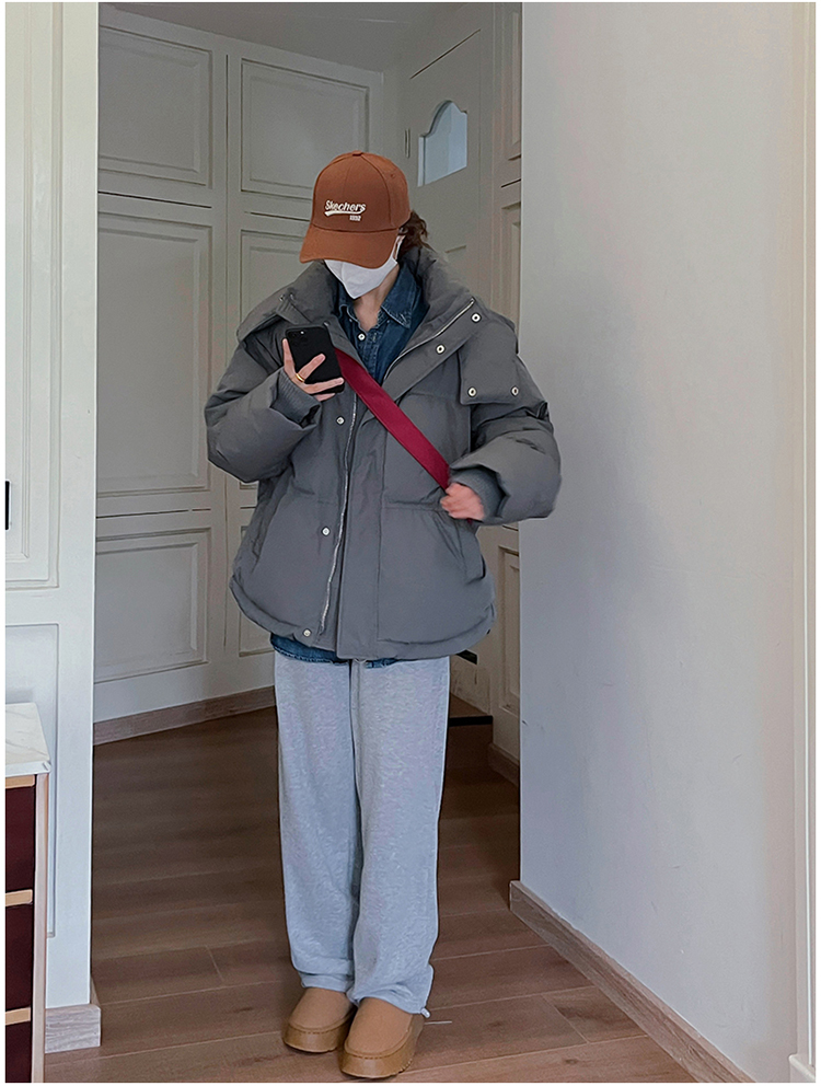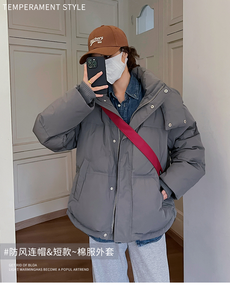 实拍灰色爱心短款羽绒棉服23年新款男女情侣加厚小众设计面包外套