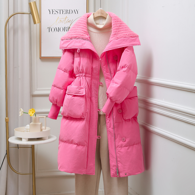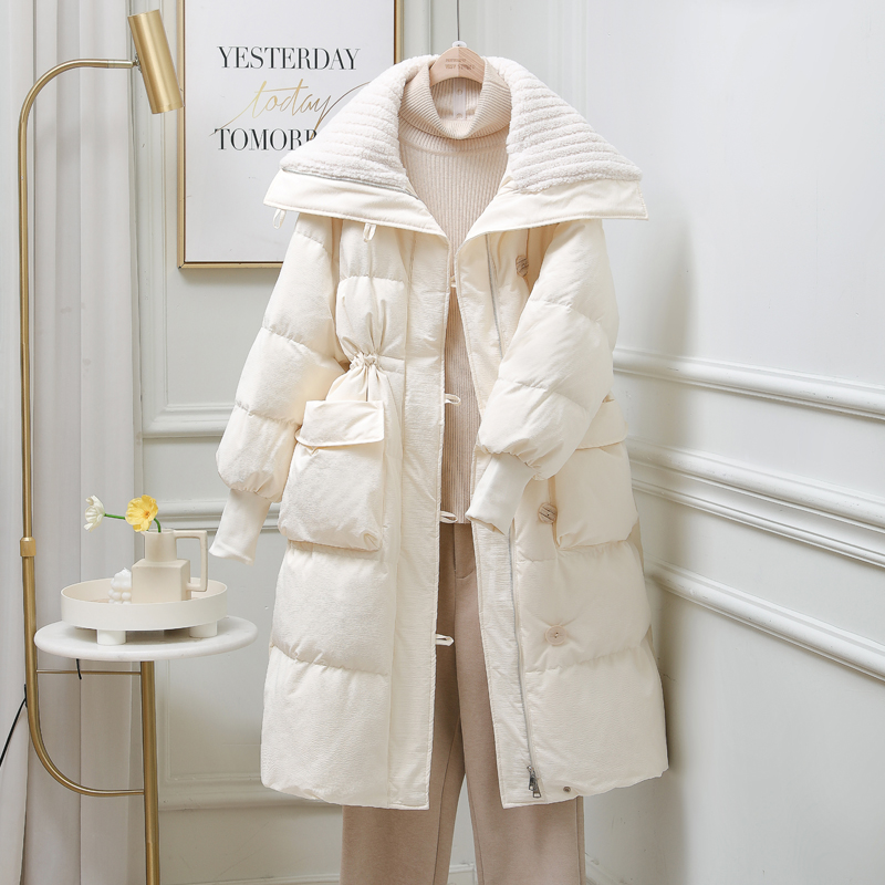 爆款2023冬装新款奶呼呼披肩羽绒服女中长款过膝加厚潮流显瘦外套