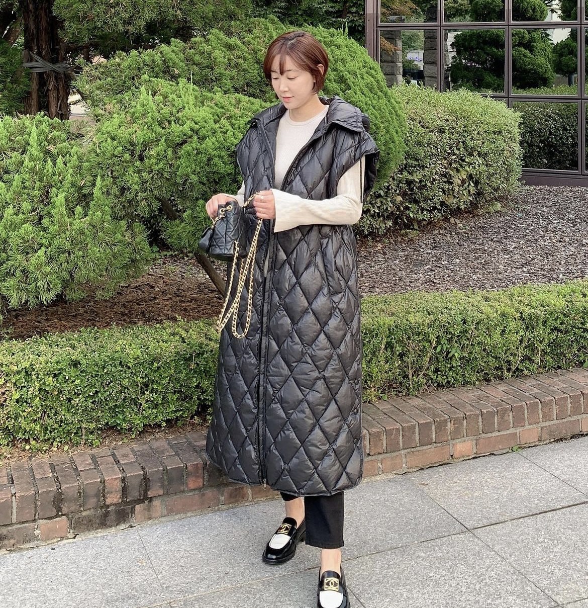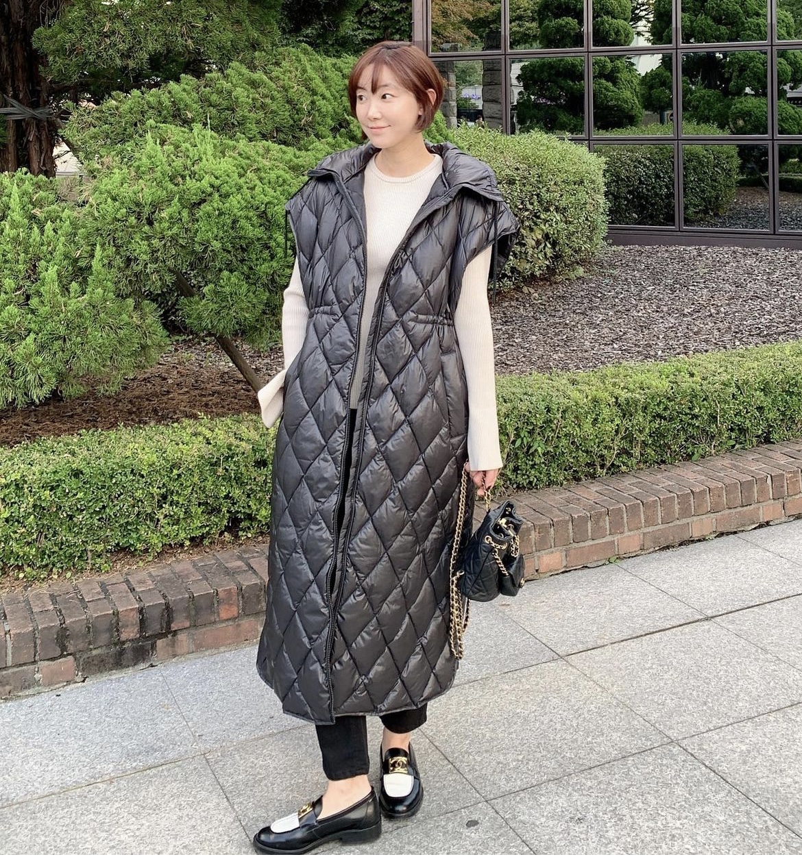 韩式连帽保暖长款无袖外套马夹