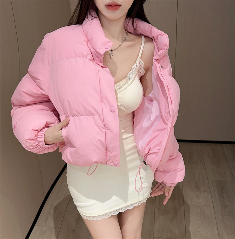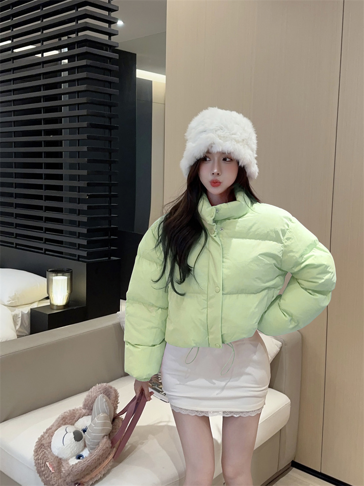 实拍 法式气质高级感立领显白小个子百搭抽绳高腰短款面包服