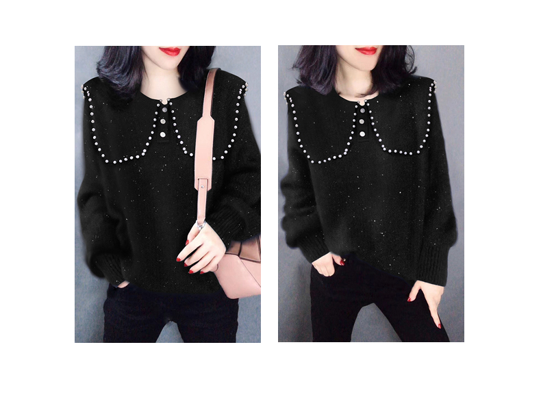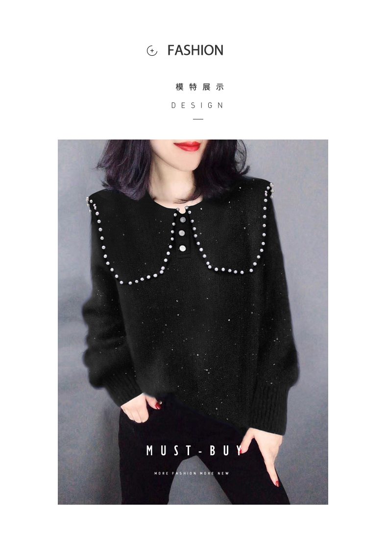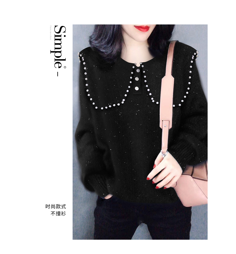 设计感小众黑色娃娃领重工钉钻宽松针织衫加厚毛衣女2025冬季新款