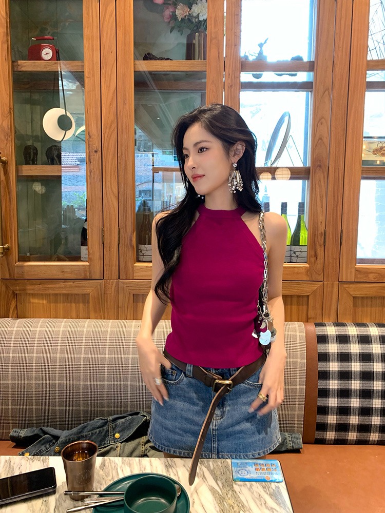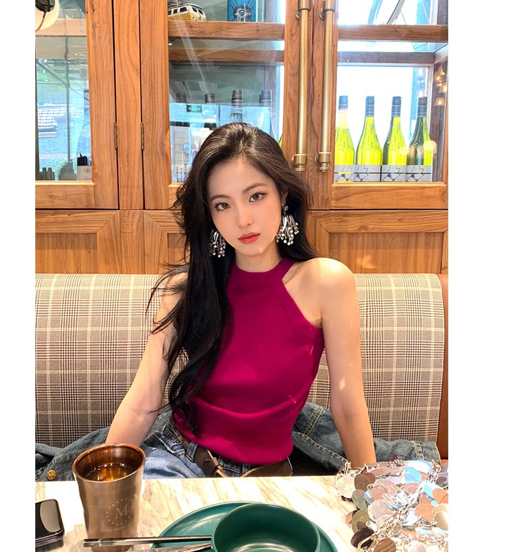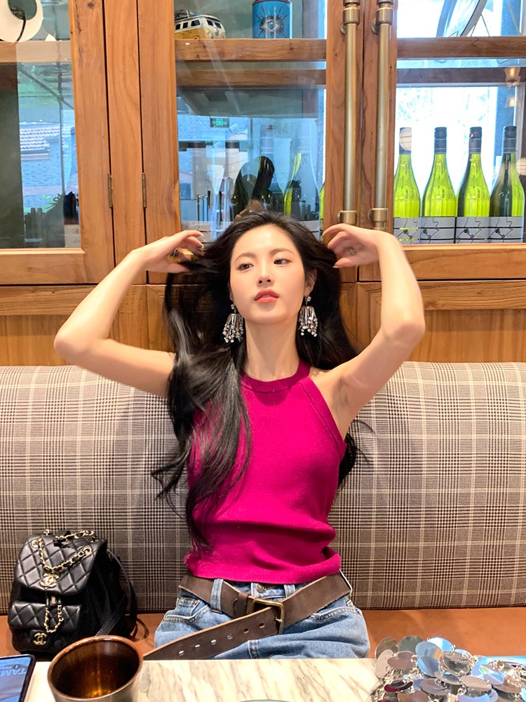 挂脖式针织吊带背心女夏内搭叠穿修身显瘦设计感无袖打底上衣外穿