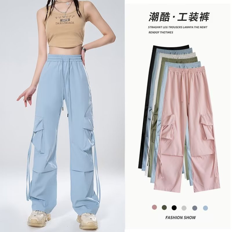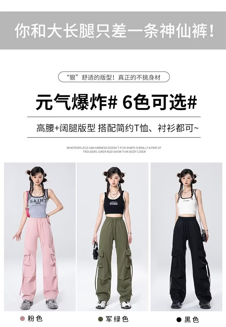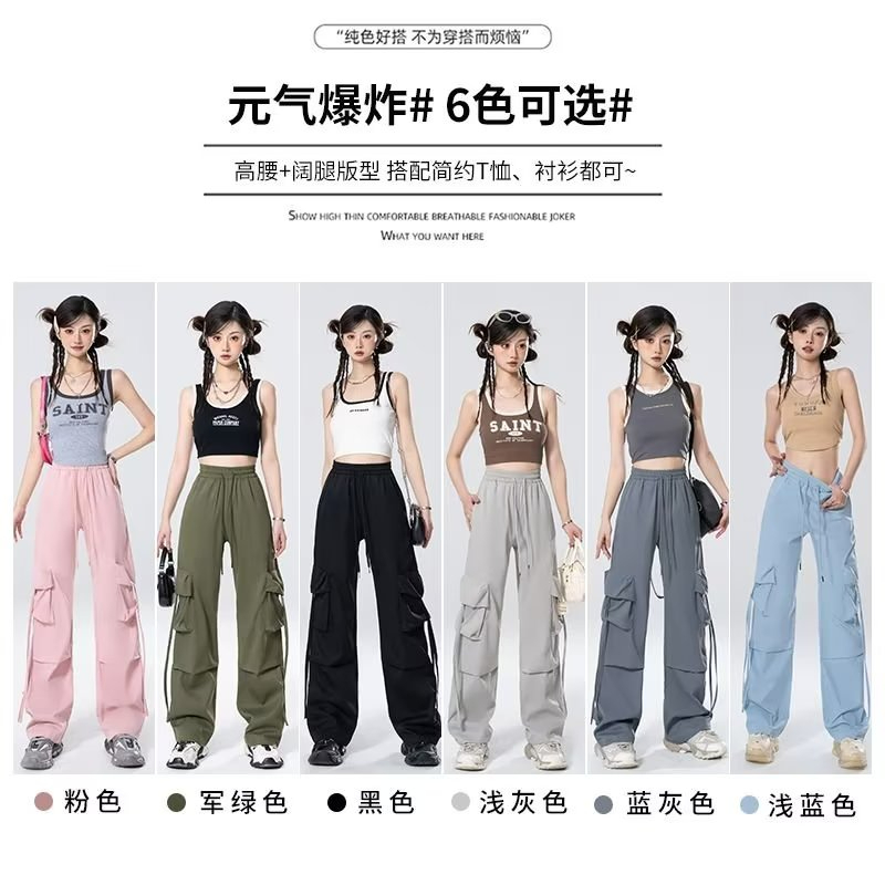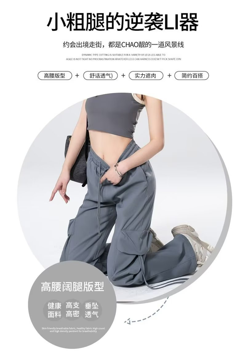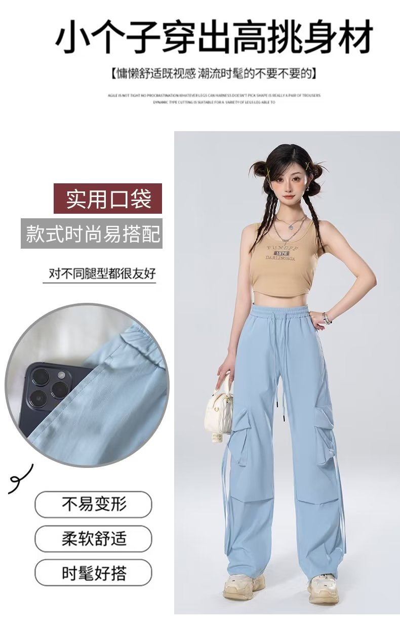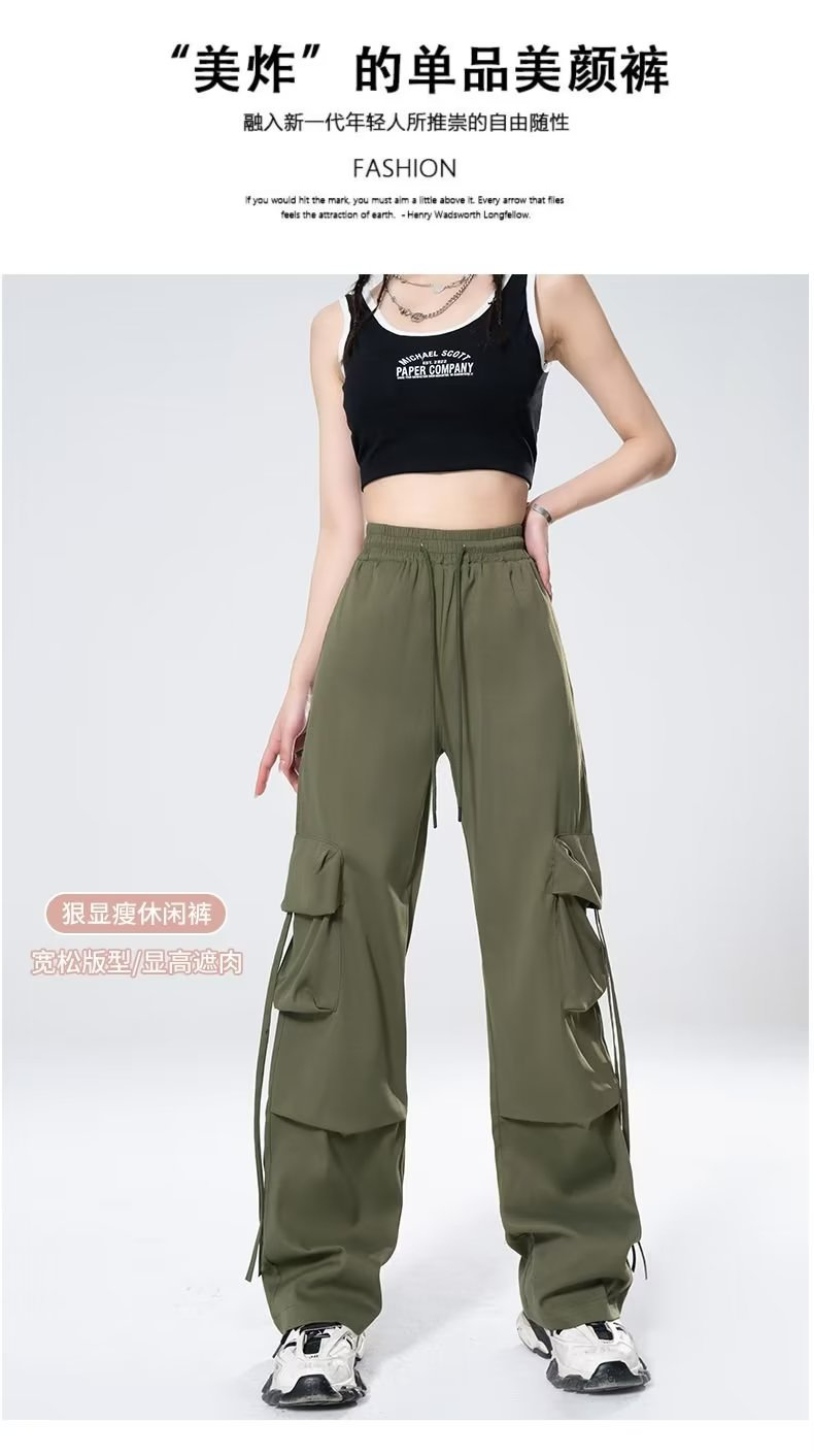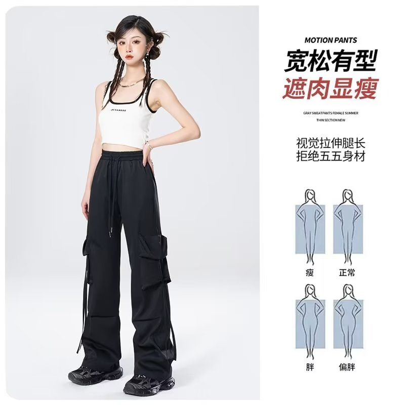 官图 春秋美式工装裤女夏季薄款阔腿高腰直筒垂感长裤休闲运动裤