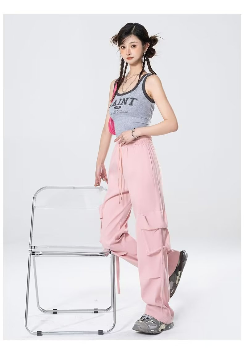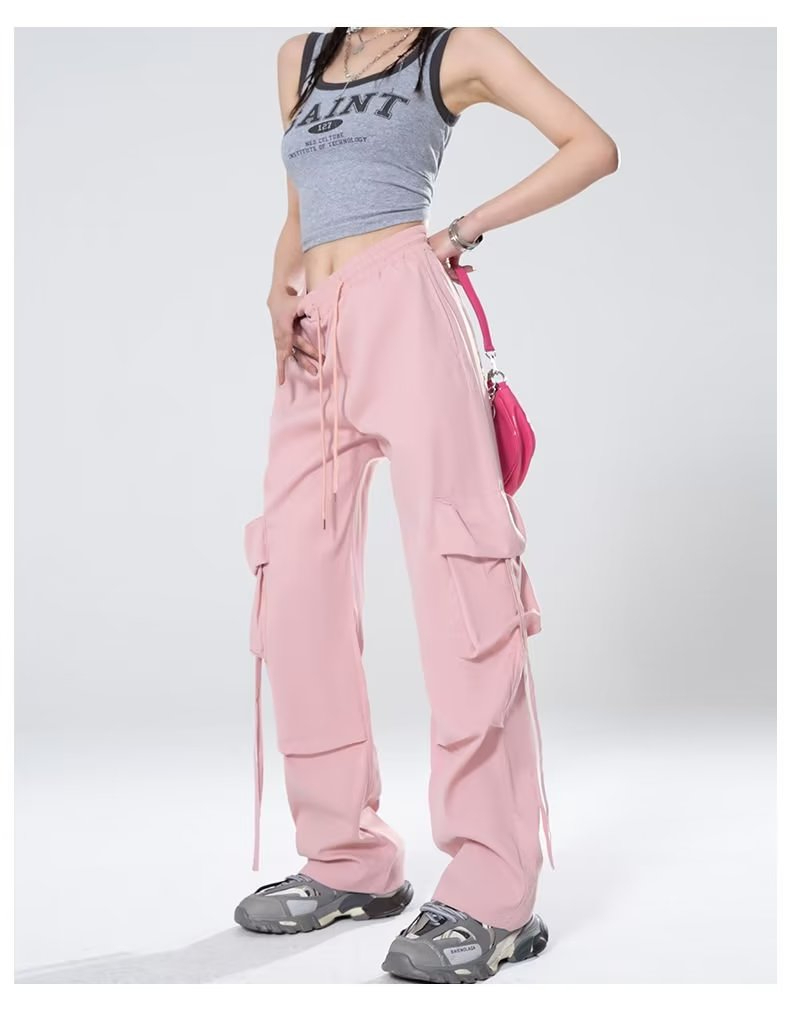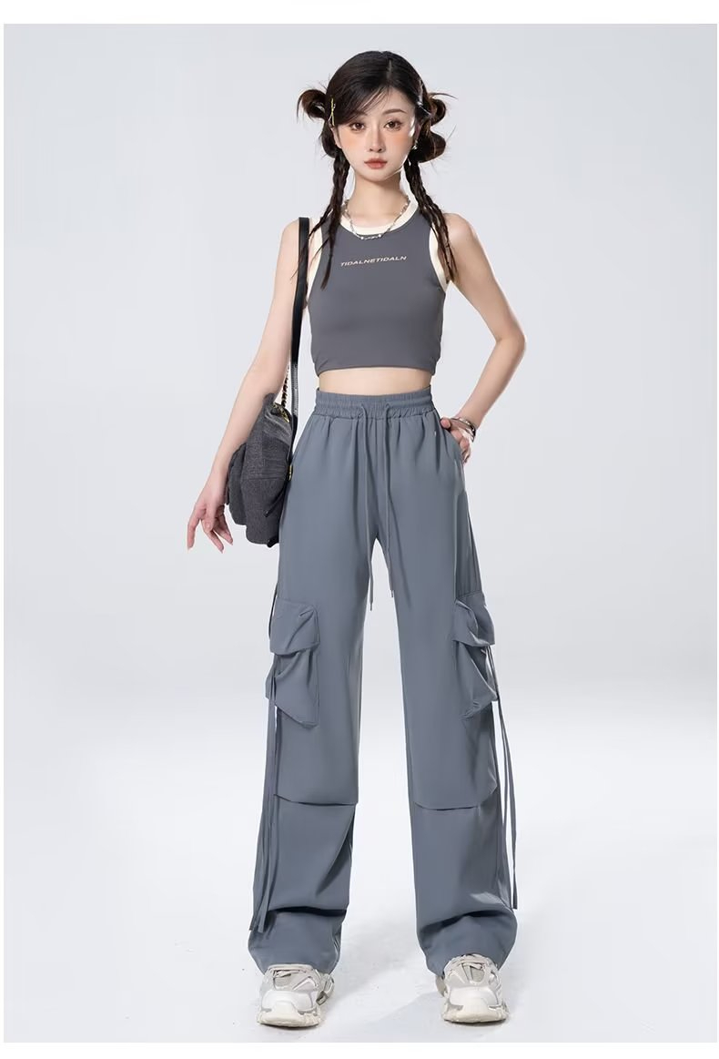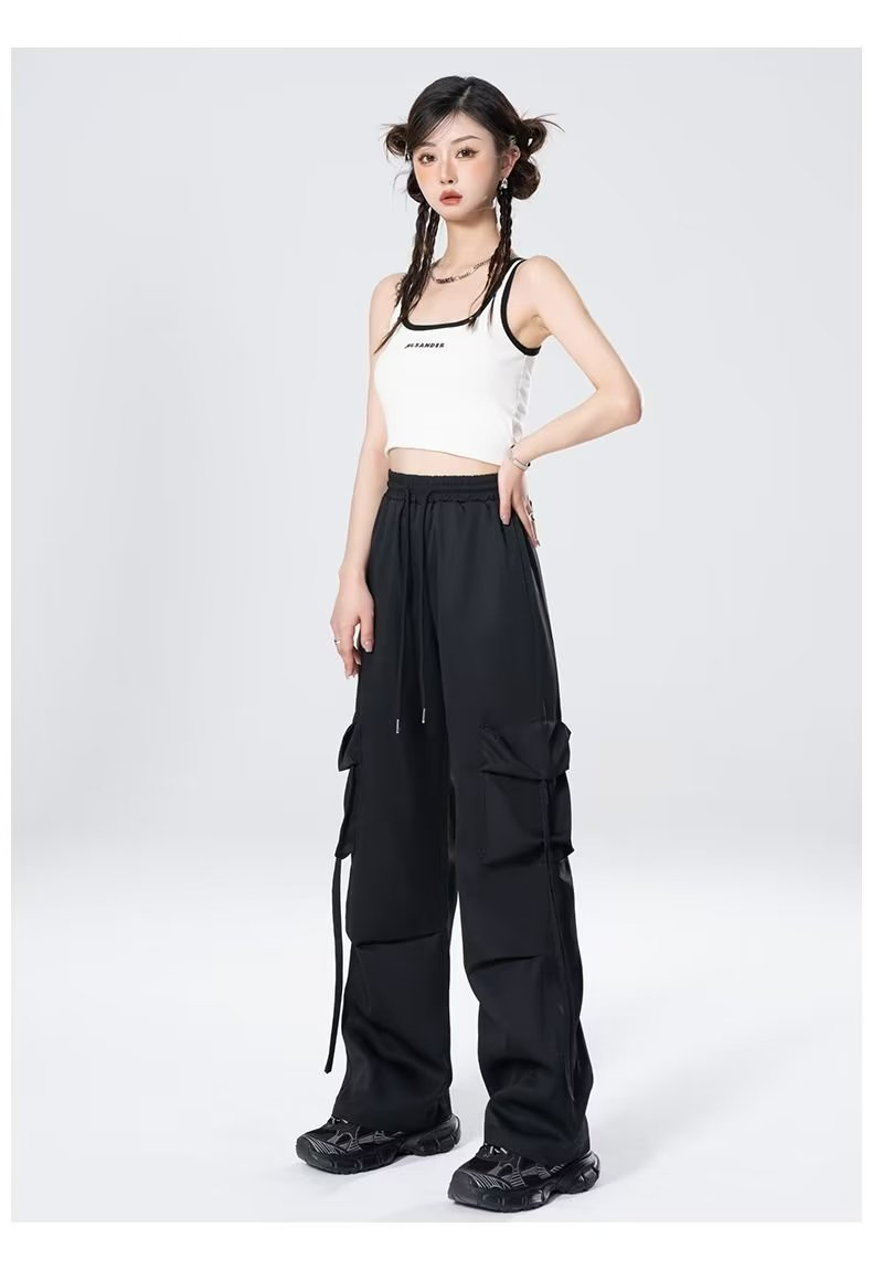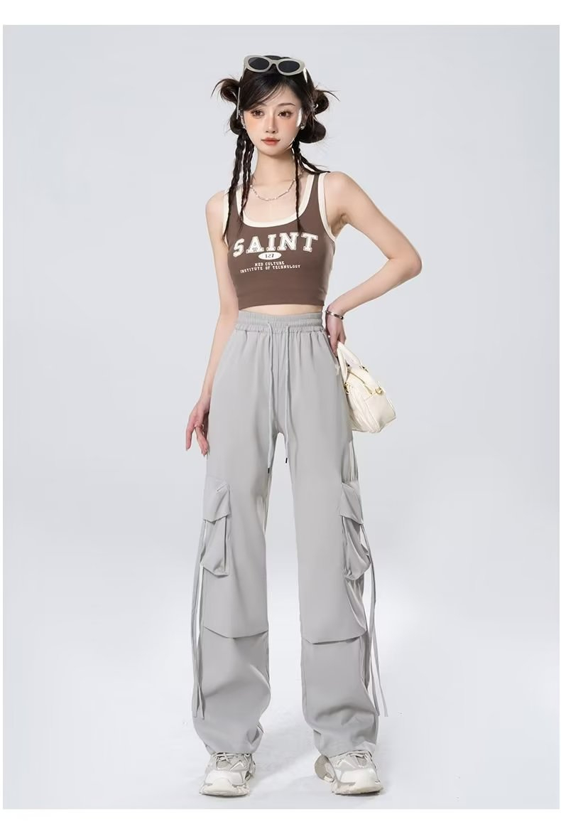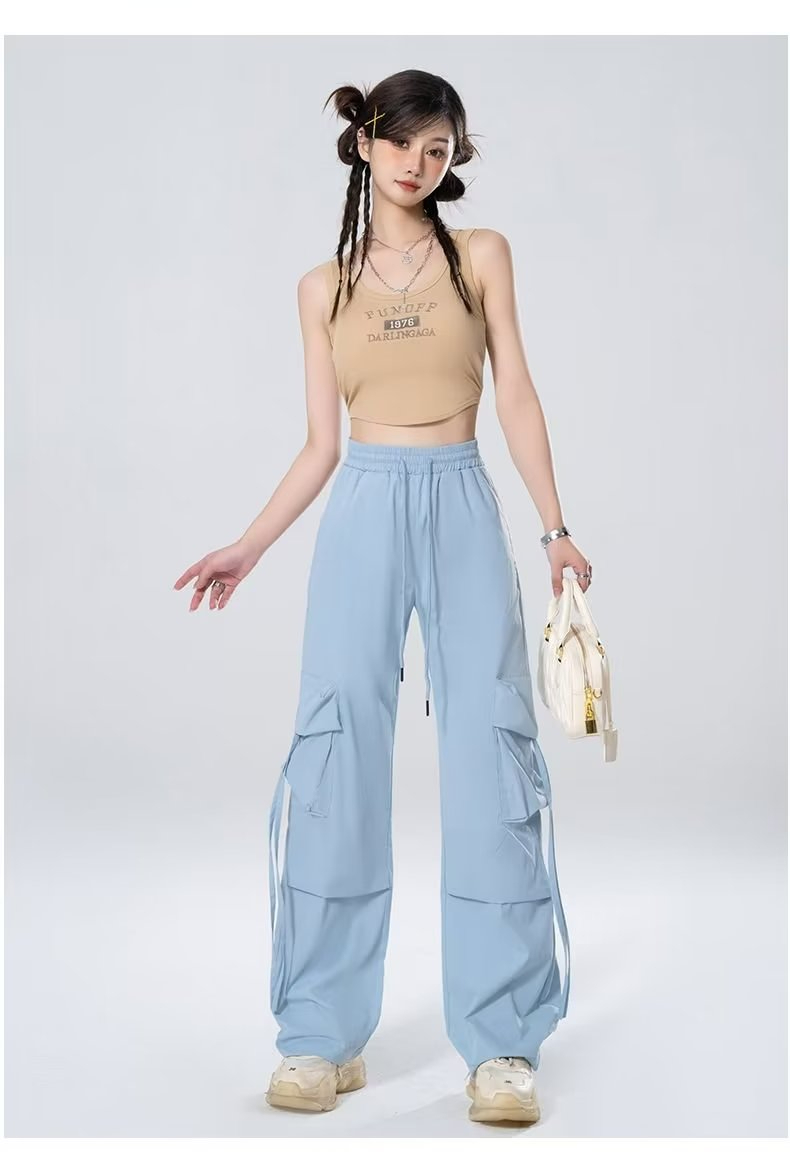 官图 春秋美式工装裤女夏季薄款阔腿高腰直筒垂感长裤休闲运动裤