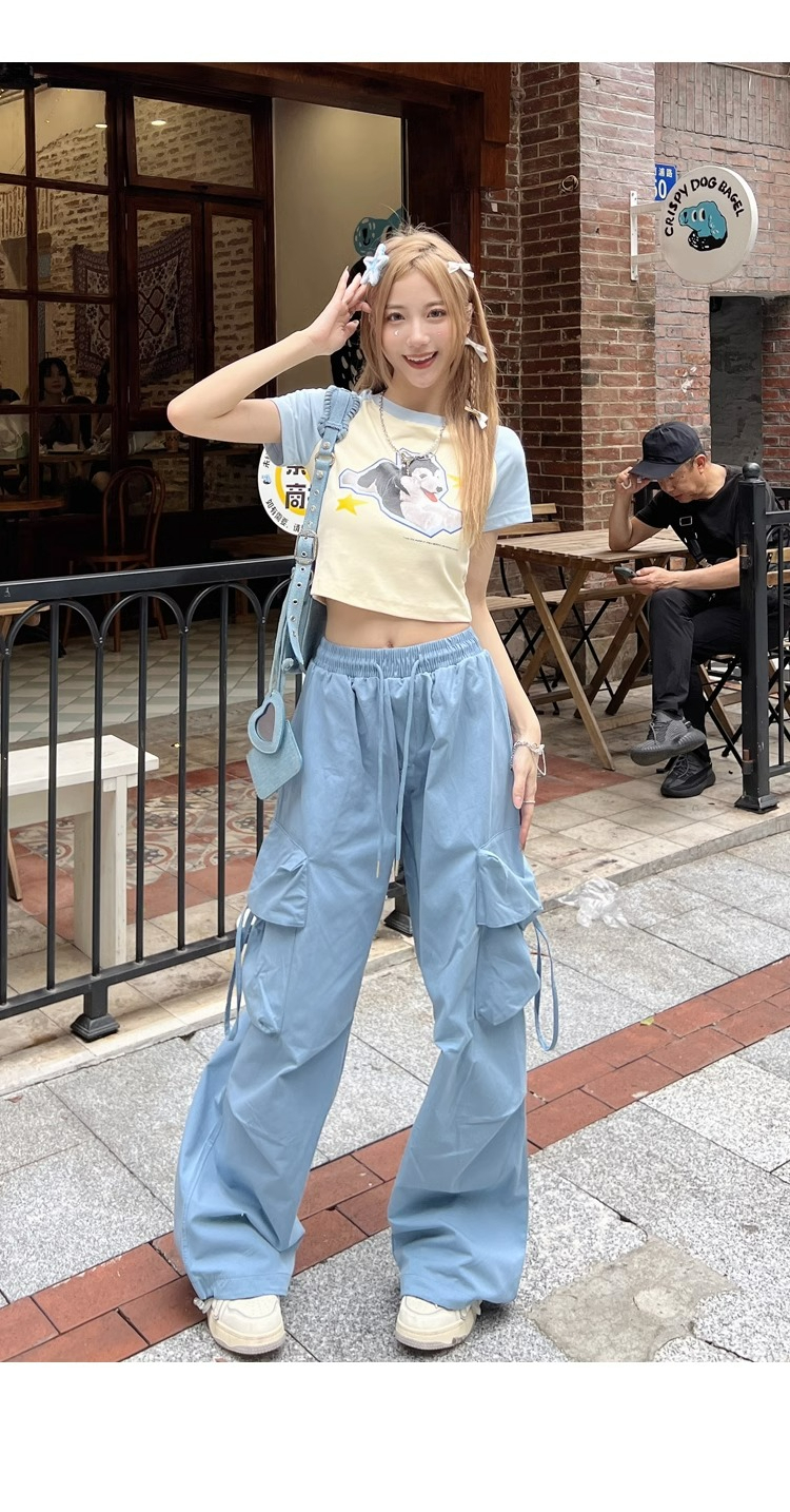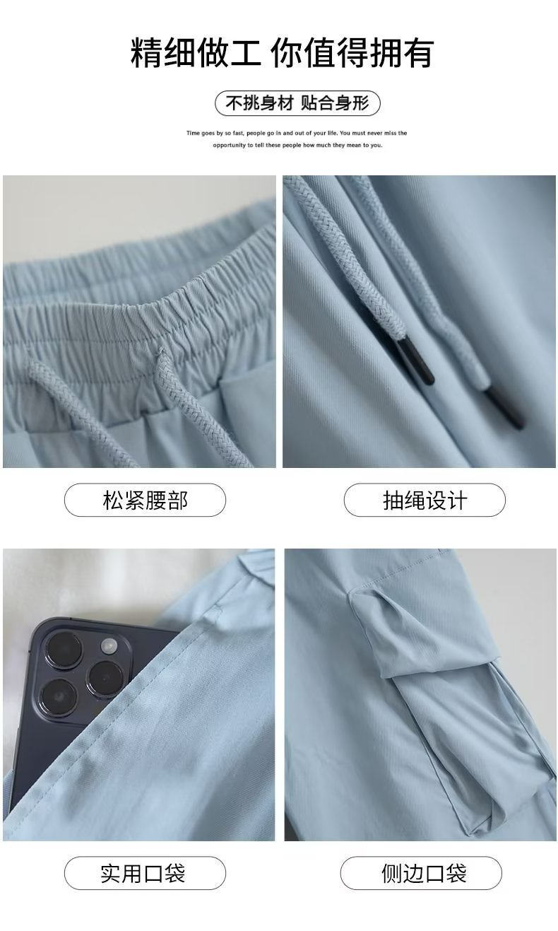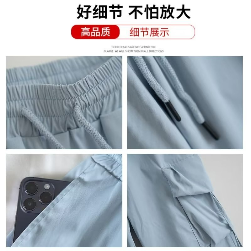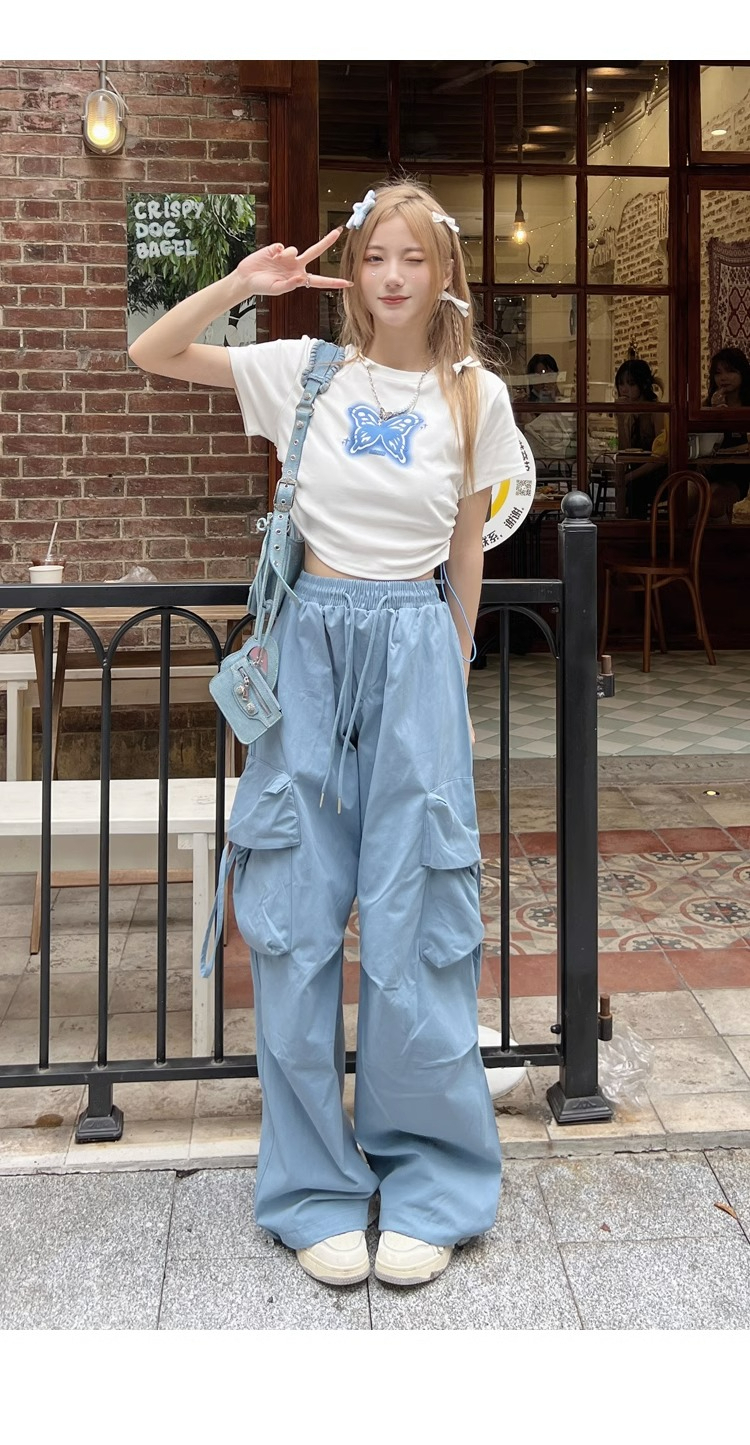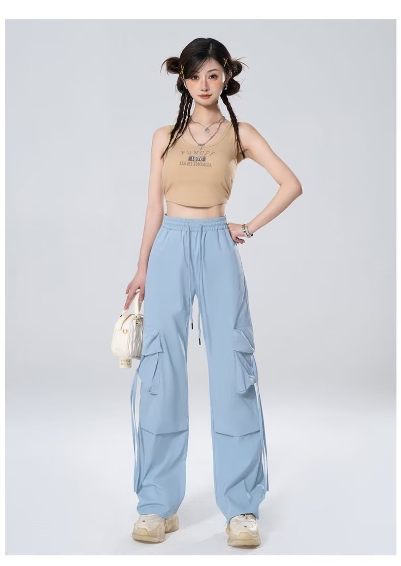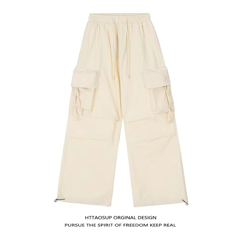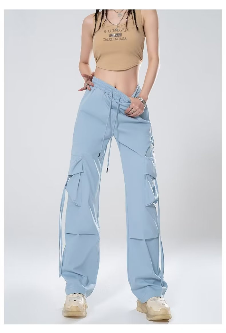 官图 春秋美式工装裤女夏季薄款阔腿高腰直筒垂感长裤休闲运动裤