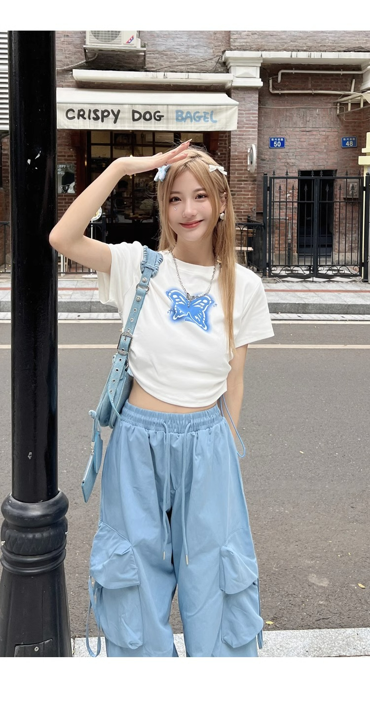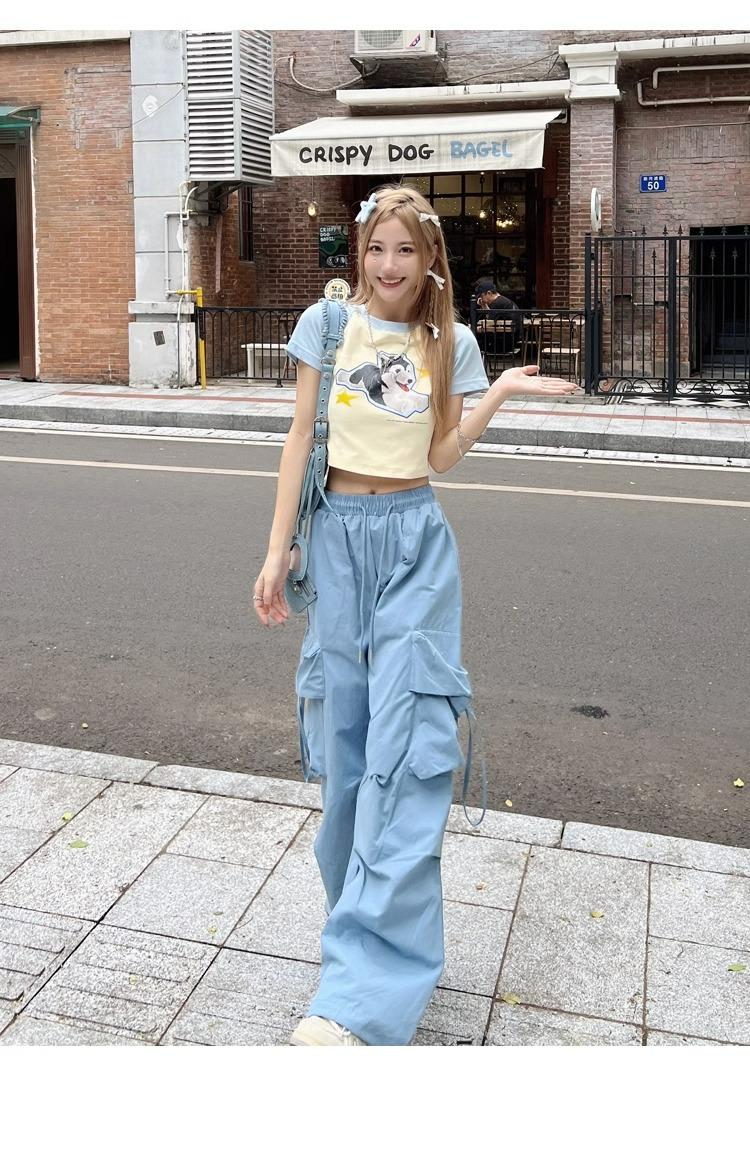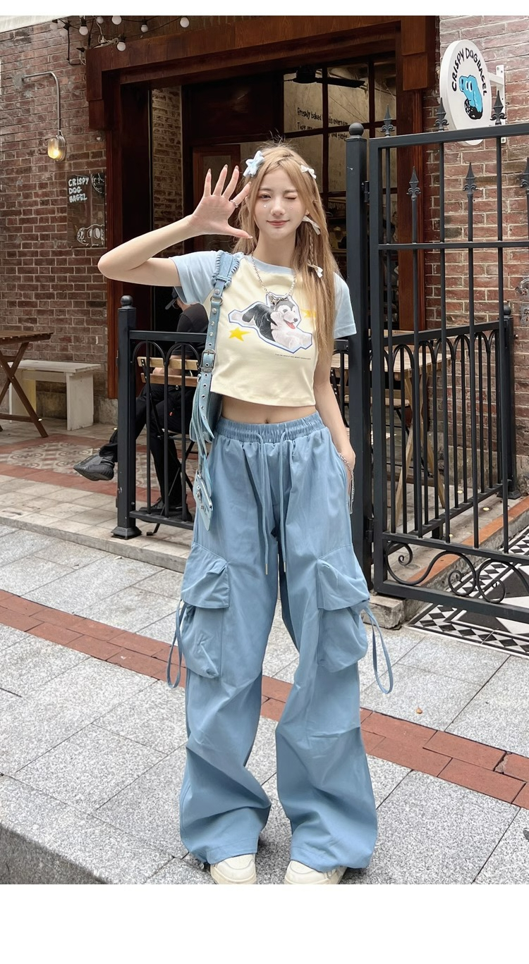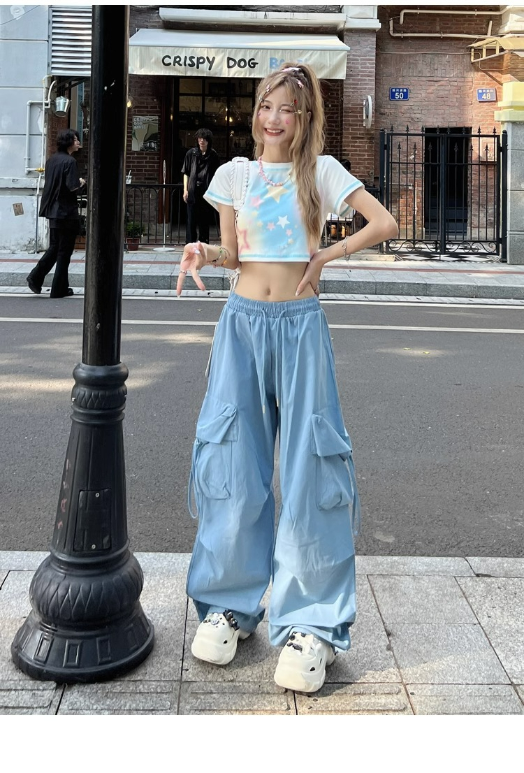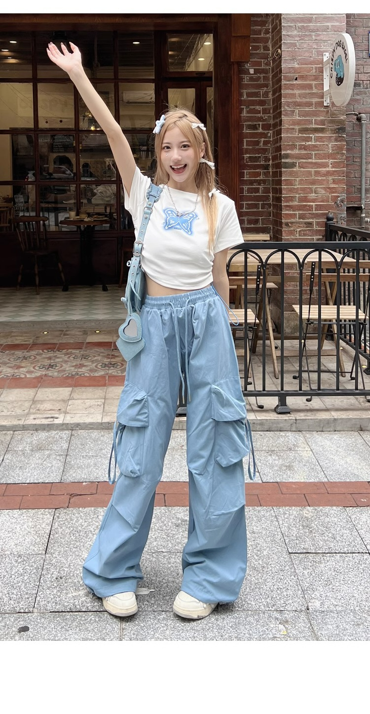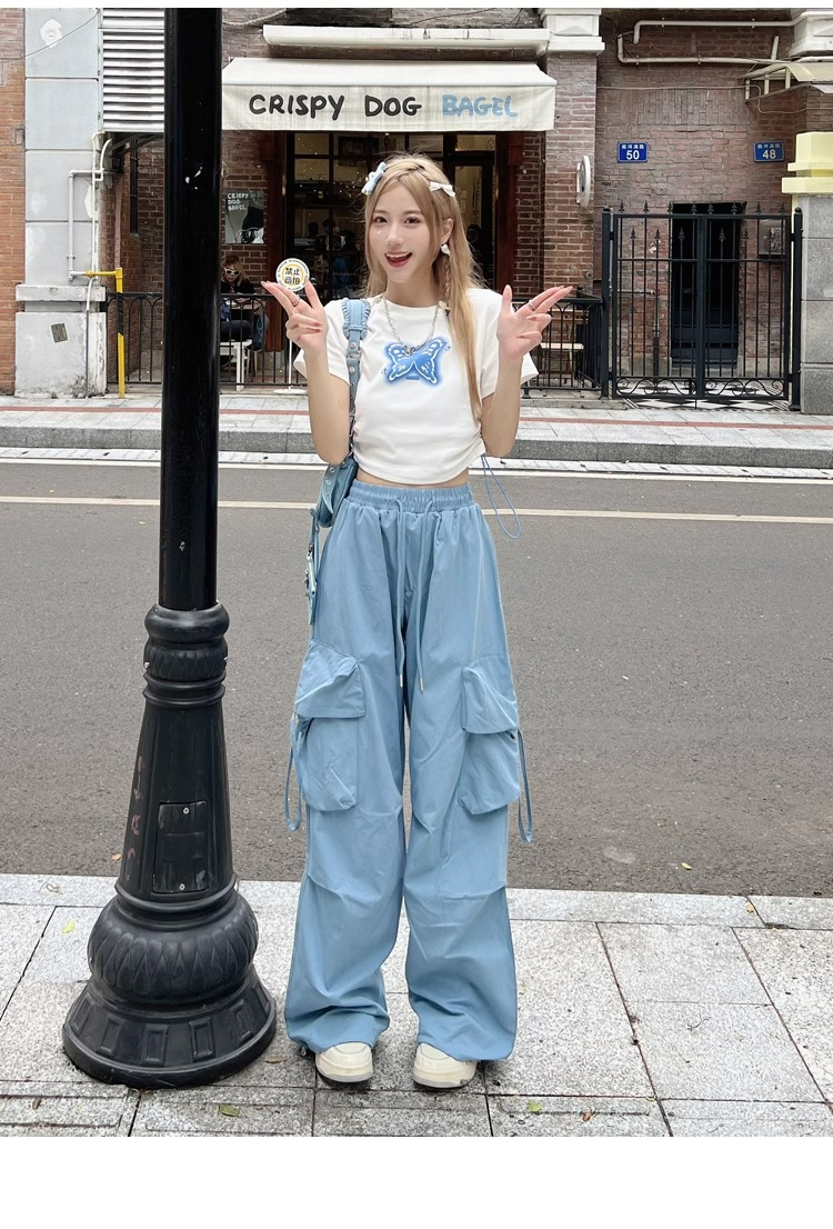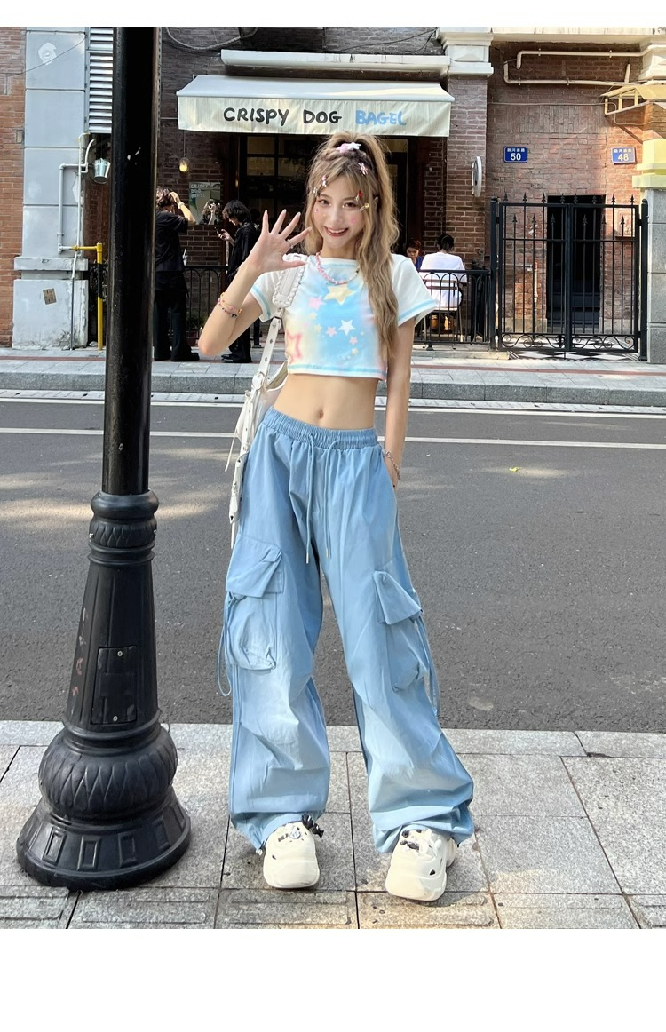 官图 春秋美式工装裤女夏季薄款阔腿高腰直筒垂感长裤休闲运动裤