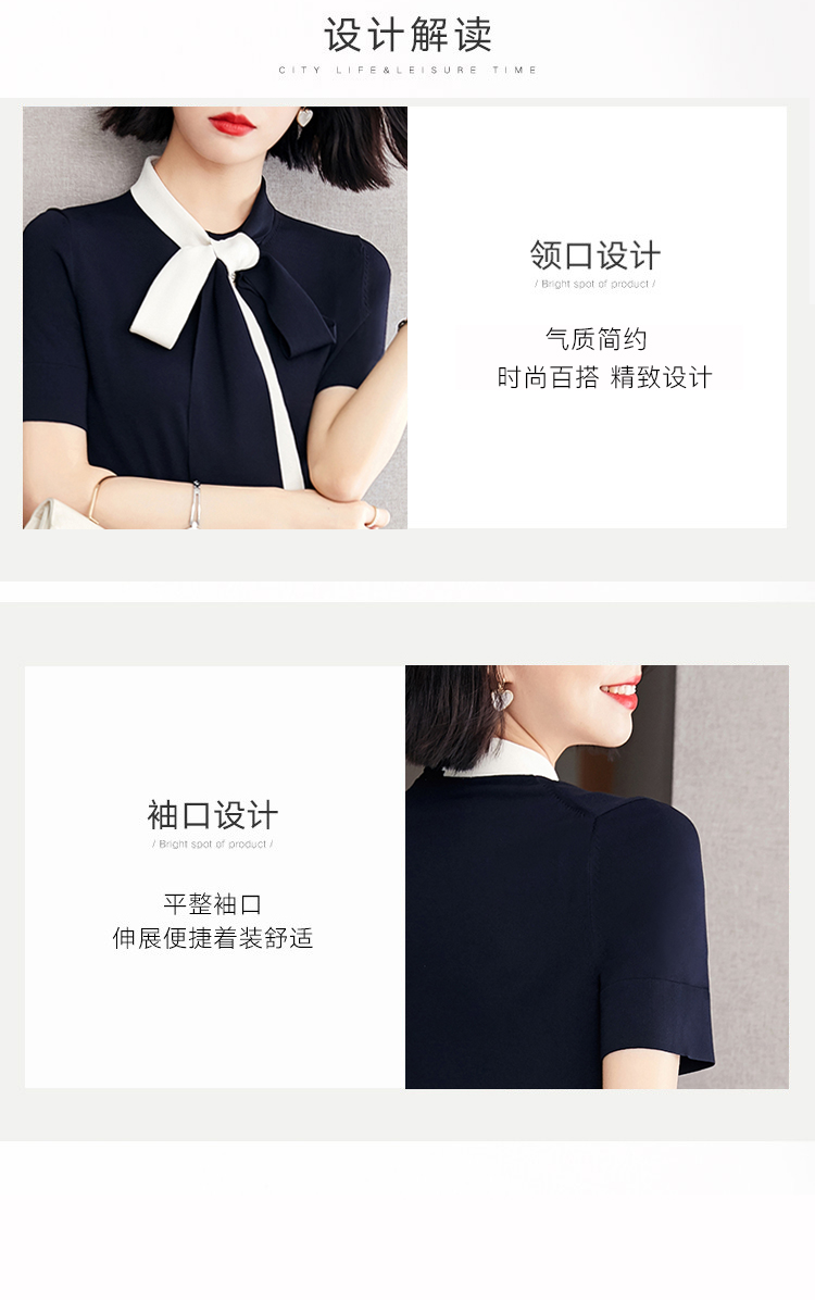 实拍◆有◆2024夏针织短袖女气质撞色飘带蝴蝶结减龄连衣裙