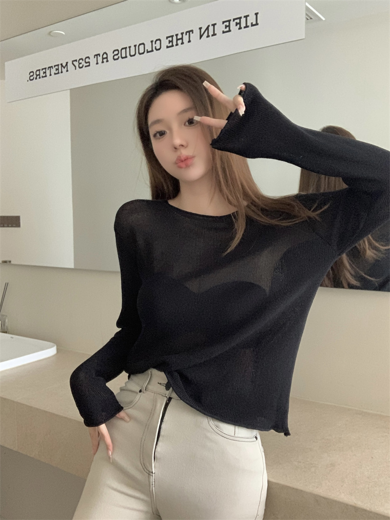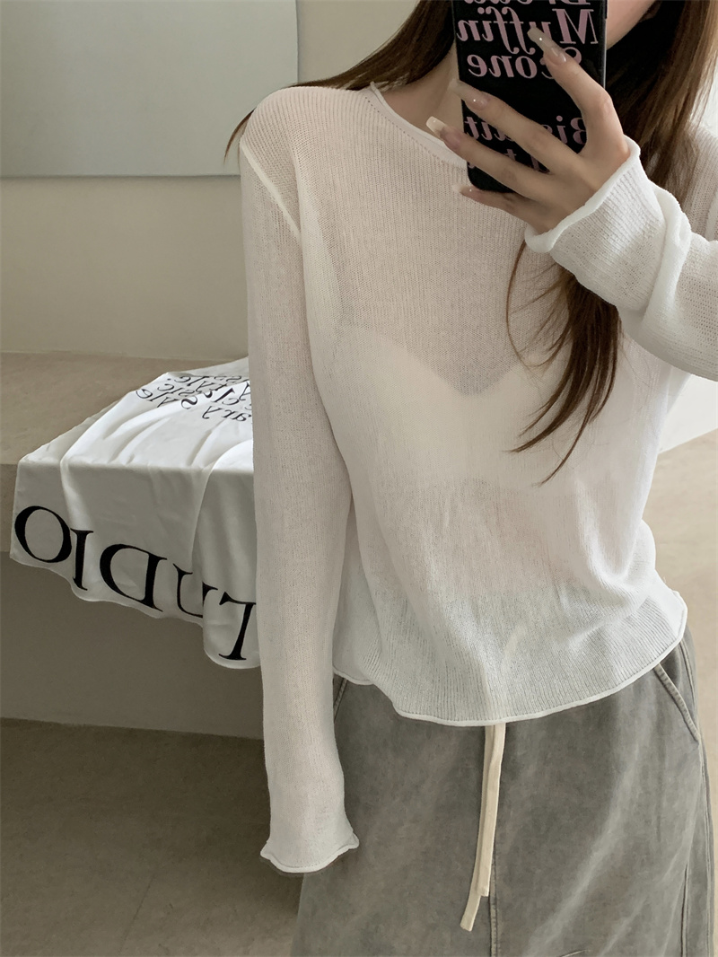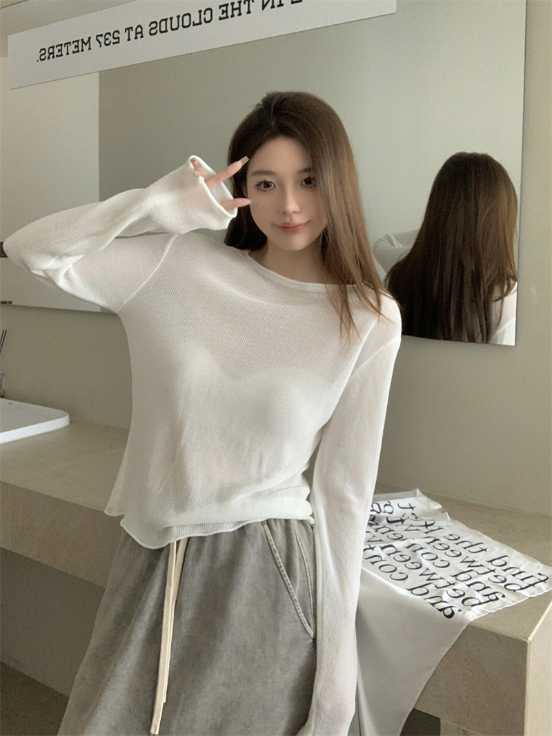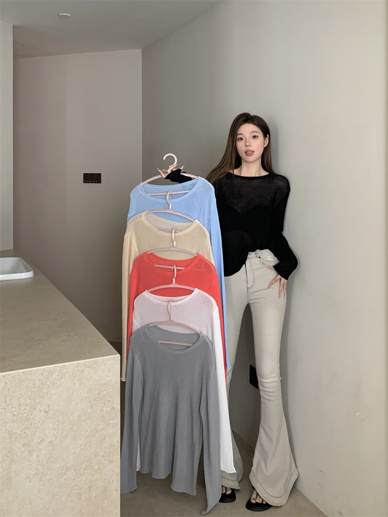 实价实拍 早春圆领宽松慵懒百搭糖果色防晒上衣
