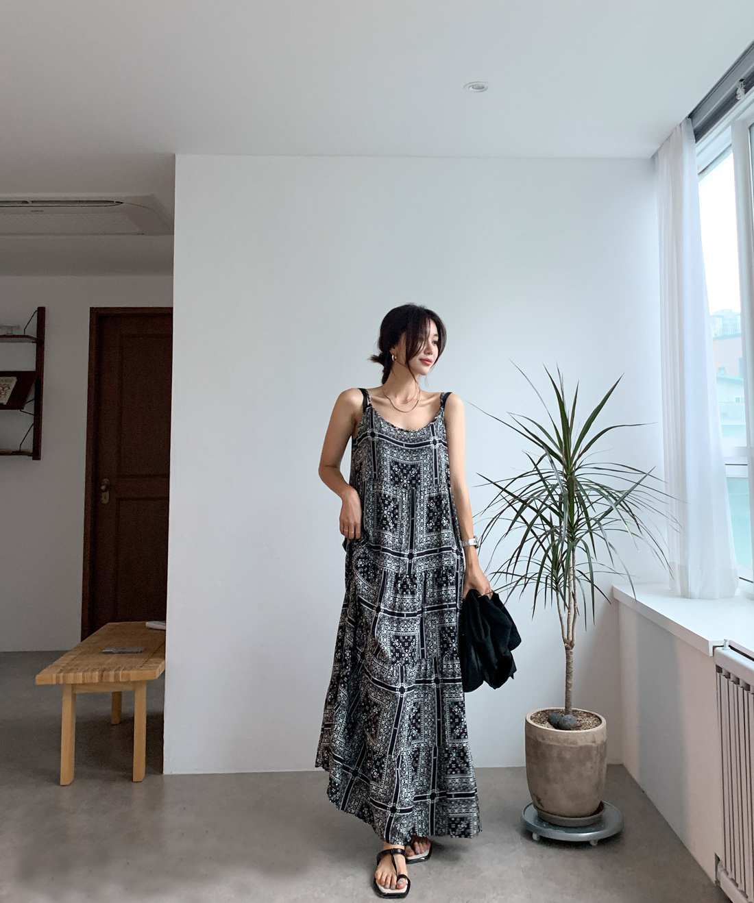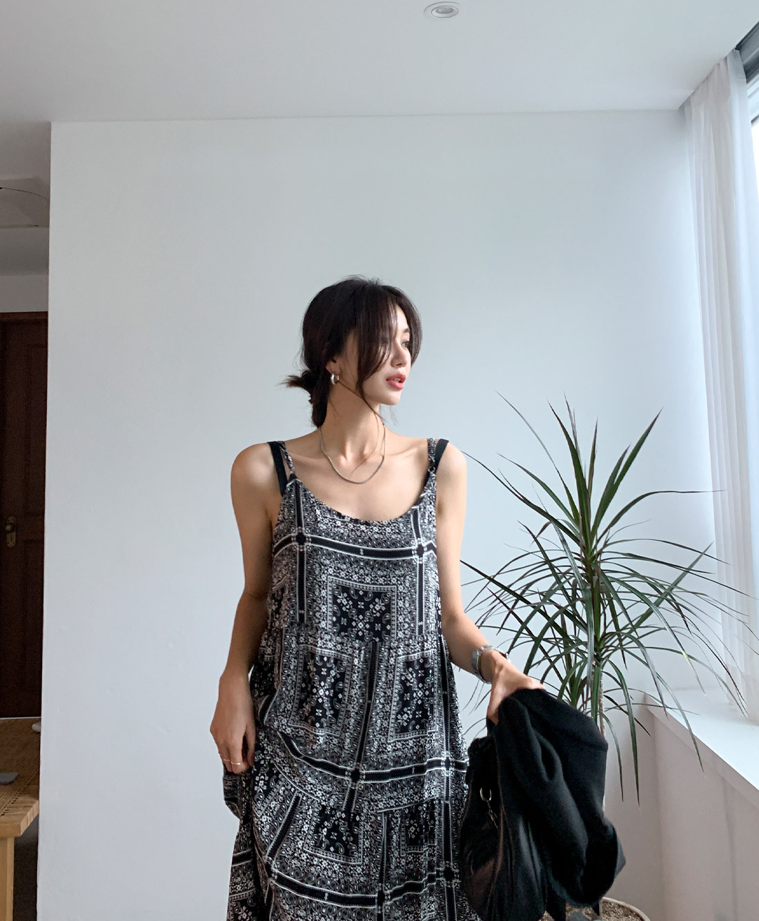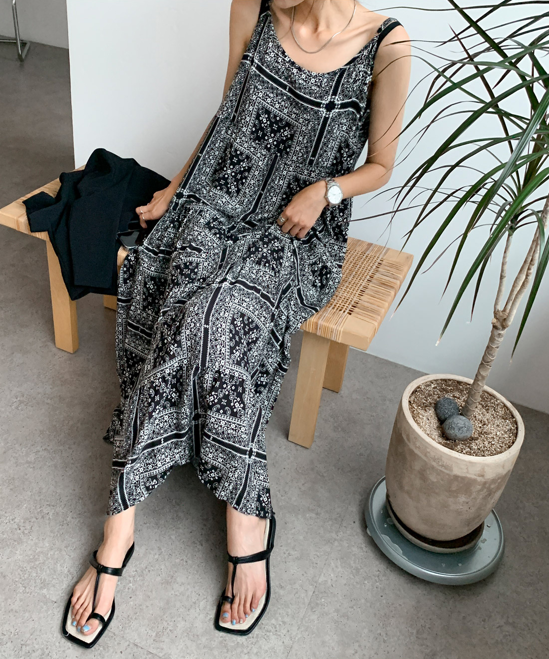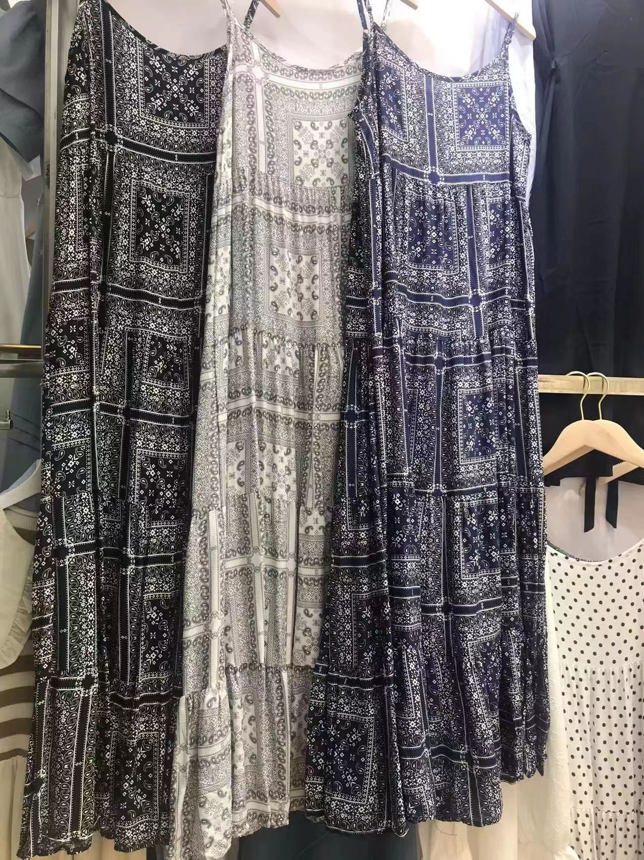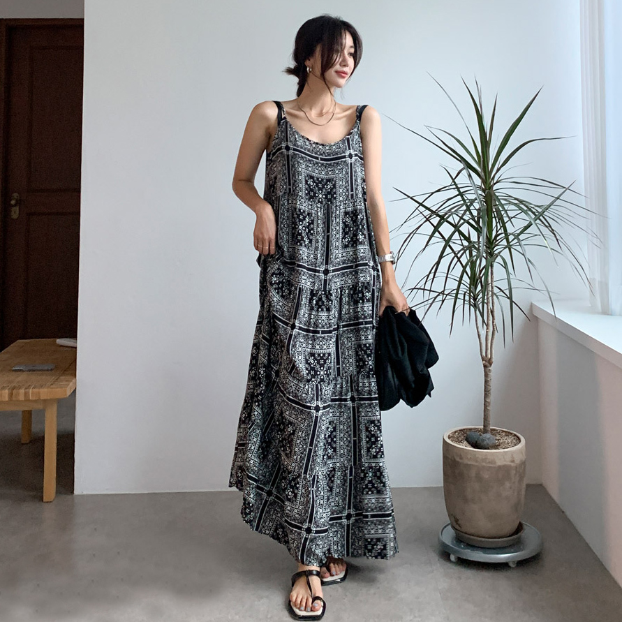 2025 Summer New Retro Versatile Printed Suspender Dress Women's Long Dress