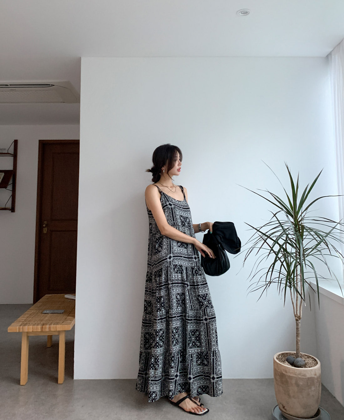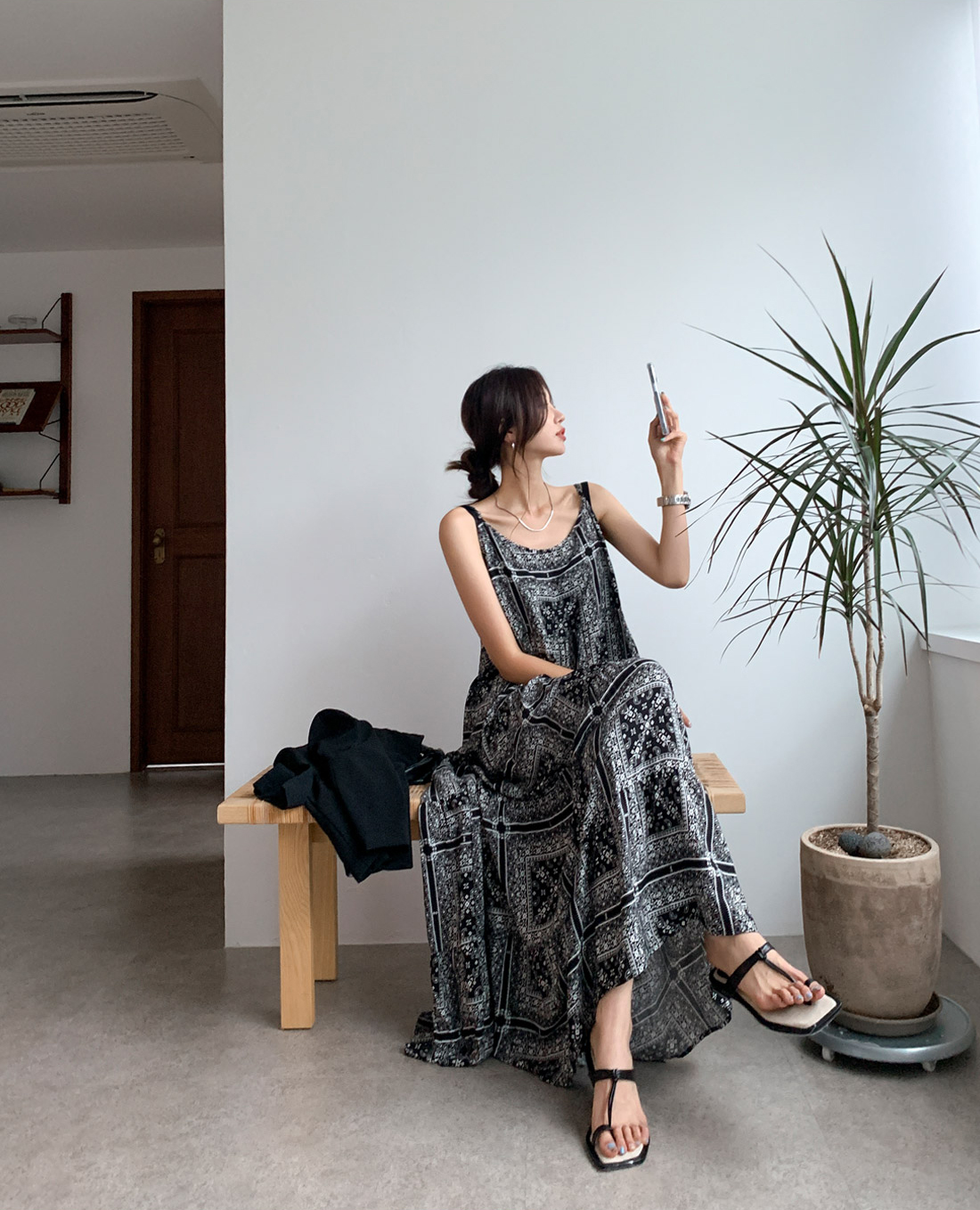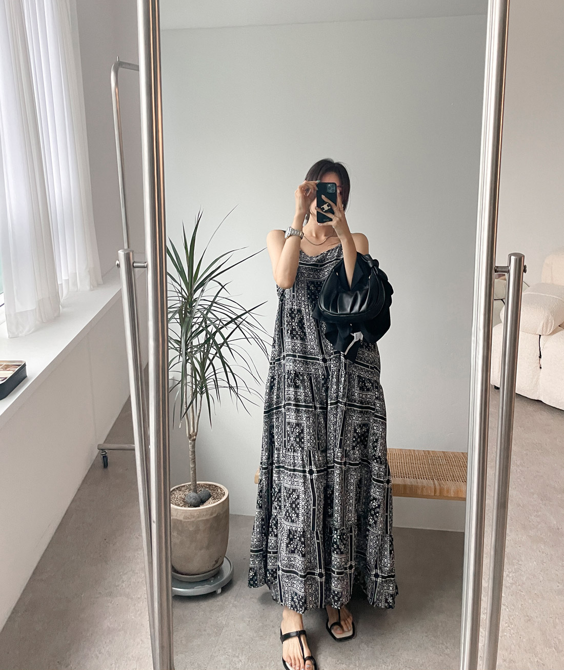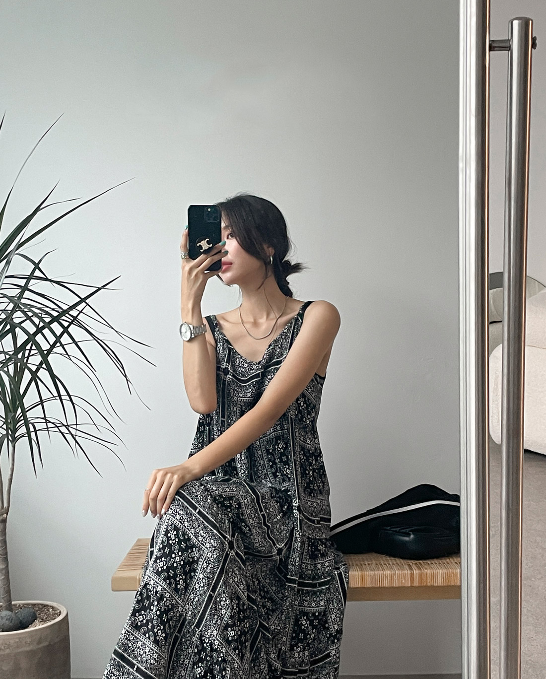 2025 Summer New Retro Versatile Printed Suspender Dress Women's Long Dress