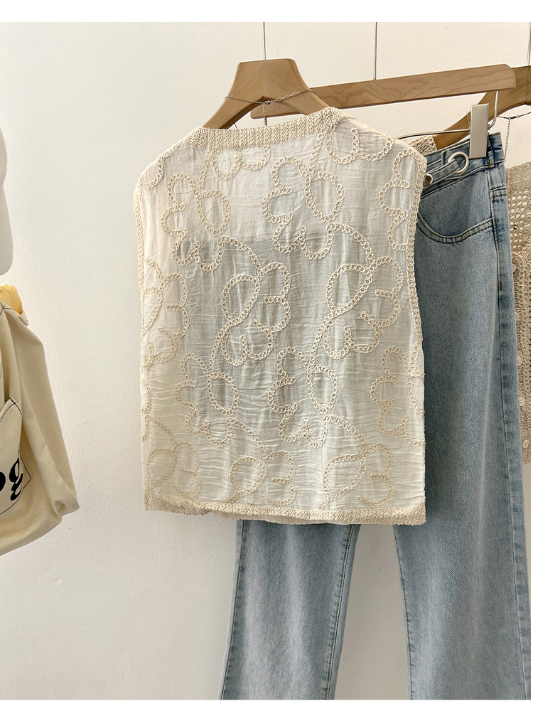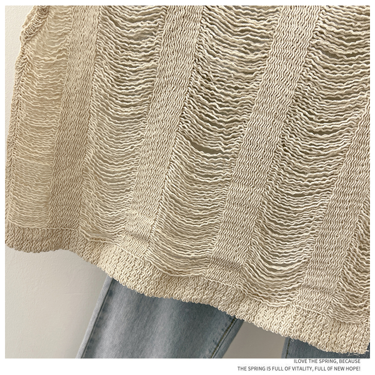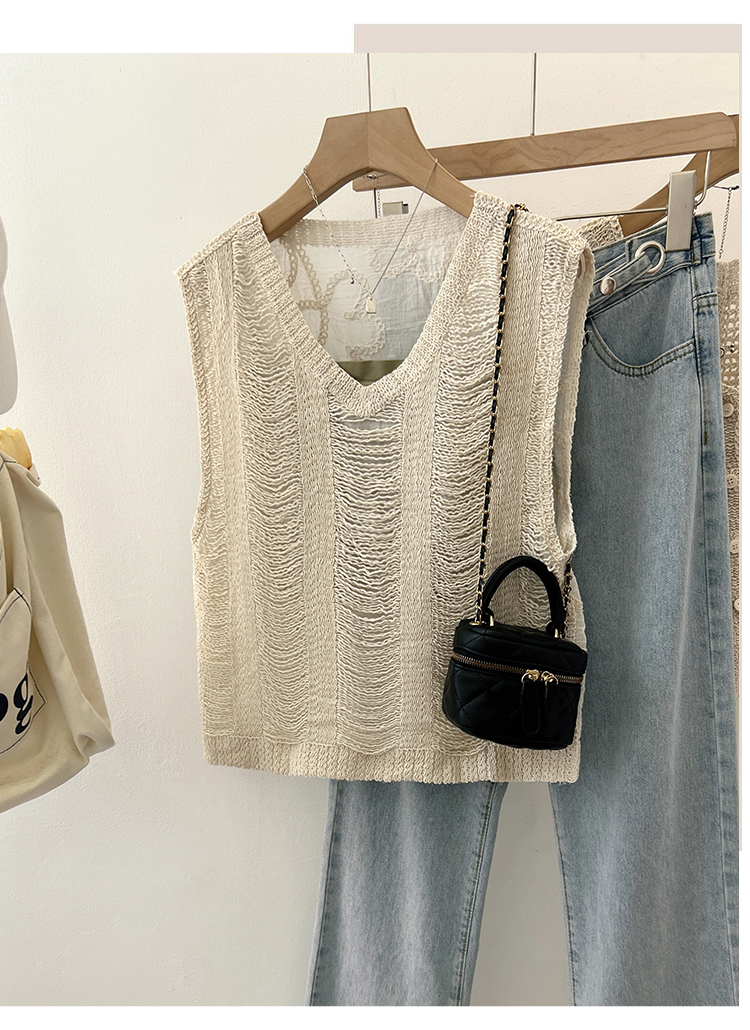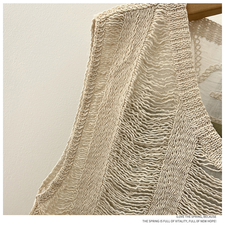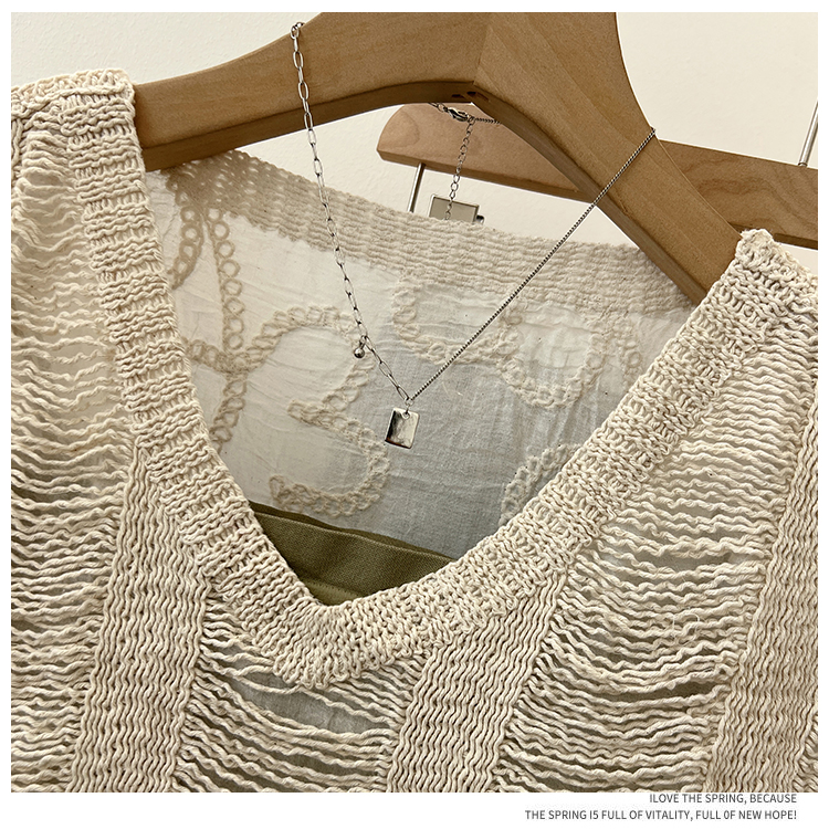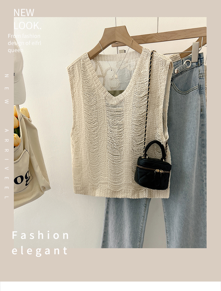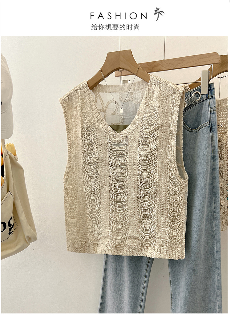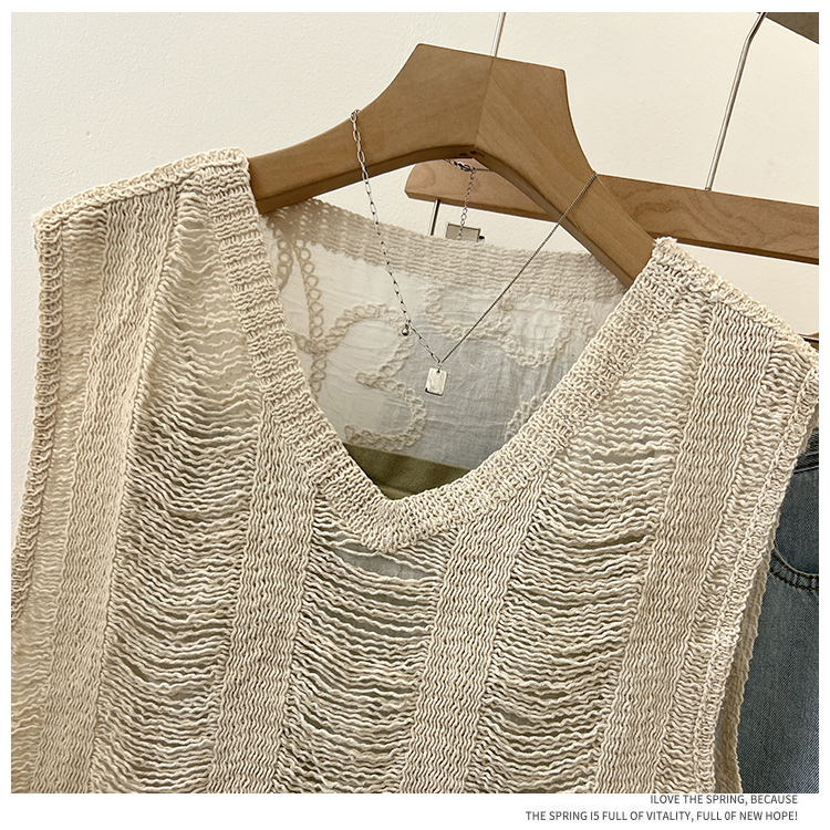 实拍2024夏新款V领针织流苏拼接设计感无袖背心T恤女上衣送美背